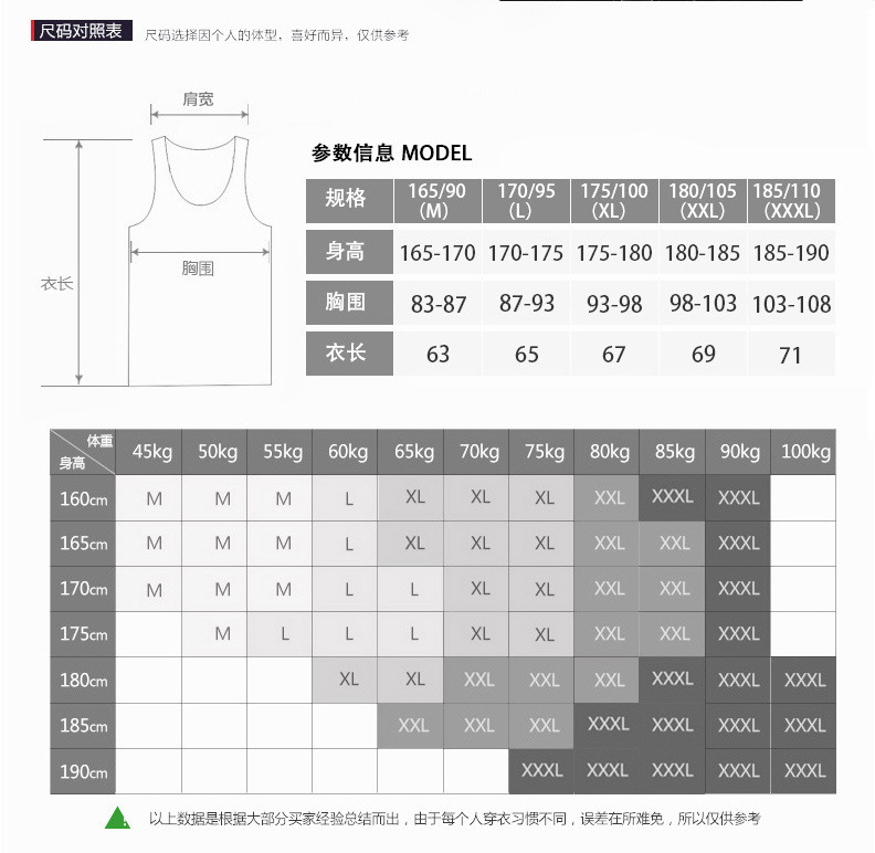 这款背心颜色为三个尺码,