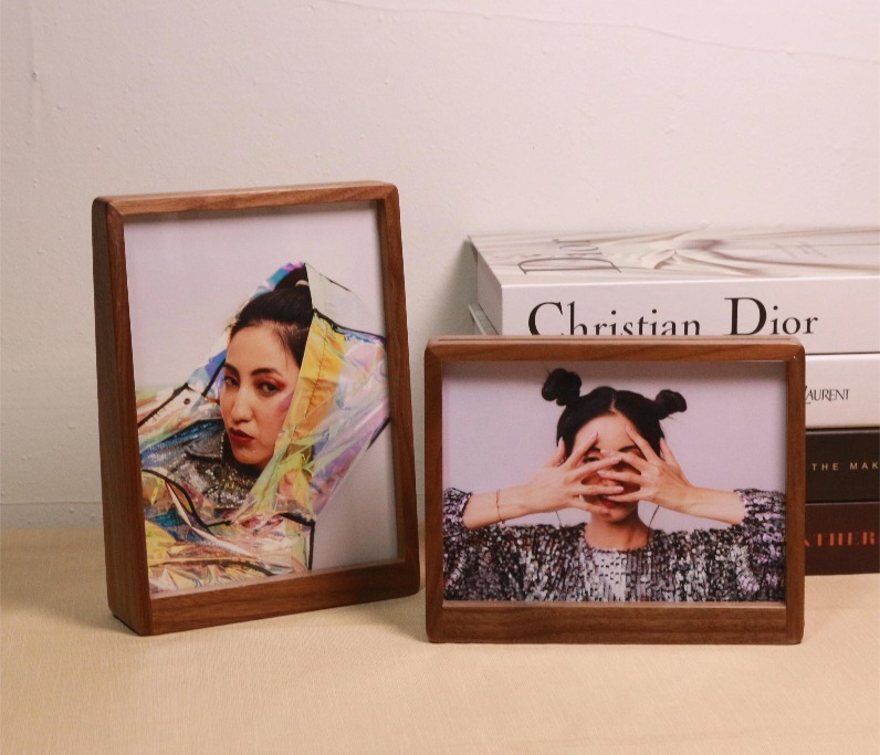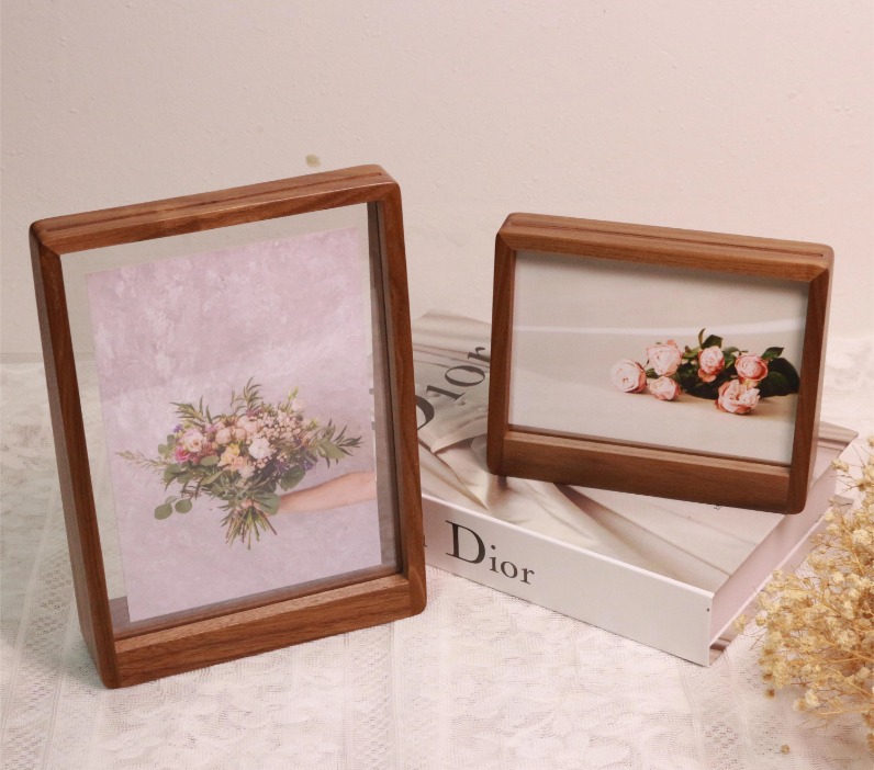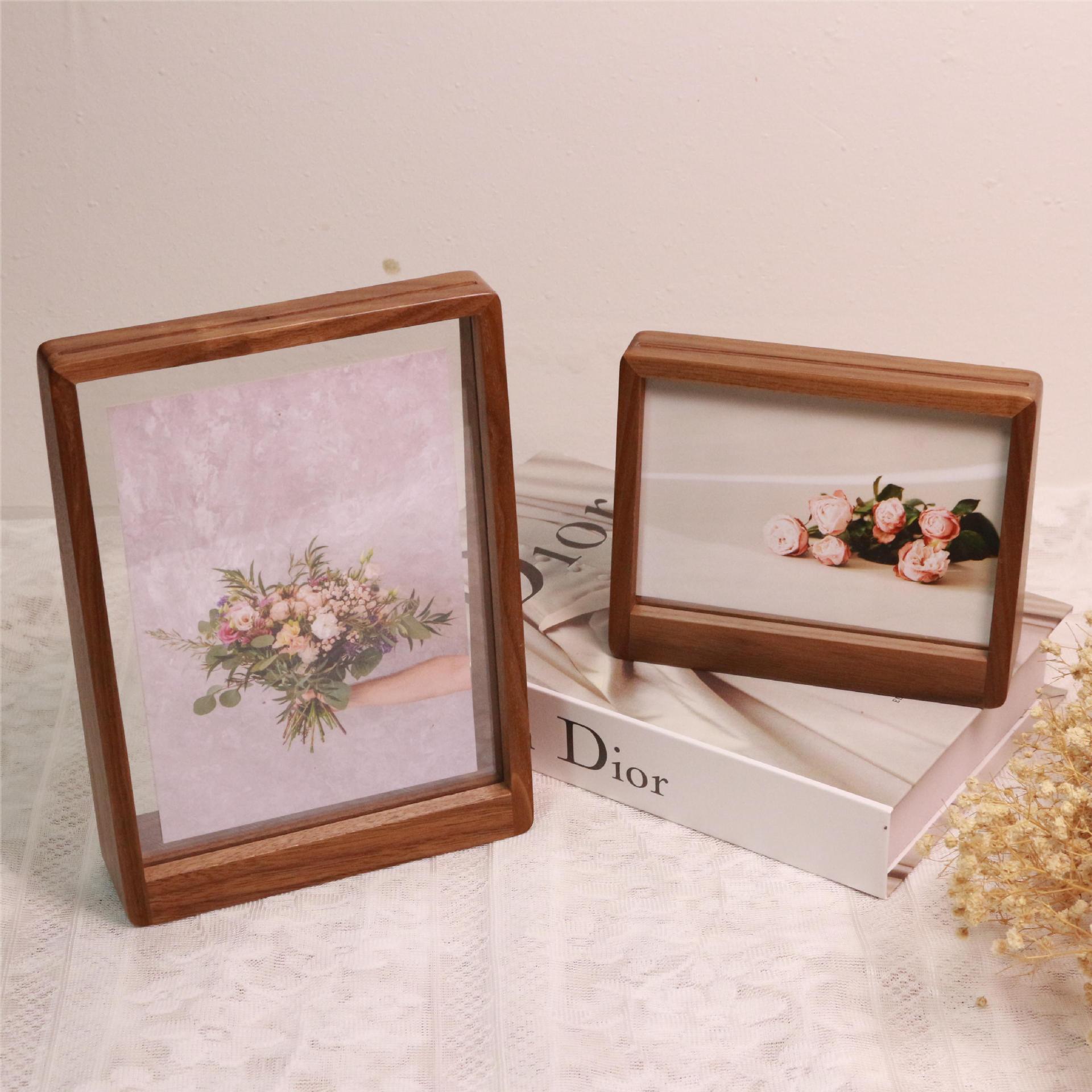 단단한 나무 사진 프레임 검은 호두 글자 6 인치 8 인치 창조적 인 테이블 10 인치 A4 양면 아크릴 중공 서스펜션 사진 프레임스토어 가기