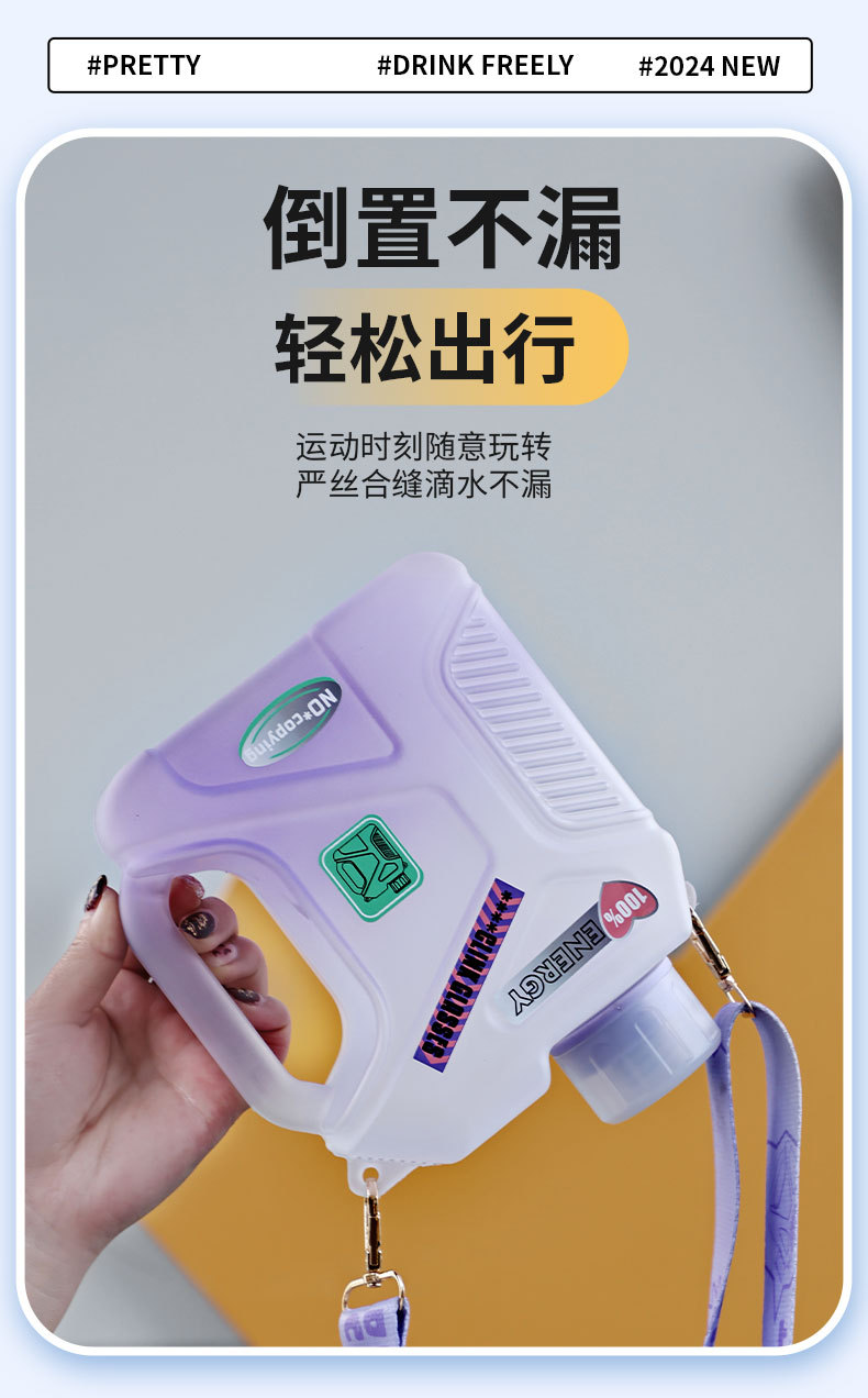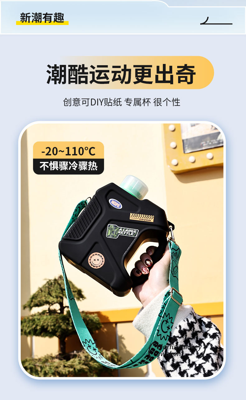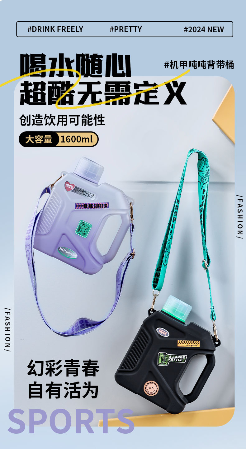 개인화 된 메카 톤 버킷 창조적 인 대용량 스포츠 플라스틱 주전자 스트랩 핸들 스퀘어 스트로우 학생 워터 컵