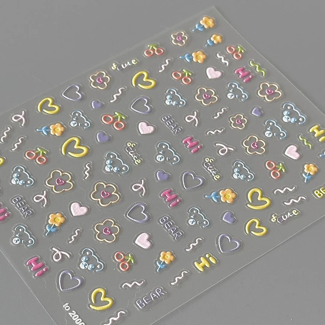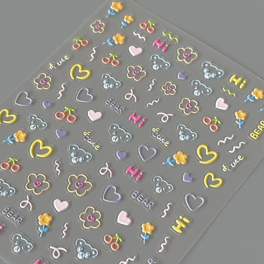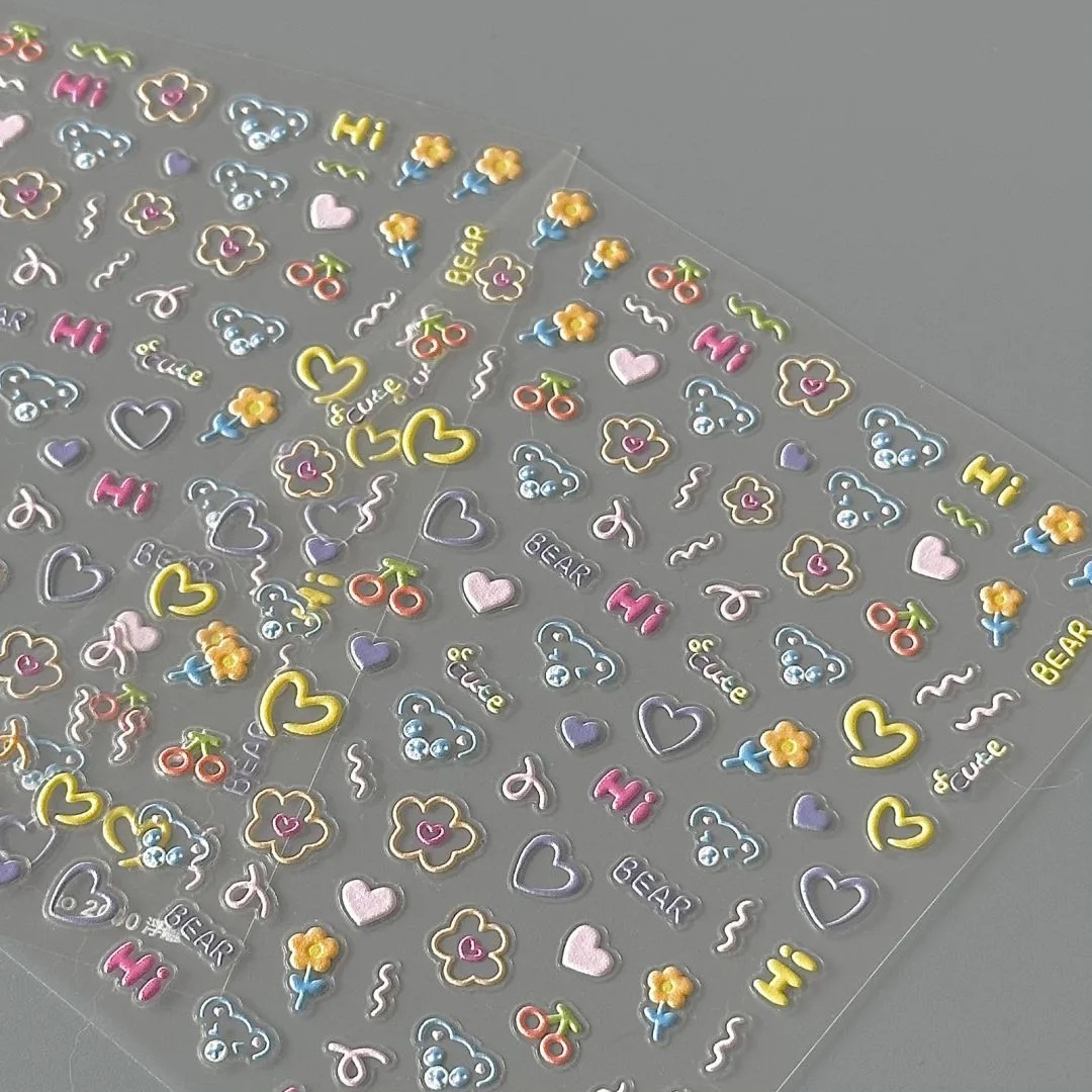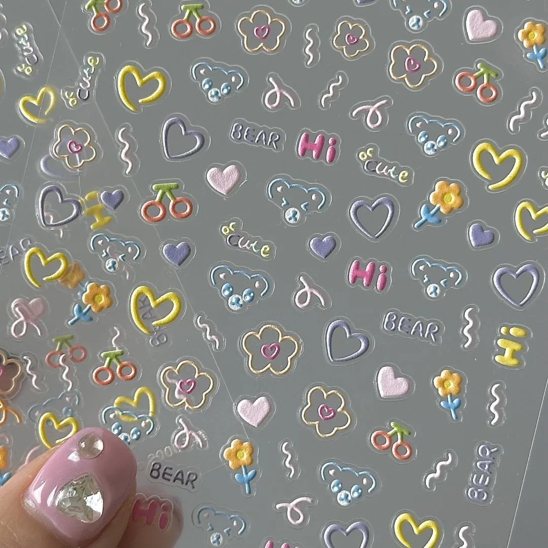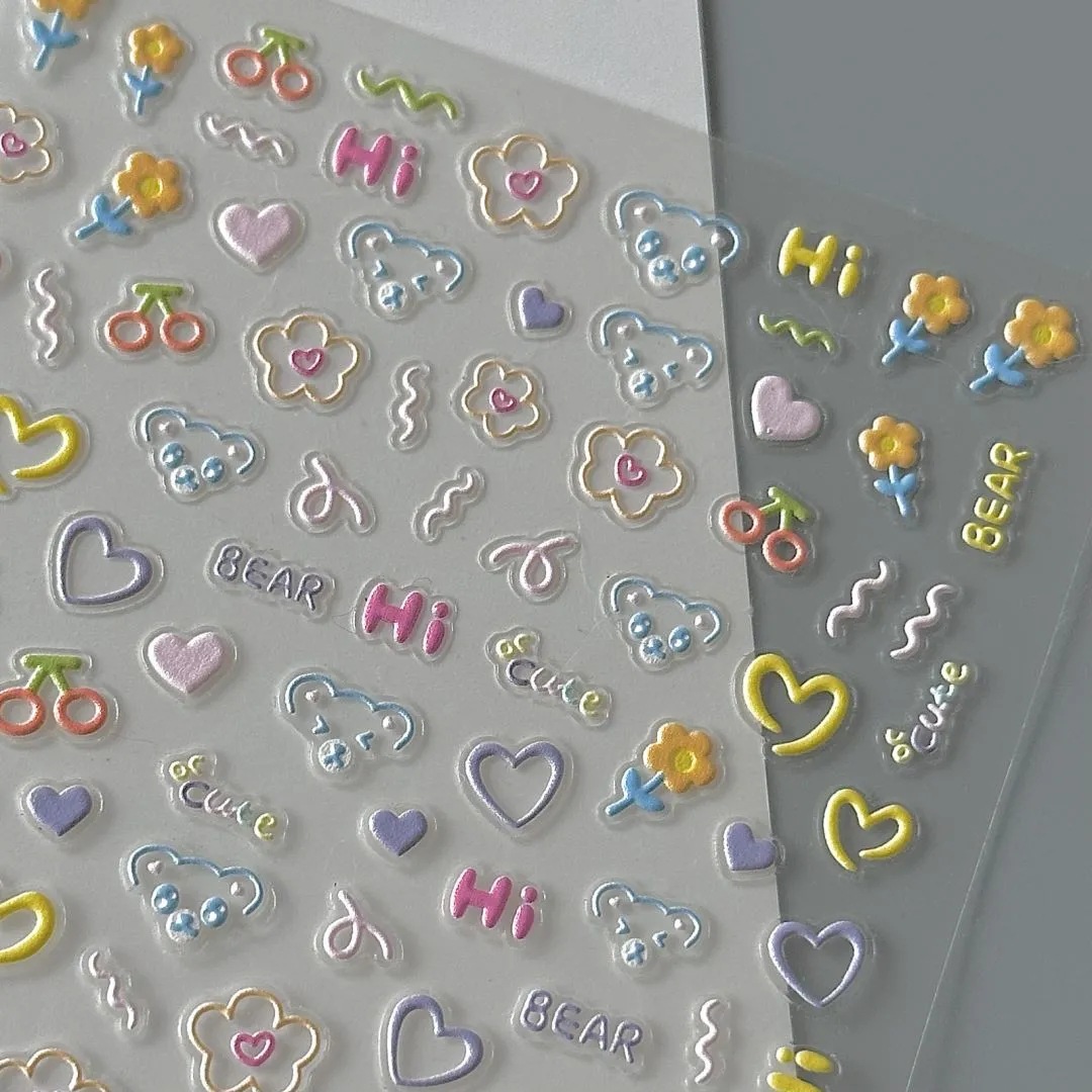 Xiaohongshu의 한국 곰 플랫 스티커와 같은 스타일, 학생들을 위한 고급스럽고 귀여운 플랫 접착 네일 스티커, 테이블 스티커 및 창문 스티커