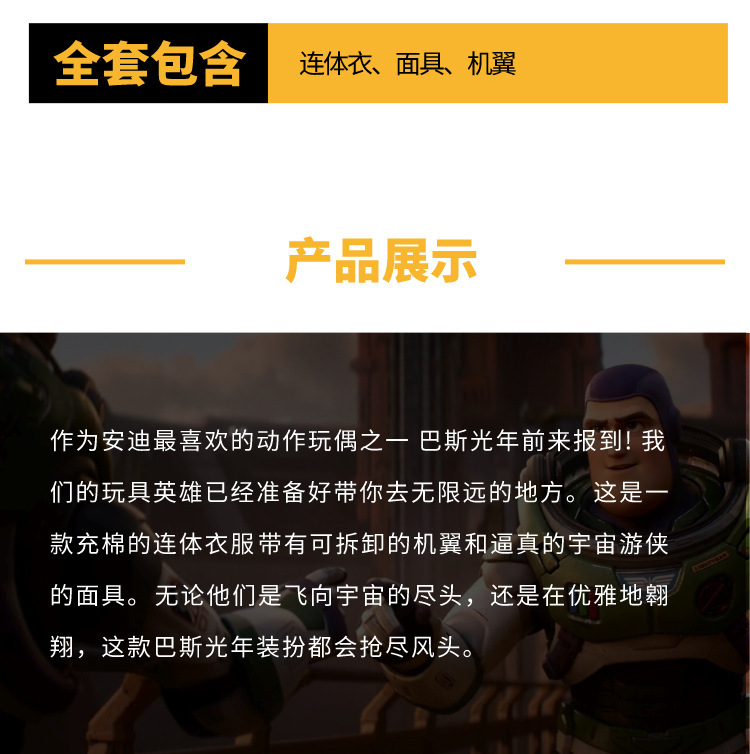 Buas Lightyear 어린이 면화로 가득 찬 캐릭터 원피스 업 할로윈 생일 파티 테마 공연 의상스토어 가기