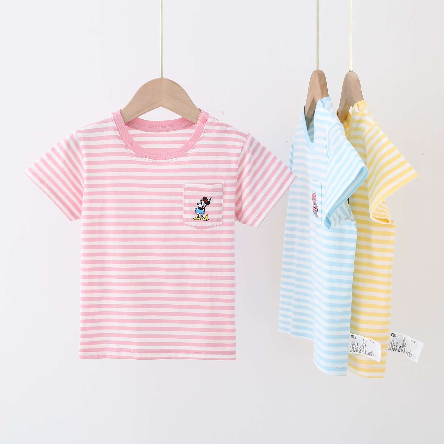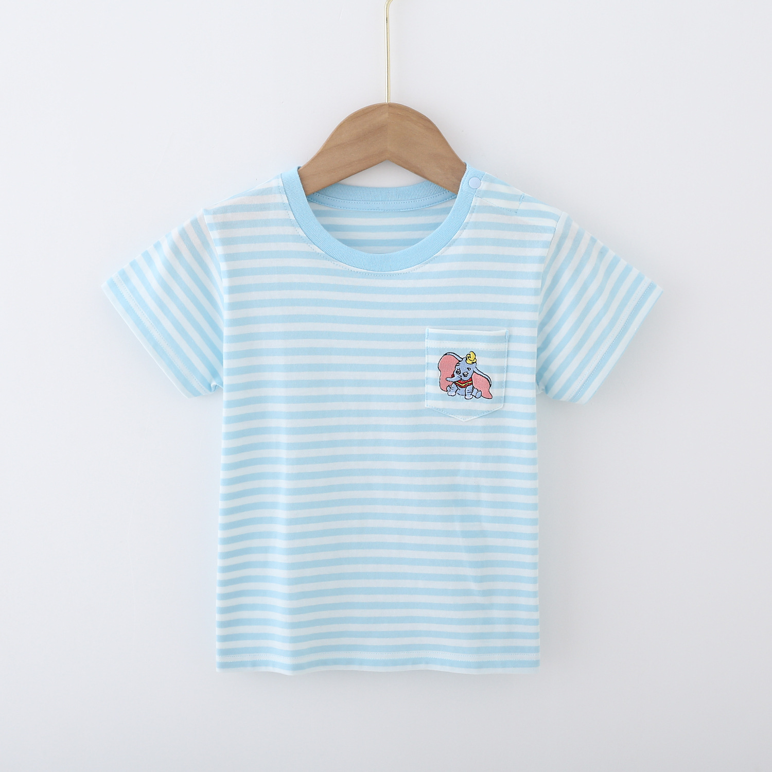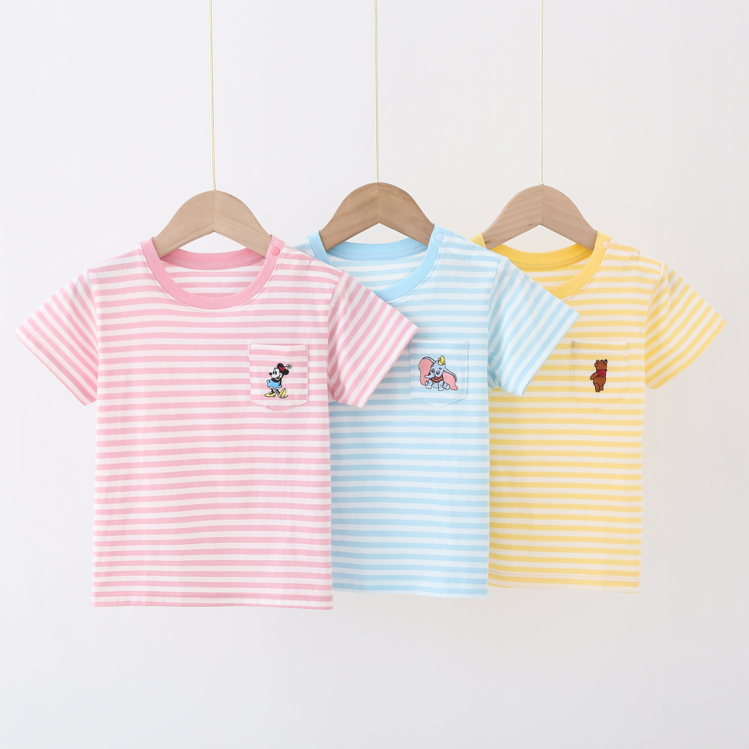 우수한 여름 아동면 티셔츠 소년 소녀 줄무늬 티셔츠 만화 자수 풀오버 반소매 90-130