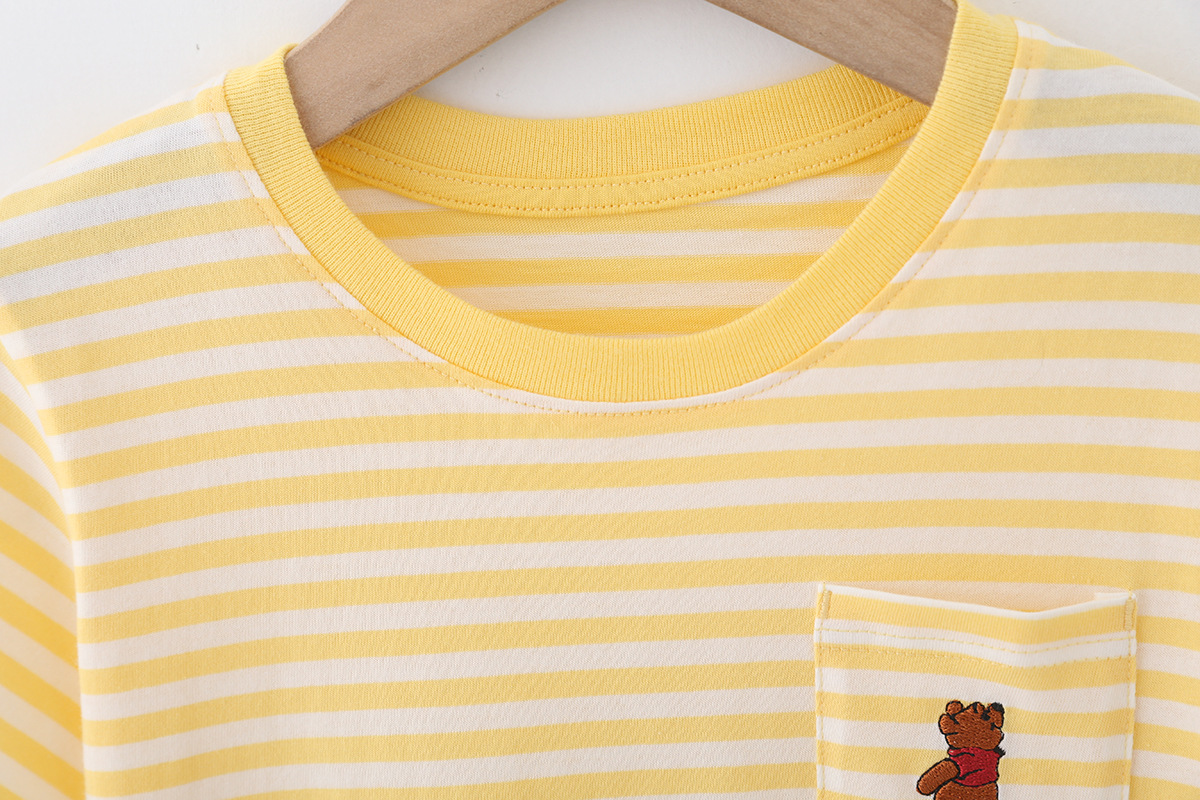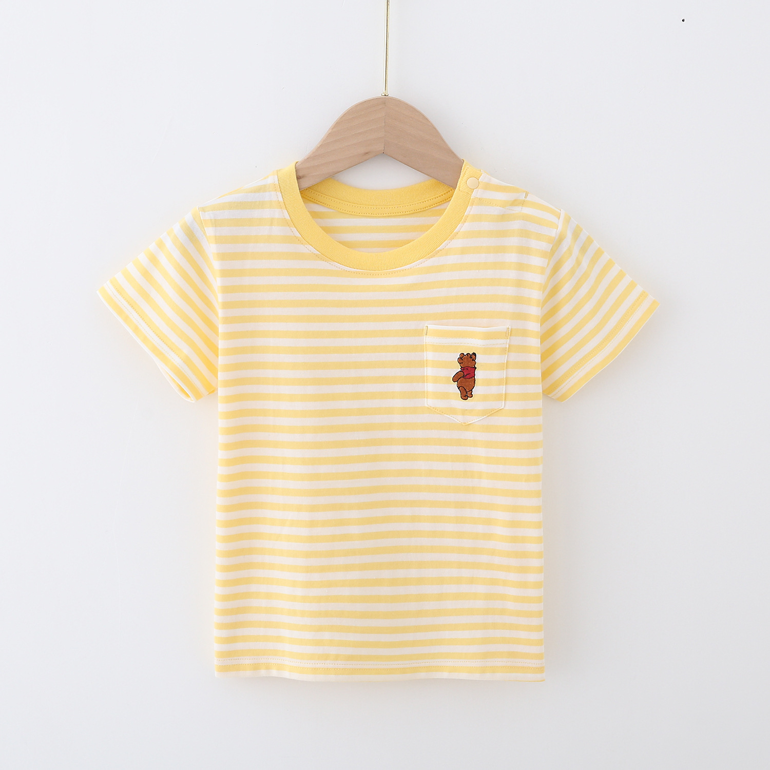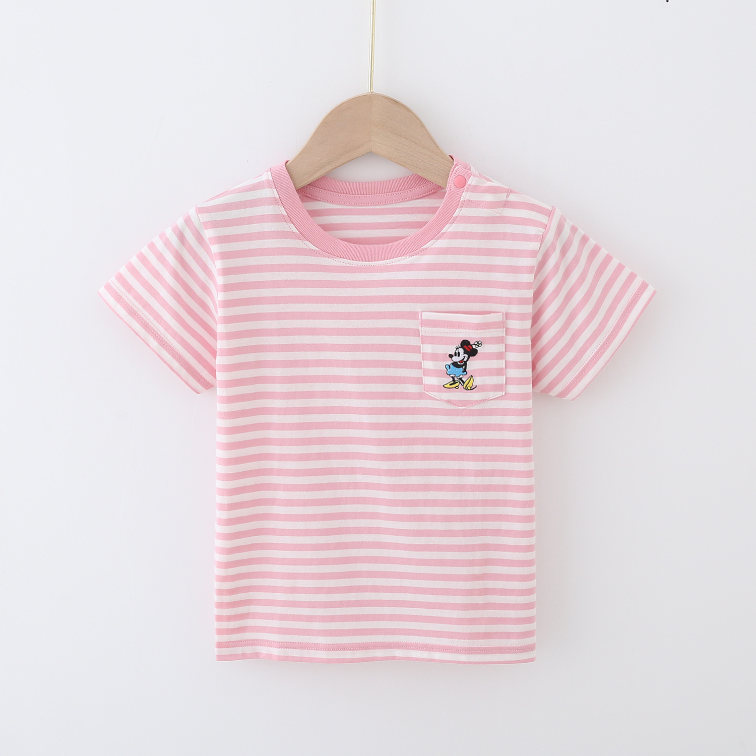 우수한 여름 아동면 티셔츠 소년 소녀 줄무늬 티셔츠 만화 자수 풀오버 반소매 90-130