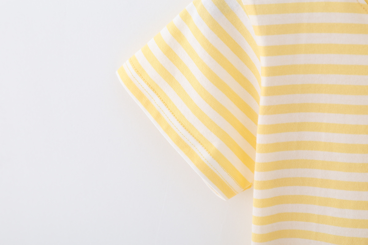 우수한 여름 아동면 티셔츠 소년 소녀 줄무늬 티셔츠 만화 자수 풀오버 반소매 90-130스토어 가기