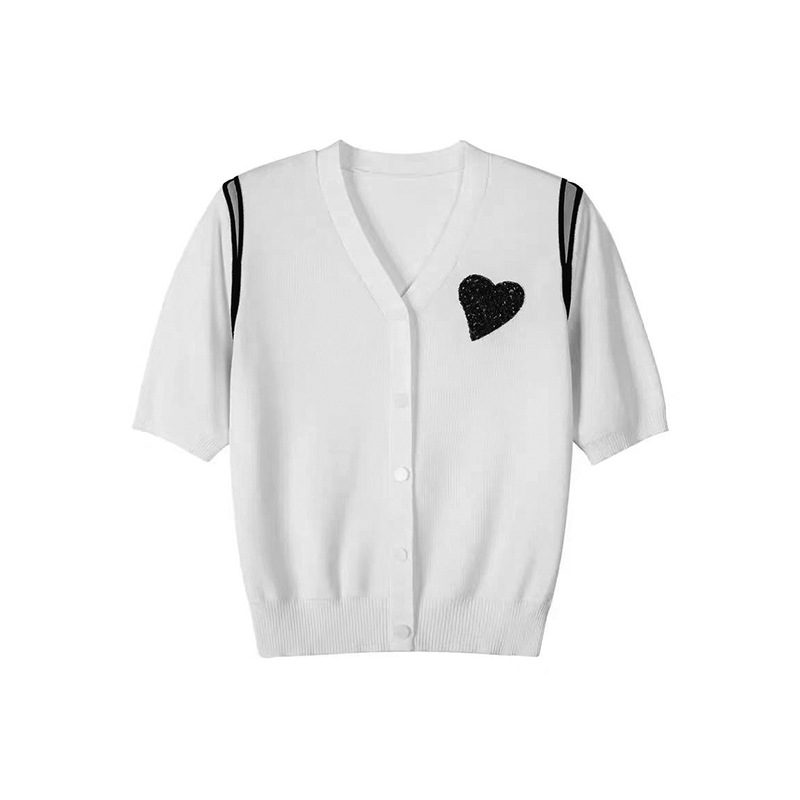 속이 비치는 오프숄더 하트 모양 스몰 프래그런스 스타일 니트 여성용 2026 여름 한국 패션 스타일리쉬한 배색 반팔 가디건