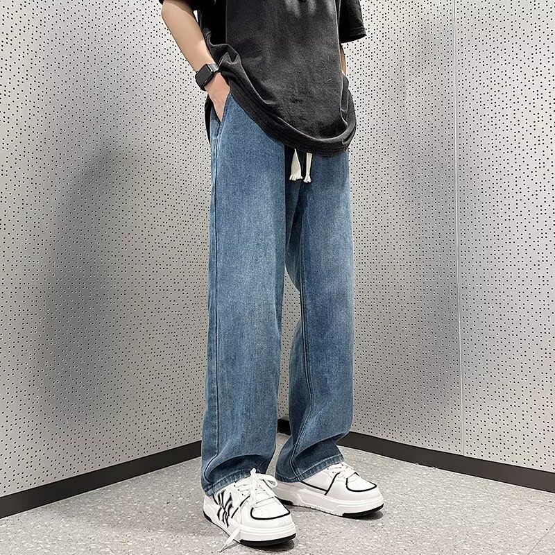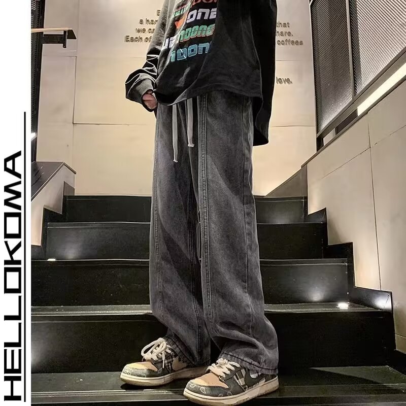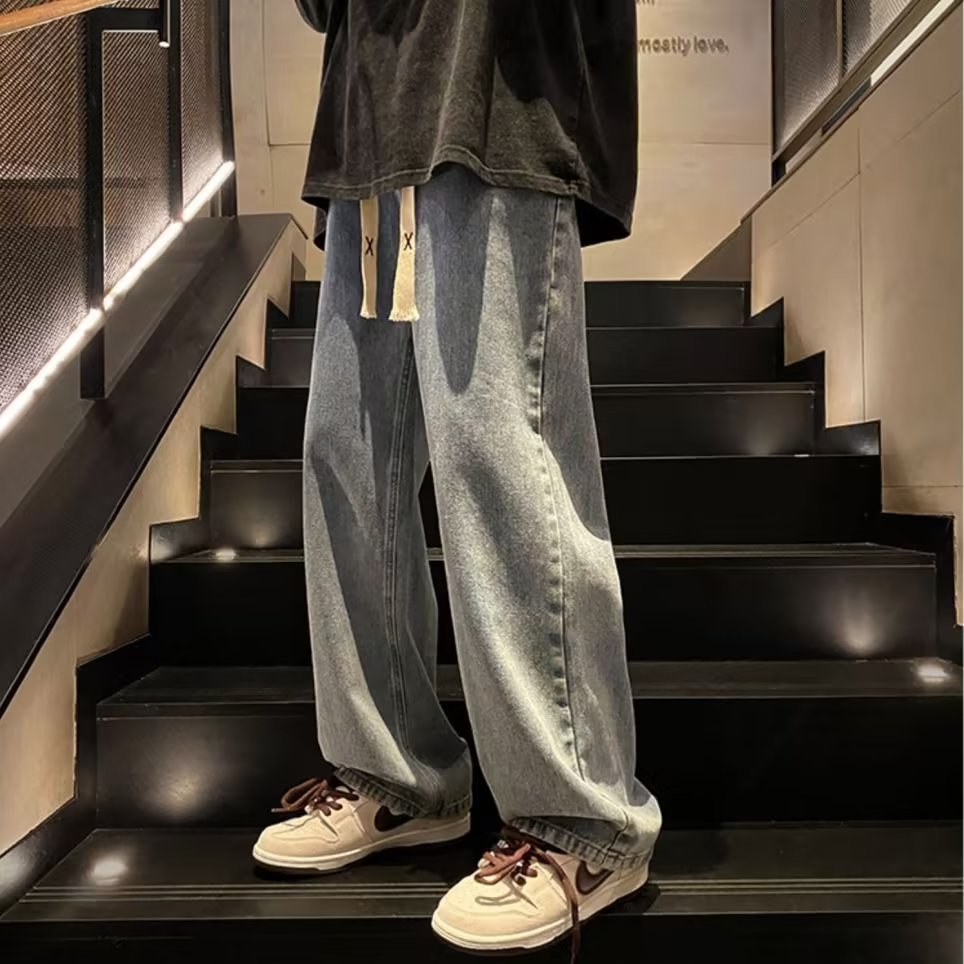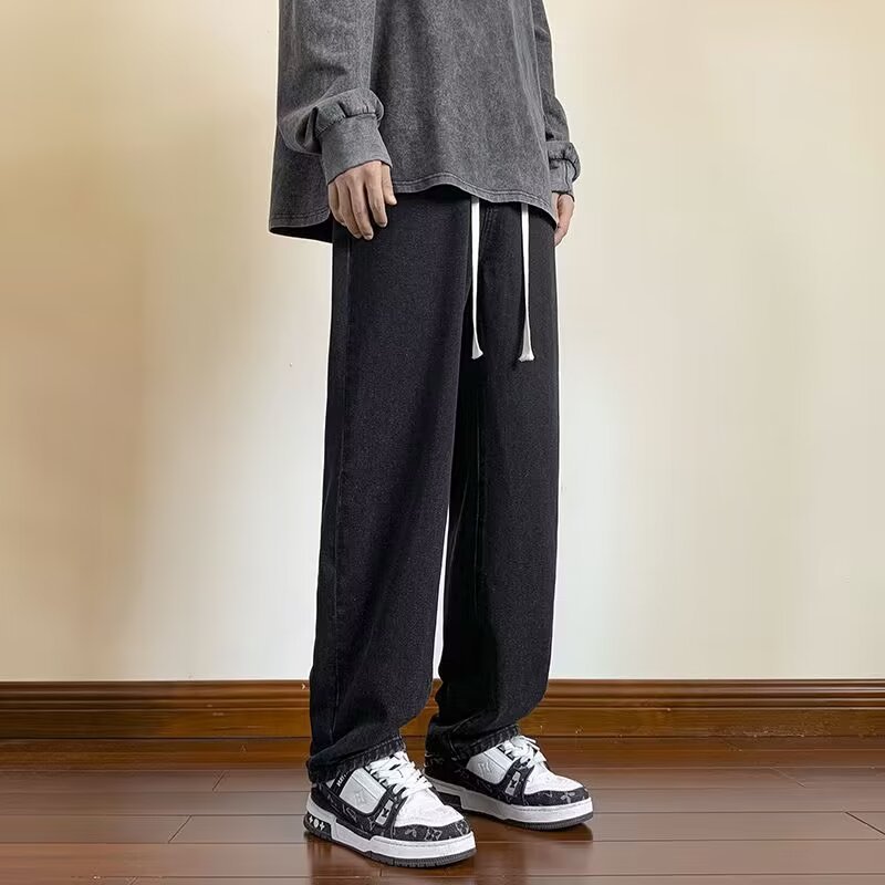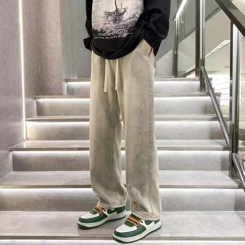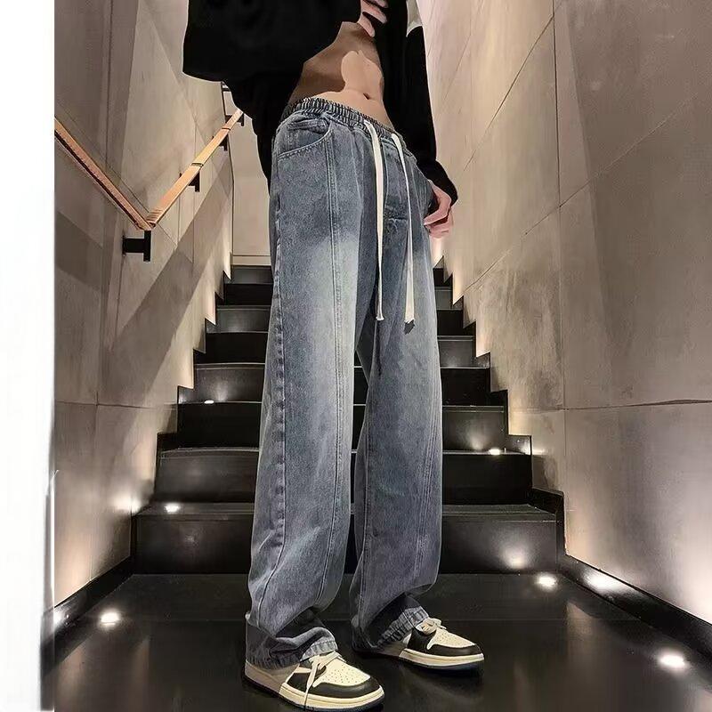 2025 신상 청바지 남성 봄, 가을 루즈 스트레이트 트렌디 아메리칸 레트로 와이드 레그 캐주얼 롱 팬츠 남성용스토어 가기