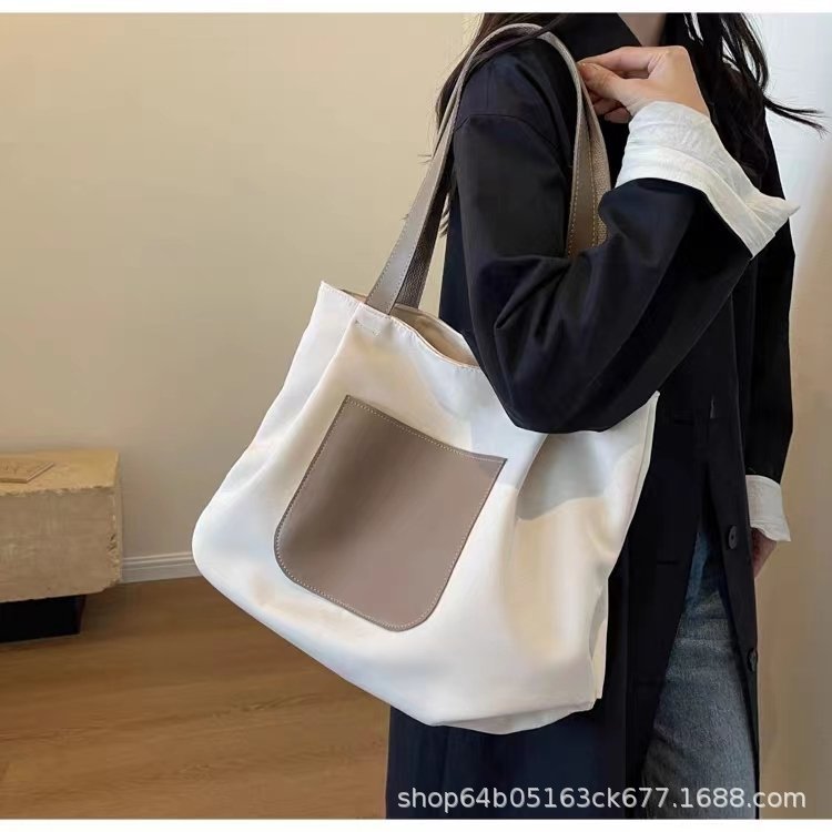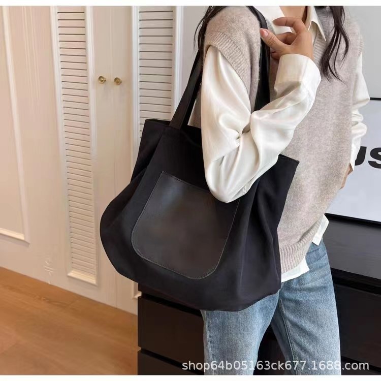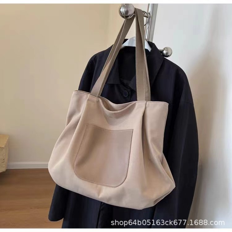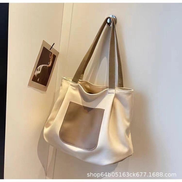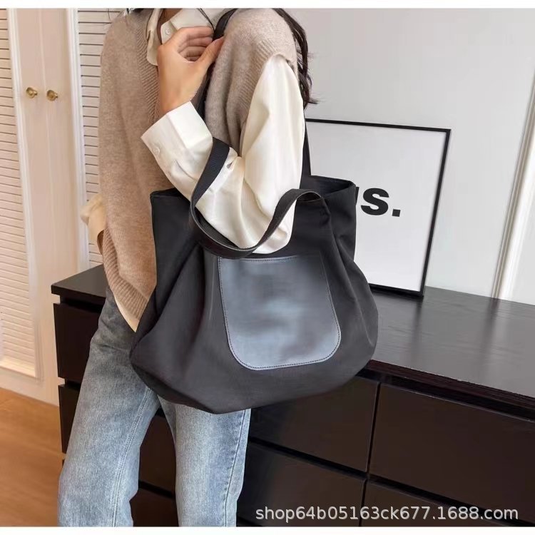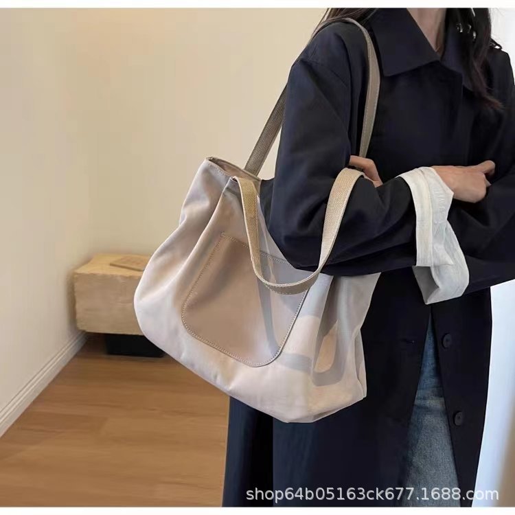 캐주얼 대용량 캔버스 가방 여성의 2024 새로운 스타일 간단한 올 매치 통근 어깨 가방 경량 여행 천 가방