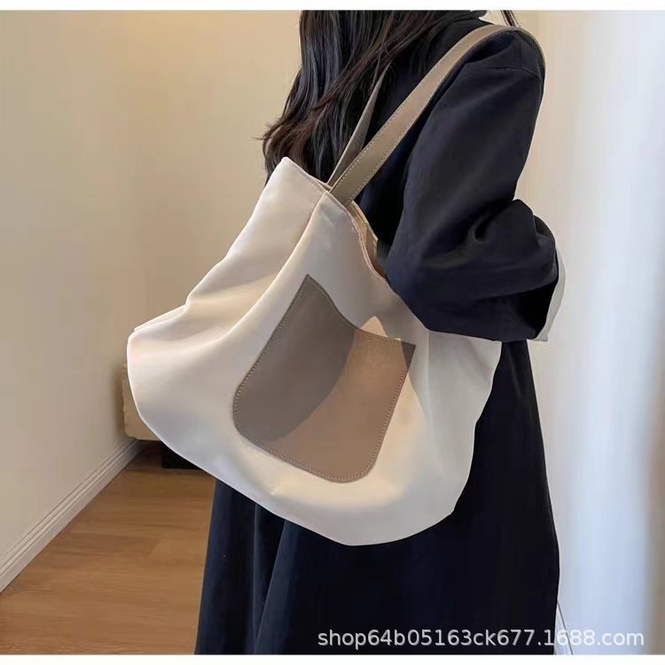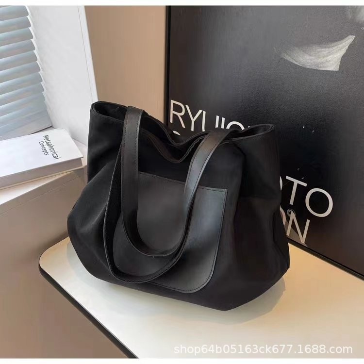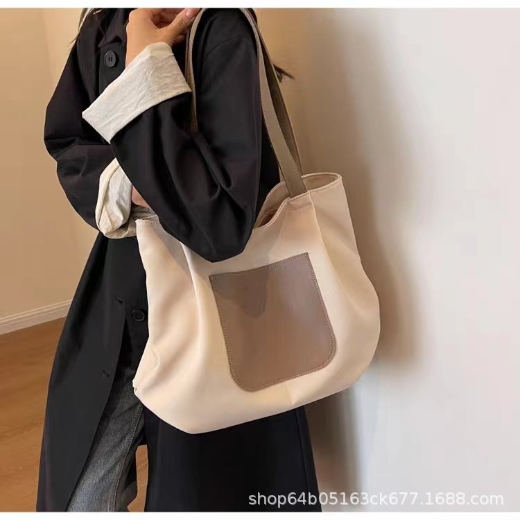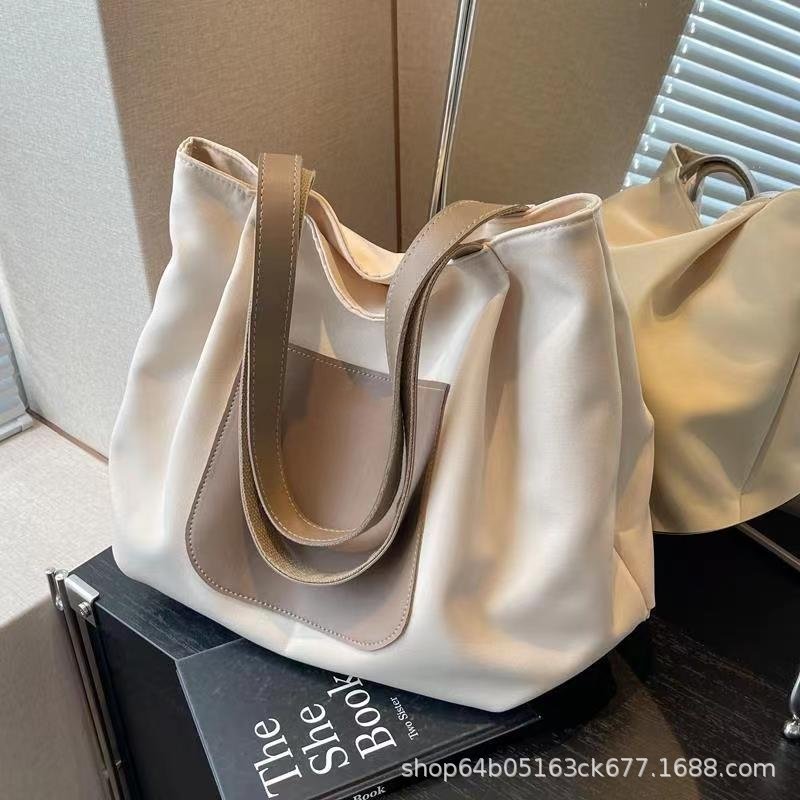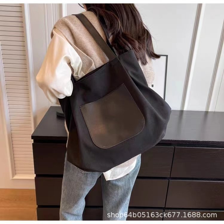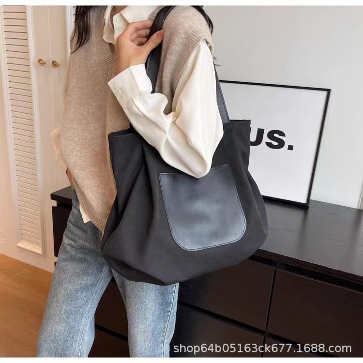 캐주얼 대용량 캔버스 가방 여성의 2024 새로운 스타일 간단한 올 매치 통근 어깨 가방 경량 여행 천 가방