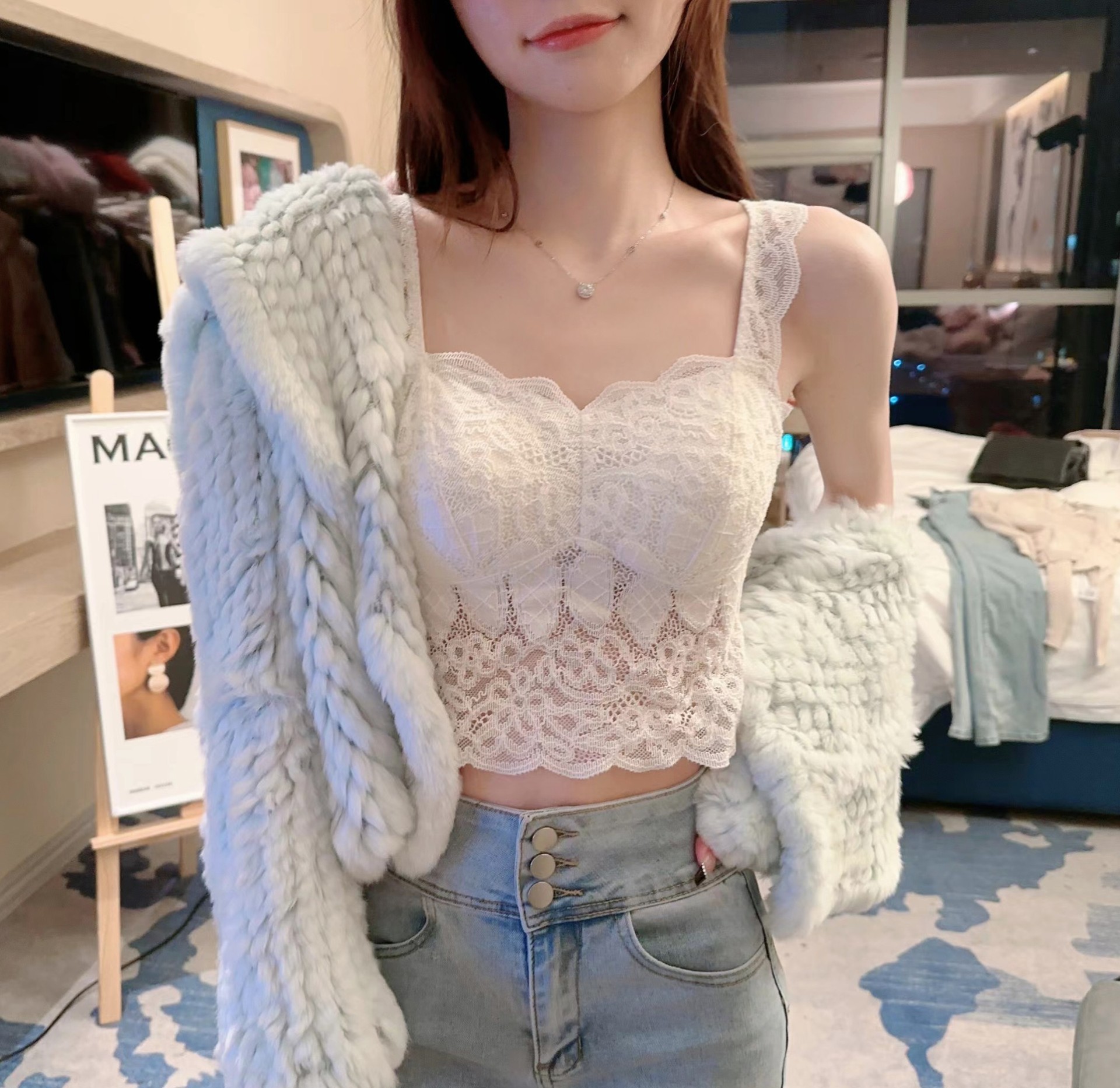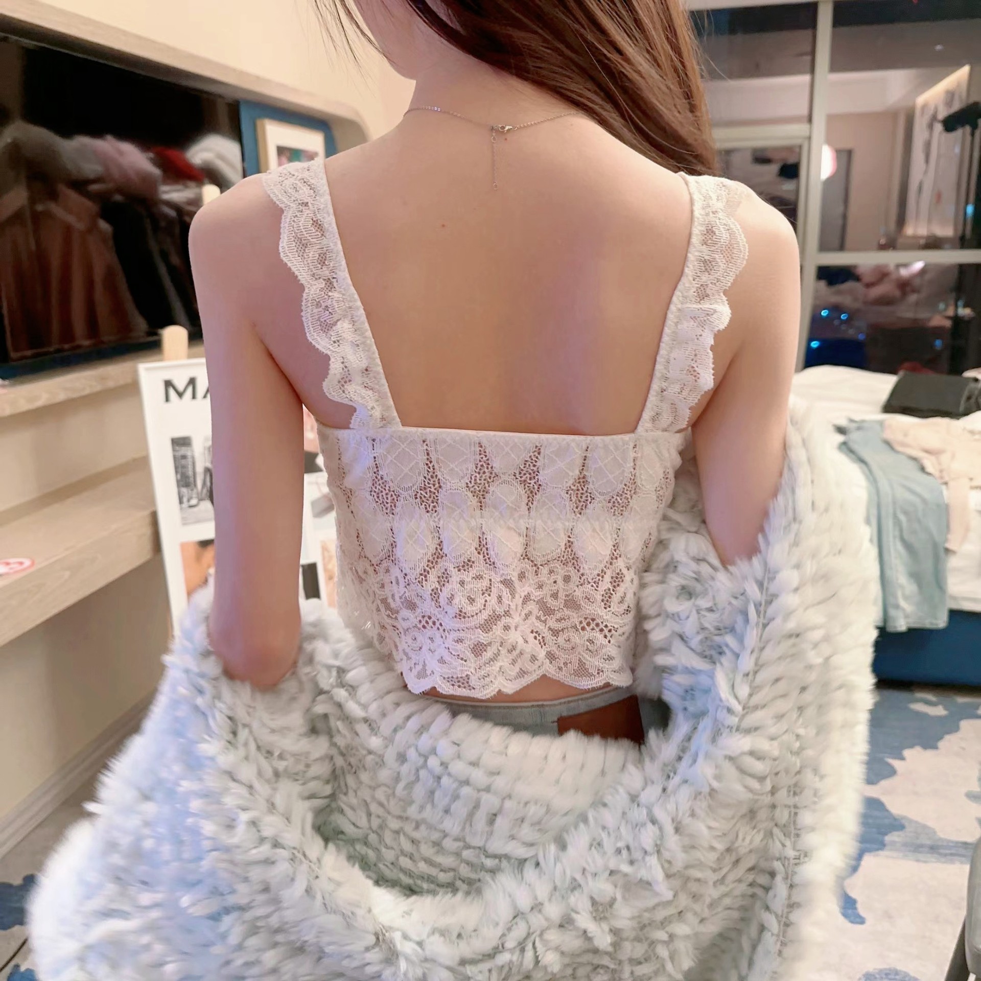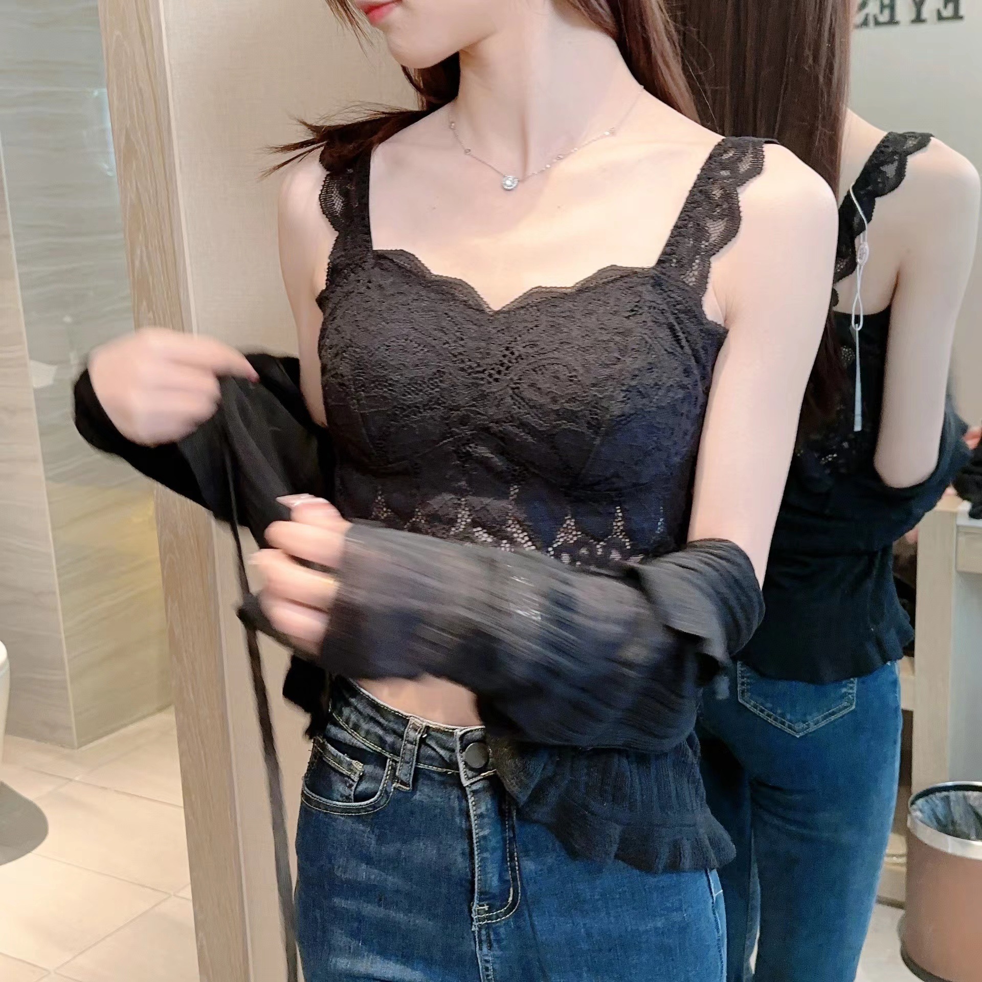 프랑스 레이스 아름다운 백 플러스 사이즈 가슴 패드 부드럽고 편안한 틈새 의상 섹시한 슬링 내부 조끼 속옷스토어 가기