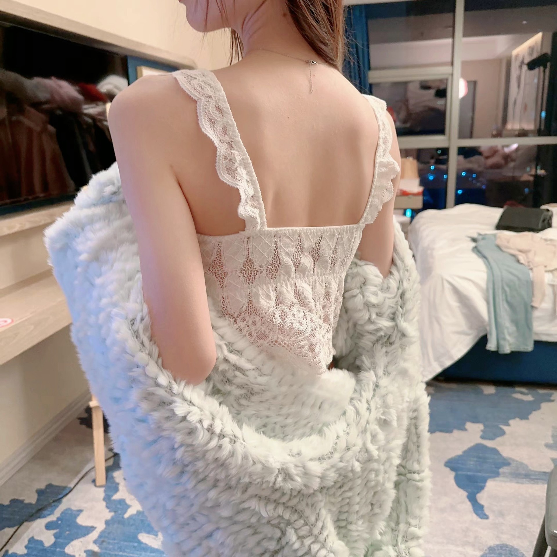 프랑스 레이스 아름다운 백 플러스 사이즈 가슴 패드 부드럽고 편안한 틈새 의상 섹시한 슬링 내부 조끼 속옷