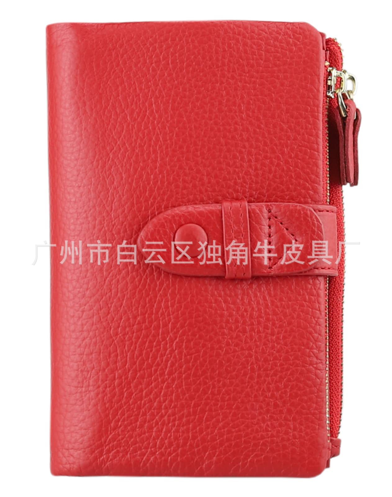 일본 아마존 정품 가죽 여성용 짧은 지갑 상단 레이어 Cowhide Litchi 패턴 멀티 카드 홀더 분리 가능한 느슨한 잎 지갑