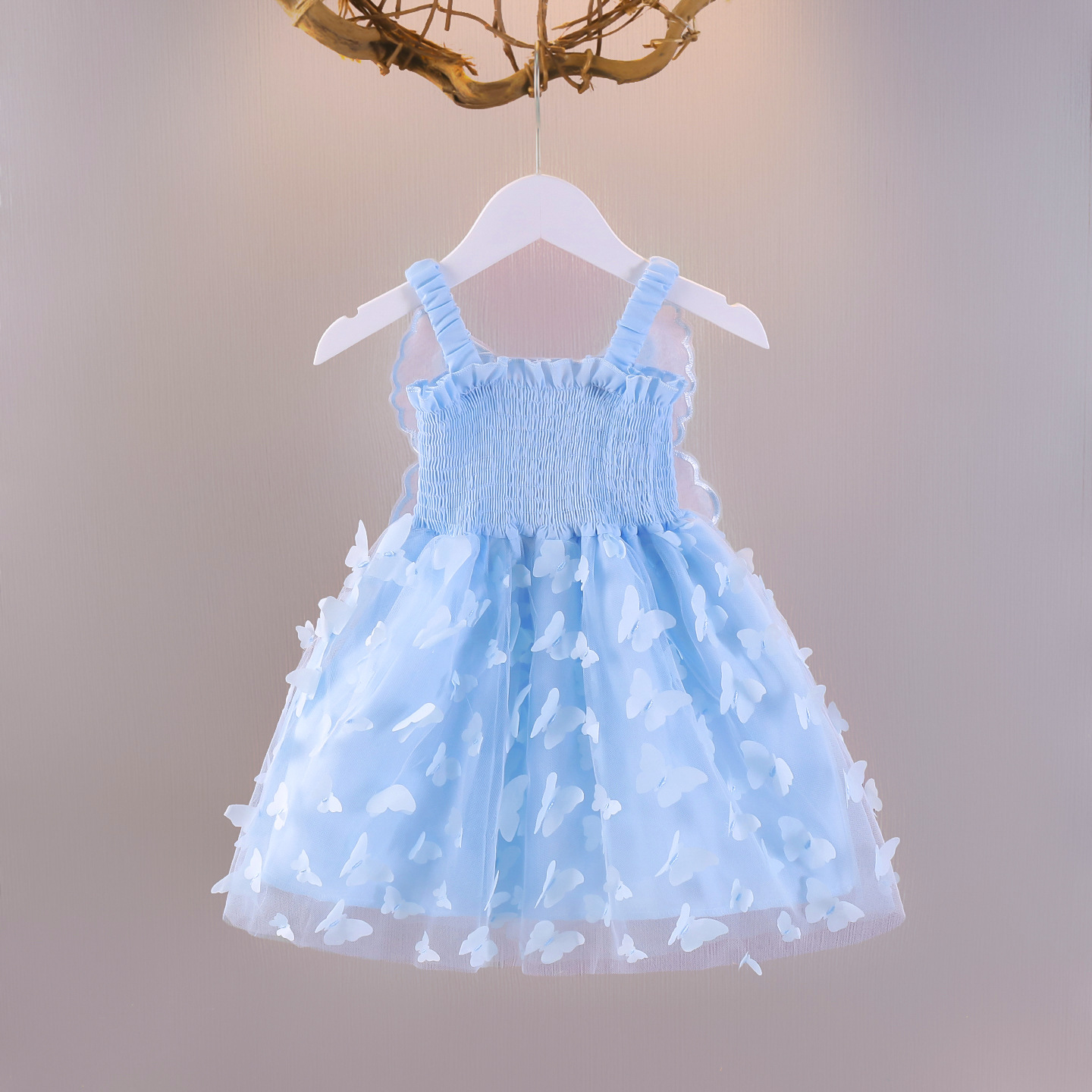 여자 여름 어린이 입체 큰 활 여자 공주 메쉬 조끼 진주 서스펜더 드레스스토어 가기