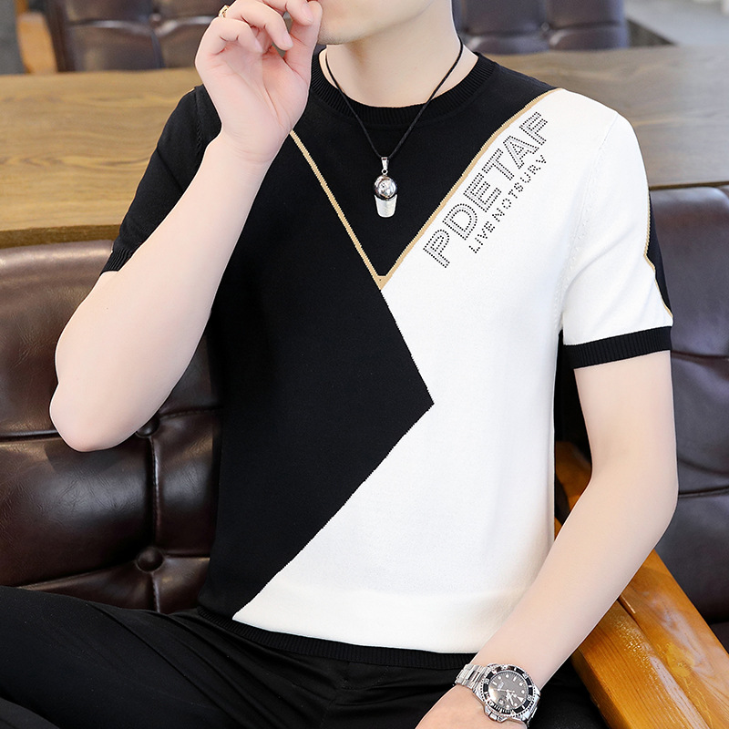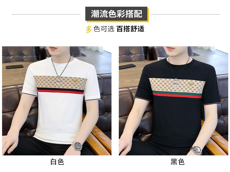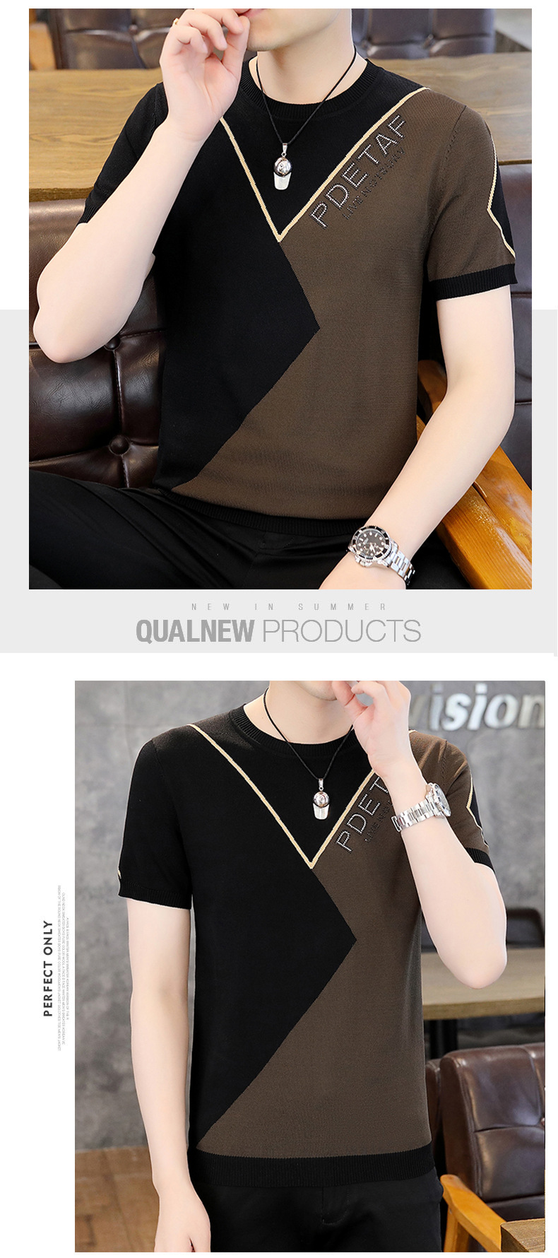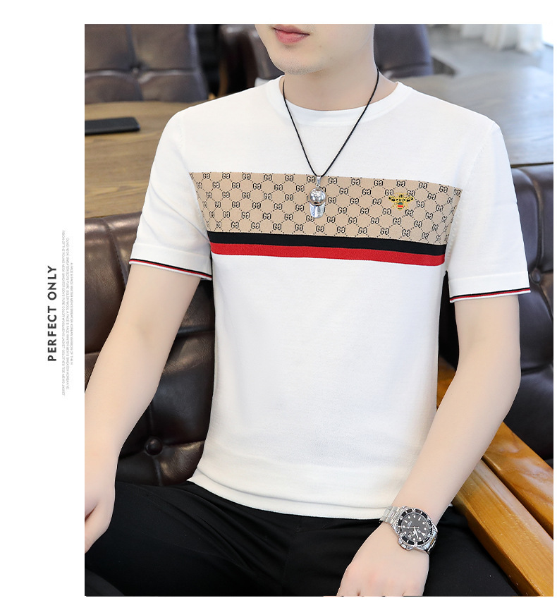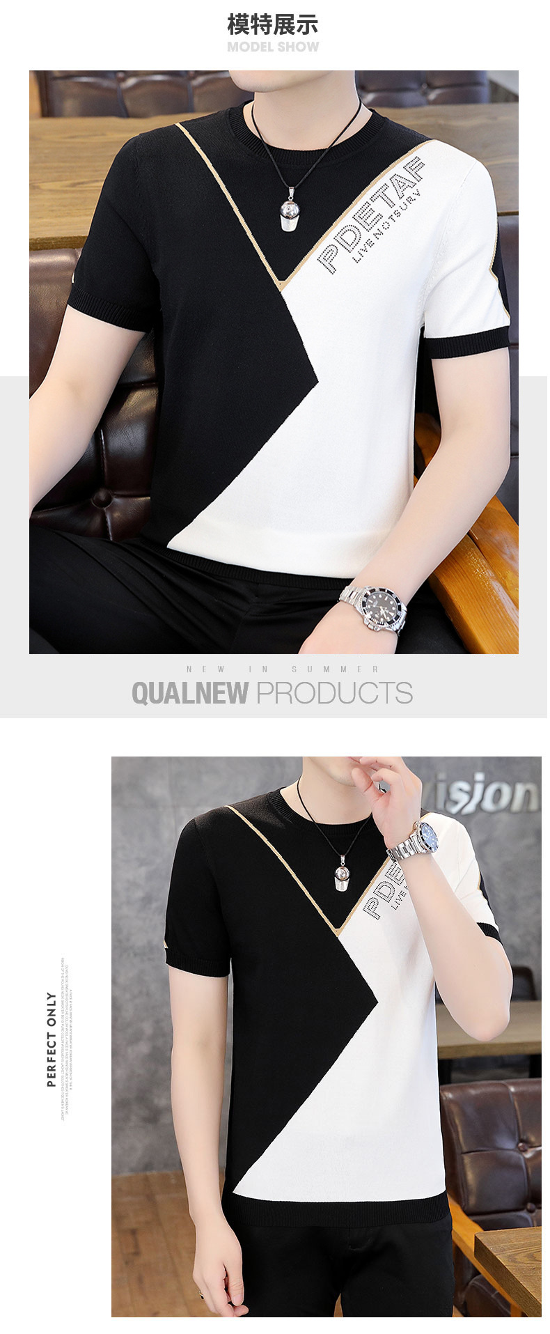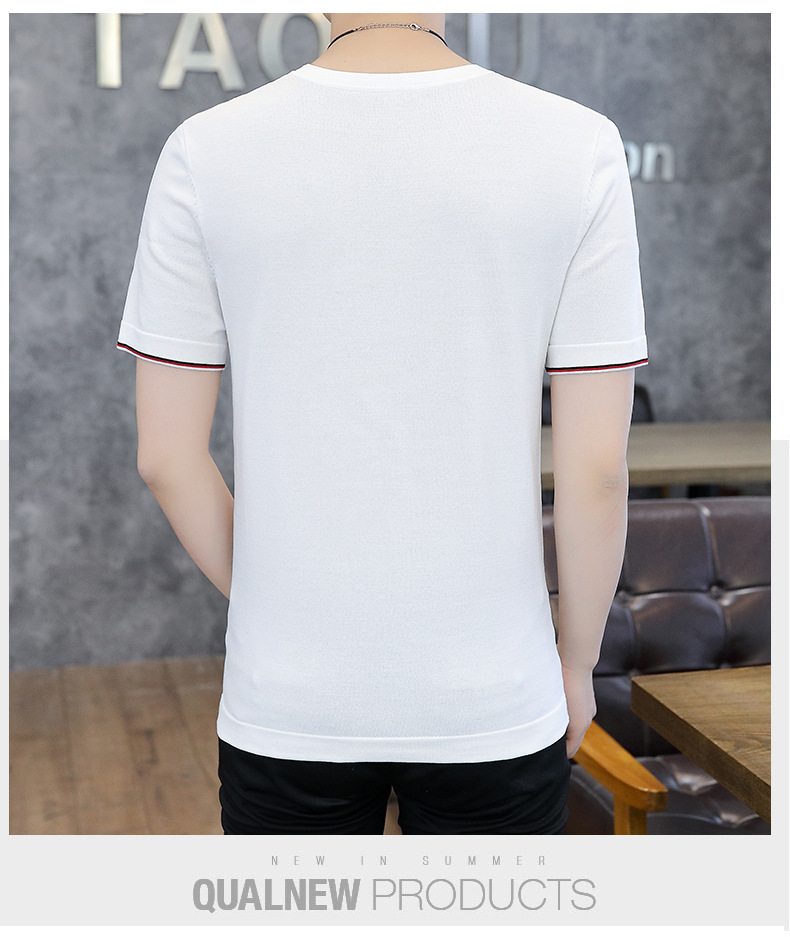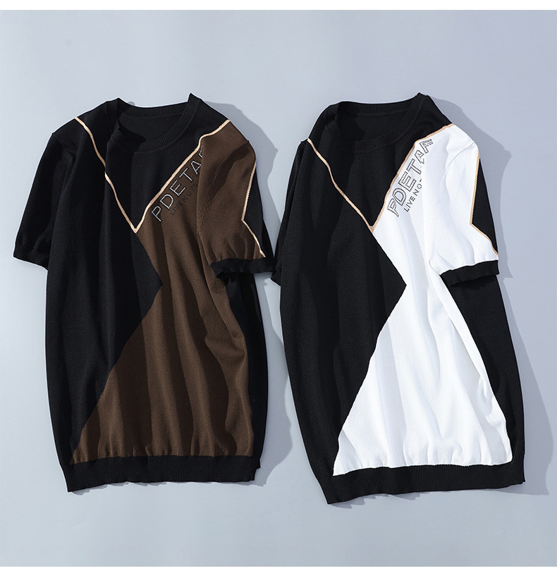 2024 여름 남자 하이 퀄리티 빙글 리넨 니트 라운드 넥 풀오버 남자 티셔츠 패션 하라주쿠 스타일 짧은 소매