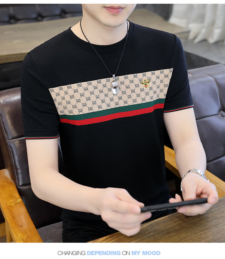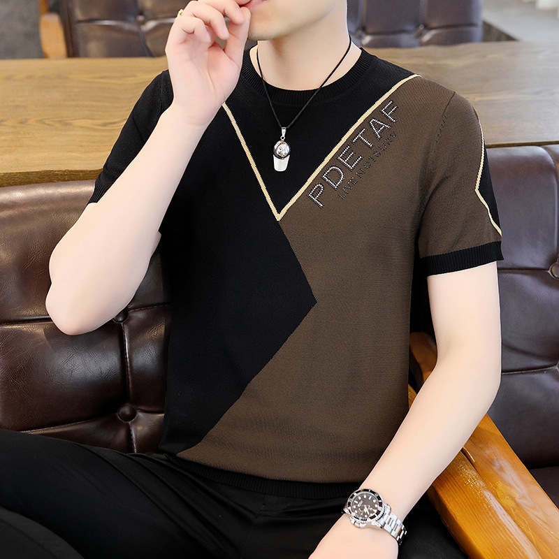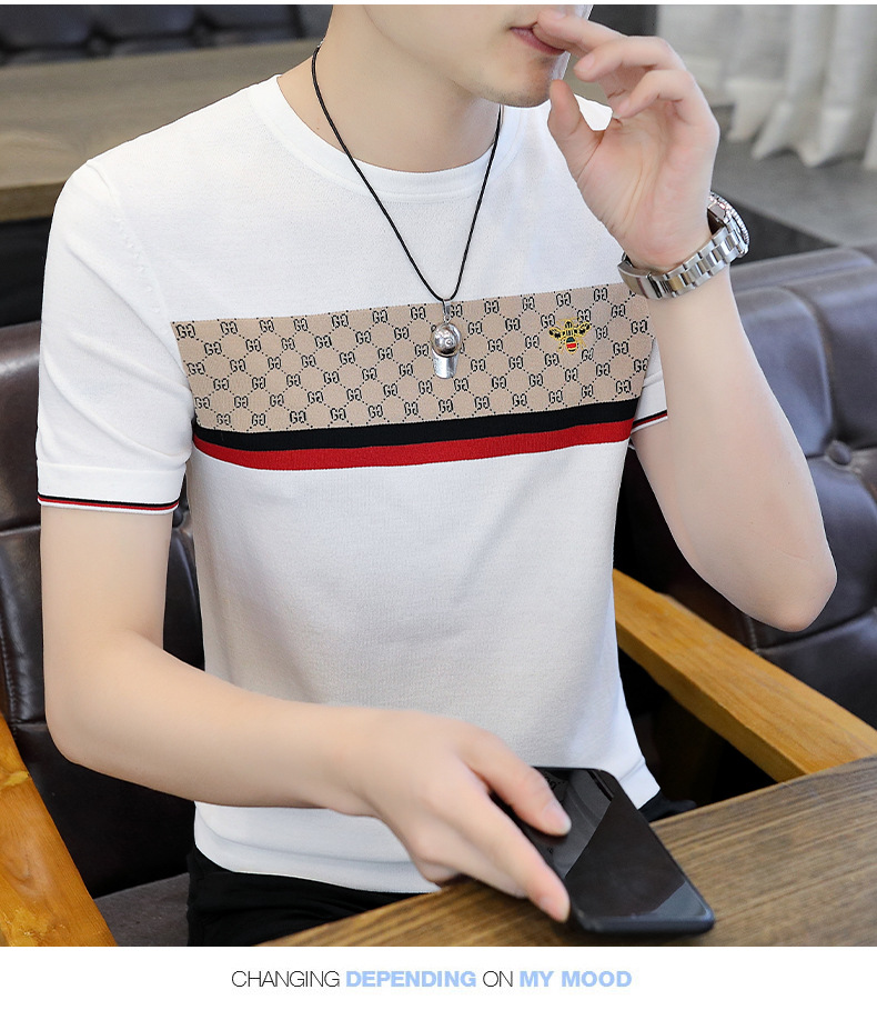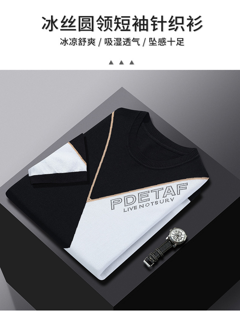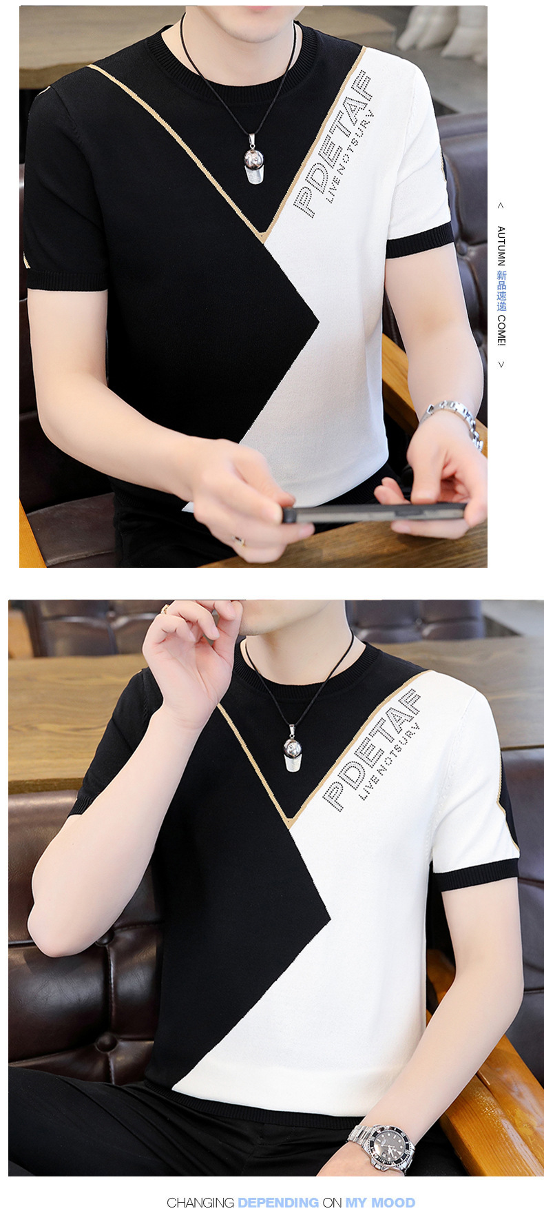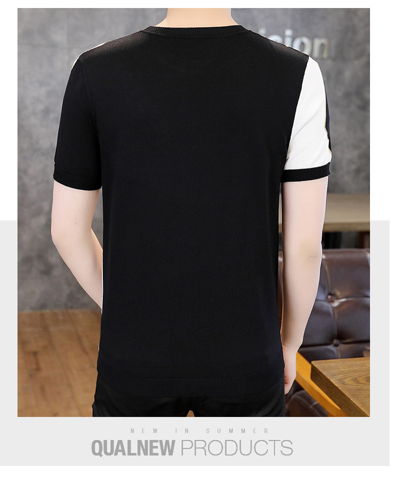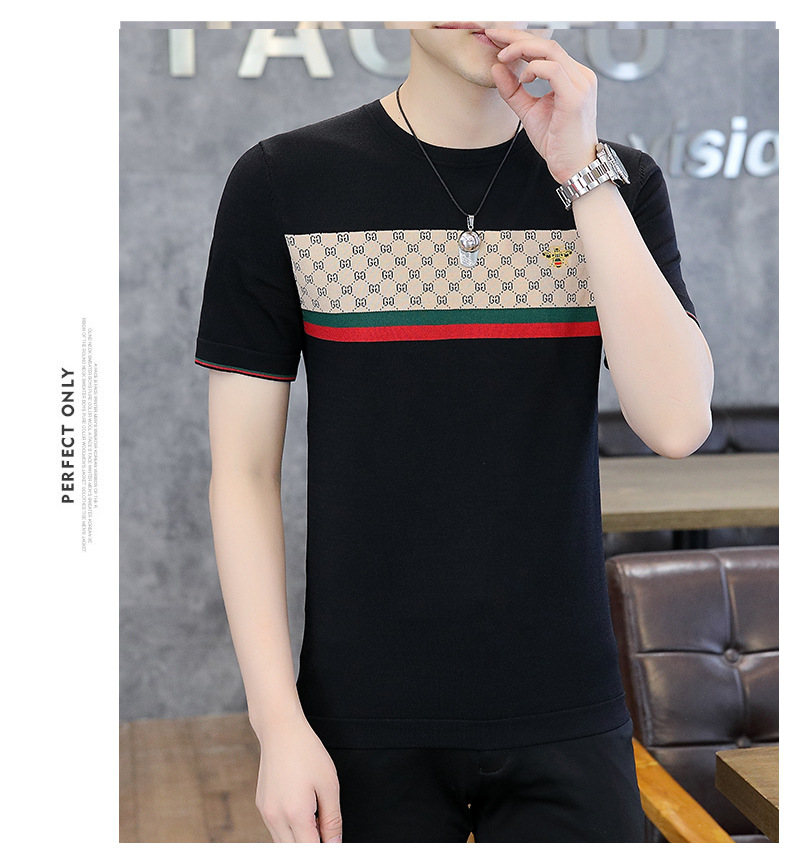 2024 여름 남자 하이 퀄리티 빙글 리넨 니트 라운드 넥 풀오버 남자 티셔츠 패션 하라주쿠 스타일 짧은 소매