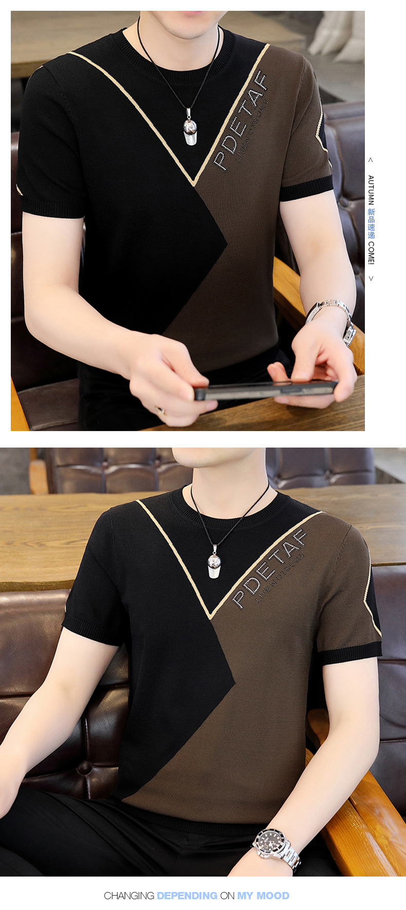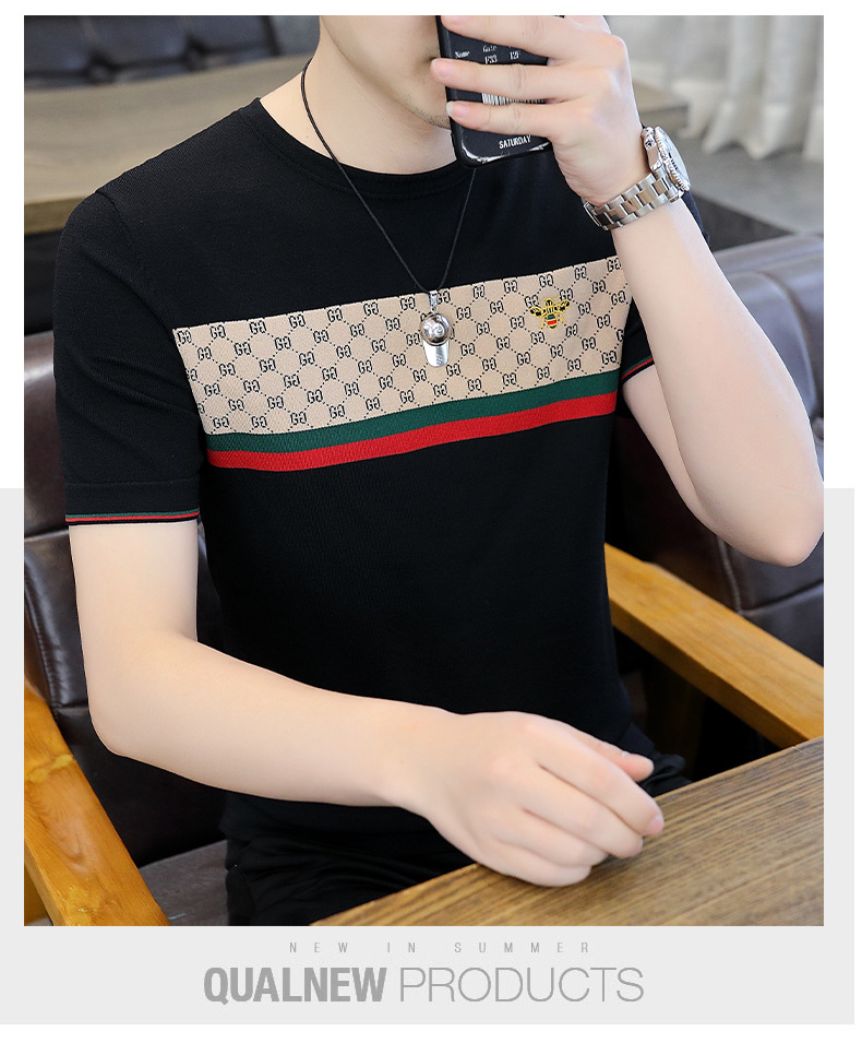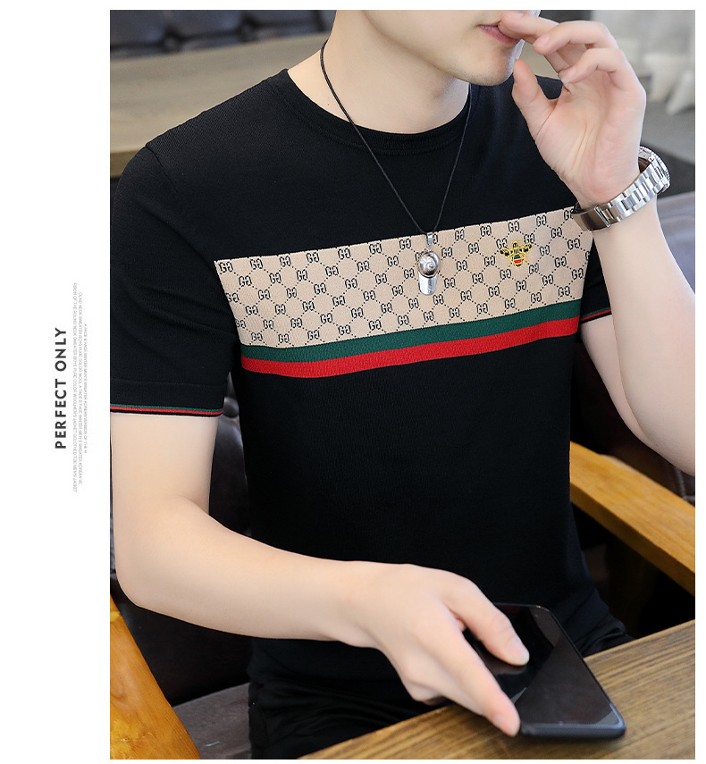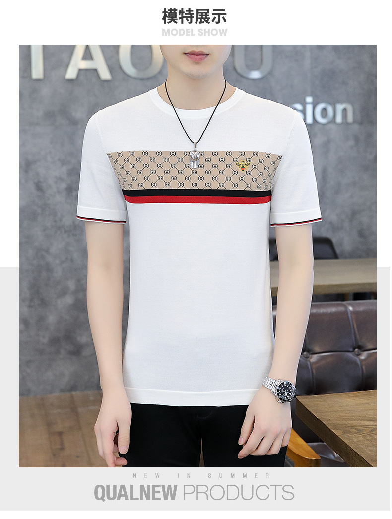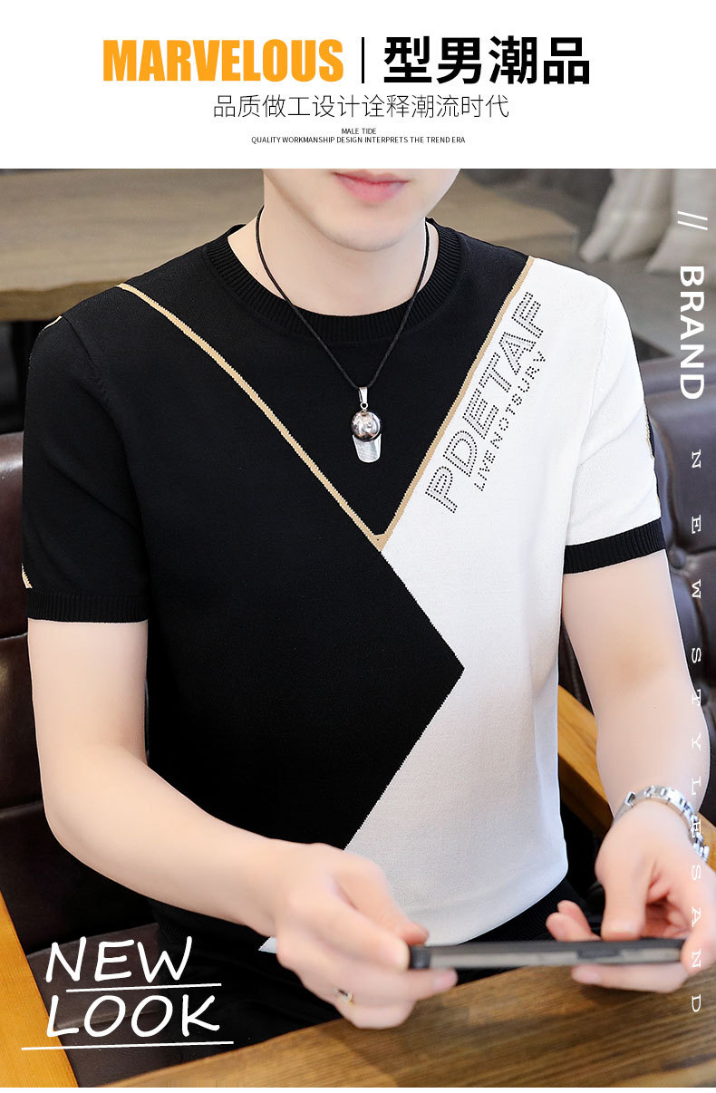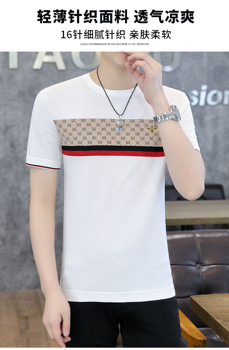 2024 여름 남자 하이 퀄리티 빙글 리넨 니트 라운드 넥 풀오버 남자 티셔츠 패션 하라주쿠 스타일 짧은 소매스토어 가기
