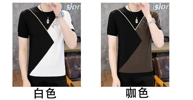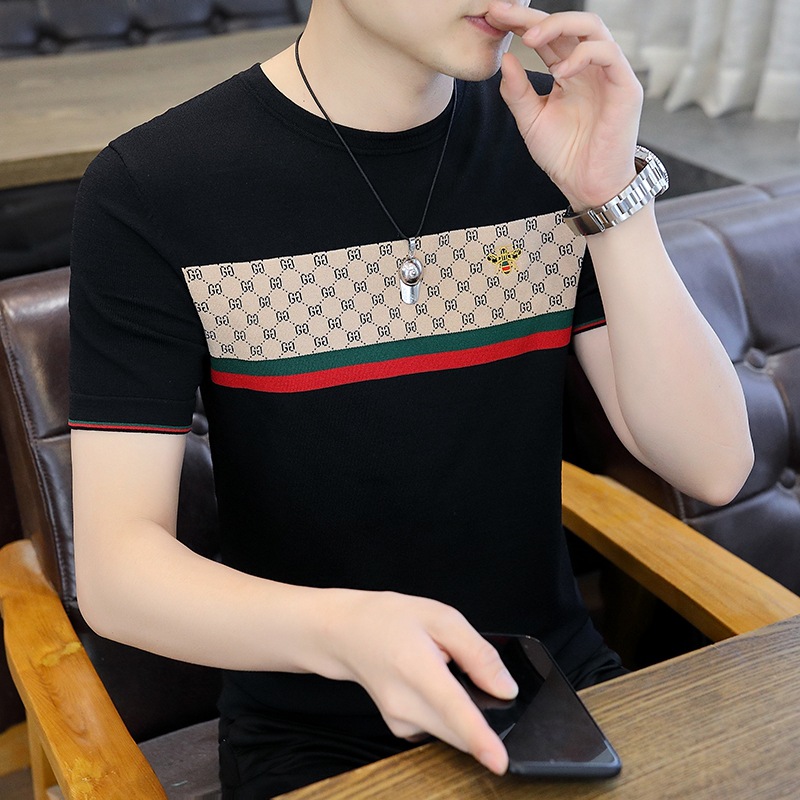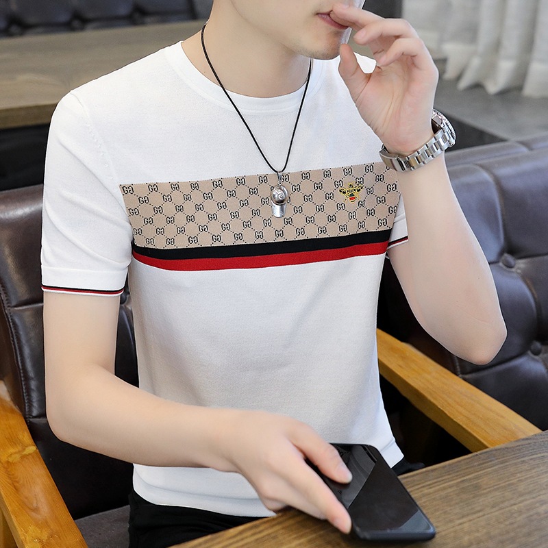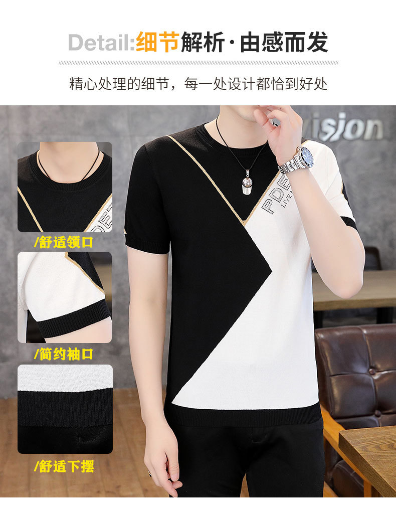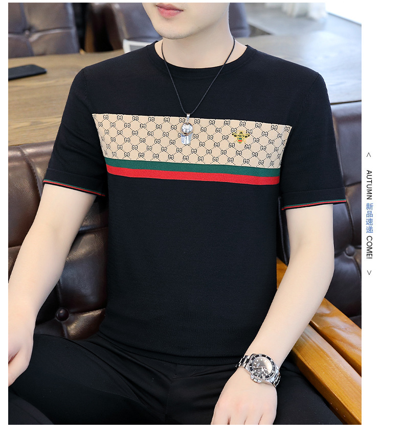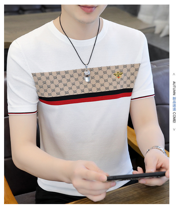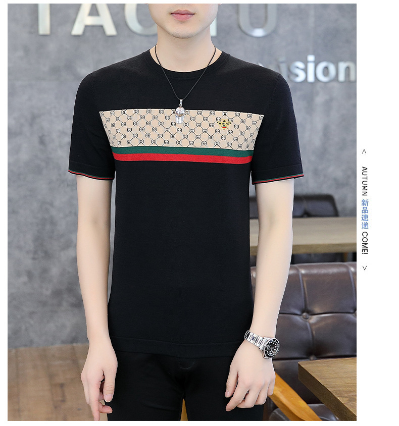 2024 여름 남자 하이 퀄리티 빙글 리넨 니트 라운드 넥 풀오버 남자 티셔츠 패션 하라주쿠 스타일 짧은 소매스토어 가기