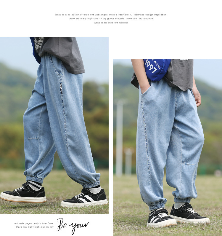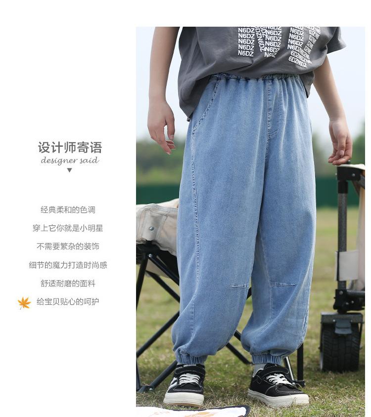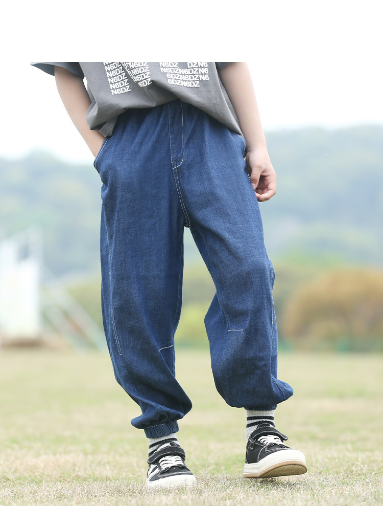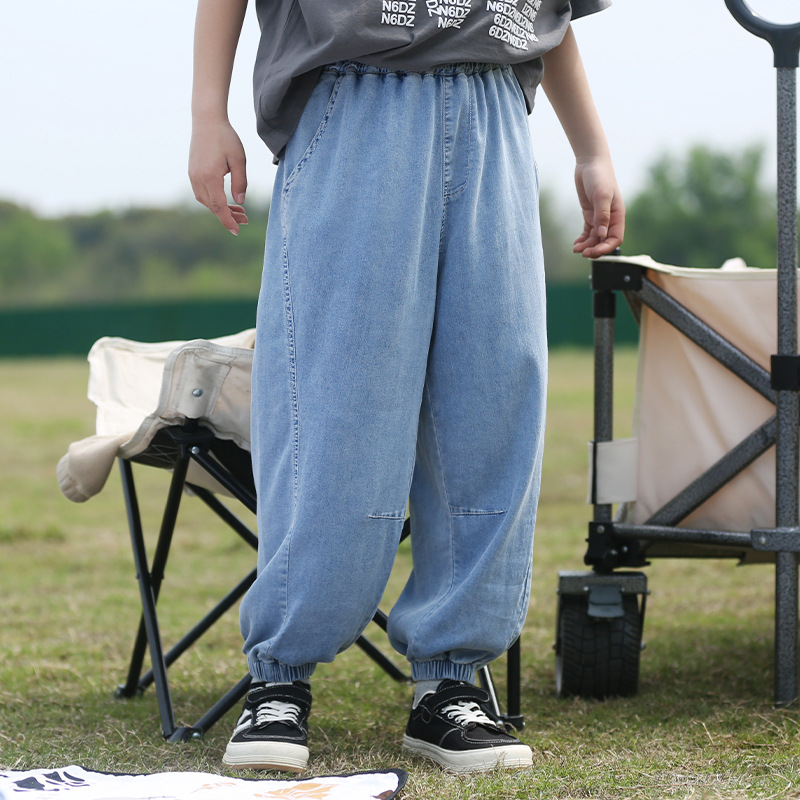 남학생 텐셀 청바지 여름 얇은 어린이 느슨한 모기 방지 바지 대형 어린이 바지 유행 캐주얼 바지스토어 가기