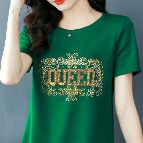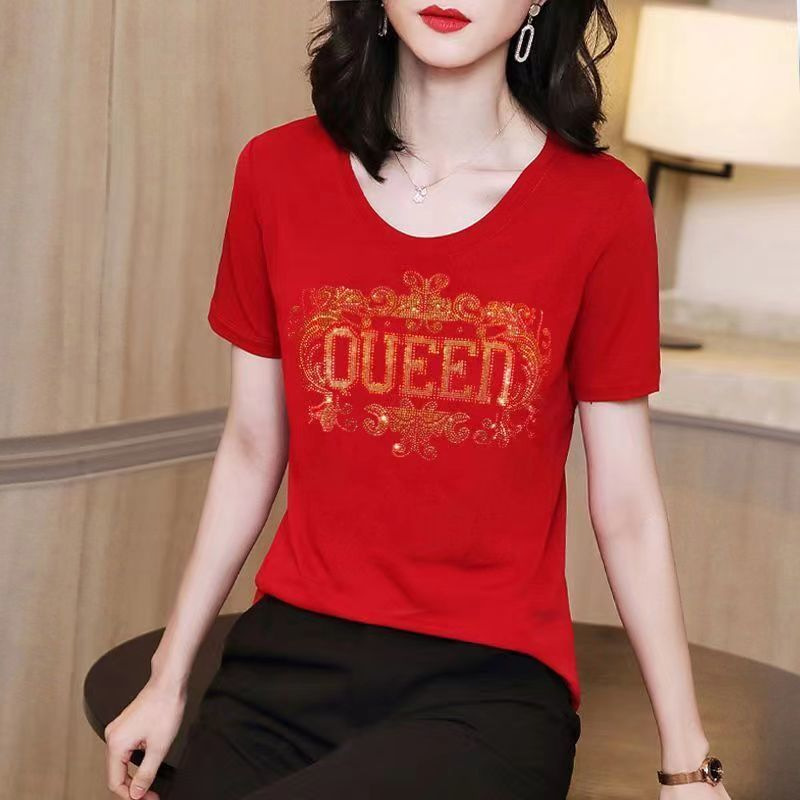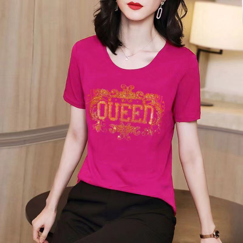 하이 엔드 티셔츠 여성 패션 핫 드릴링 올 매치 트렌드 한국 스타일 슬림 우아한 편안한 통기성 캐주얼 루즈 슬림 티셔츠