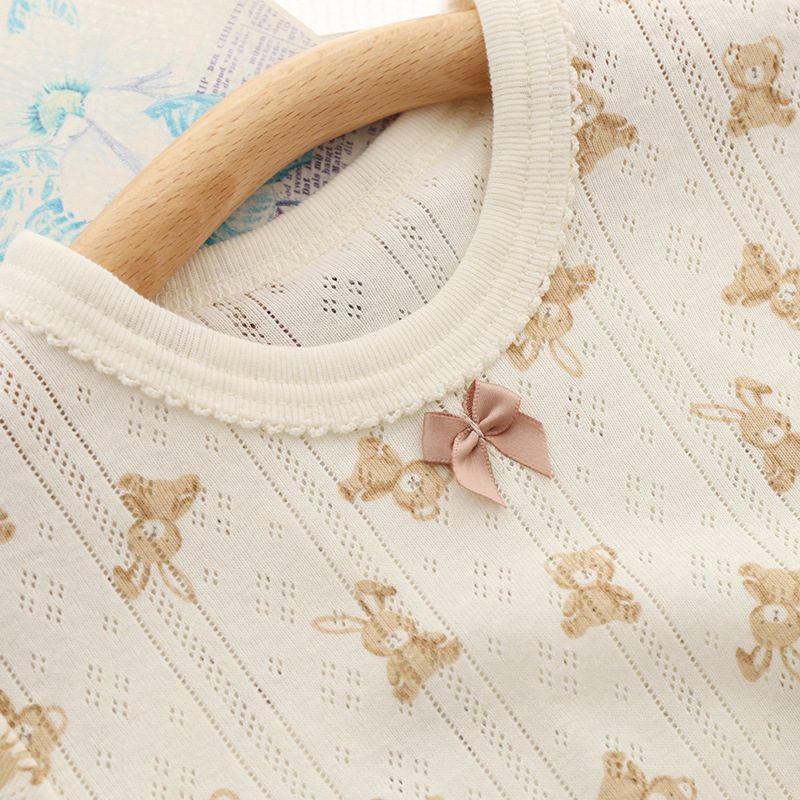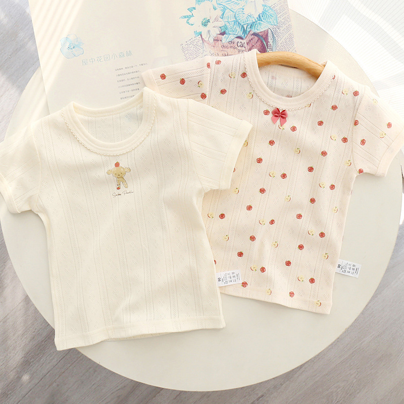 여름 일본식 소녀 반소매 최고 순면 클래스 어린이 아기 메쉬 반팔 티셔츠 가정 착용