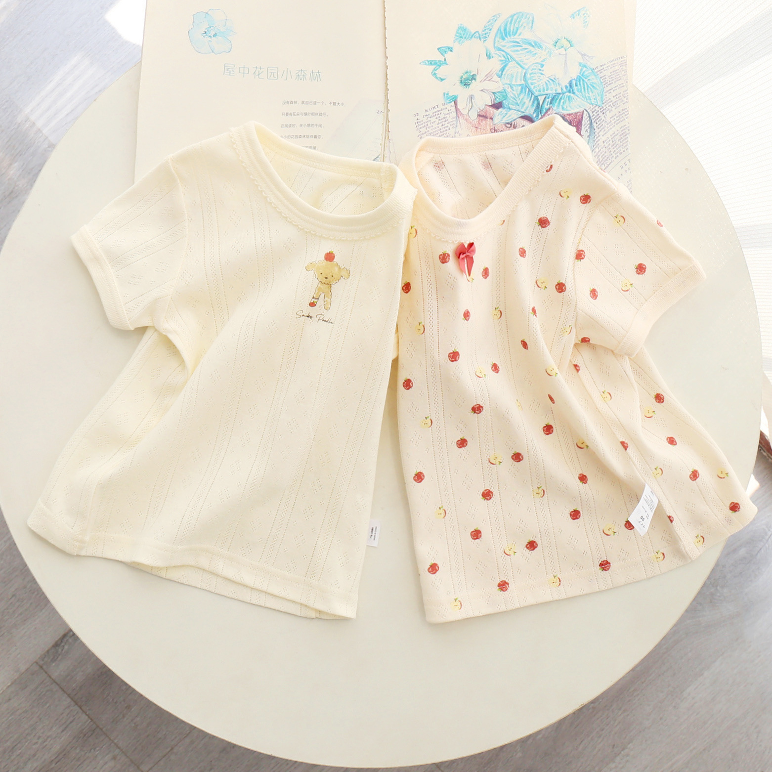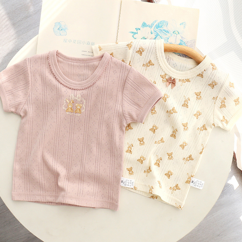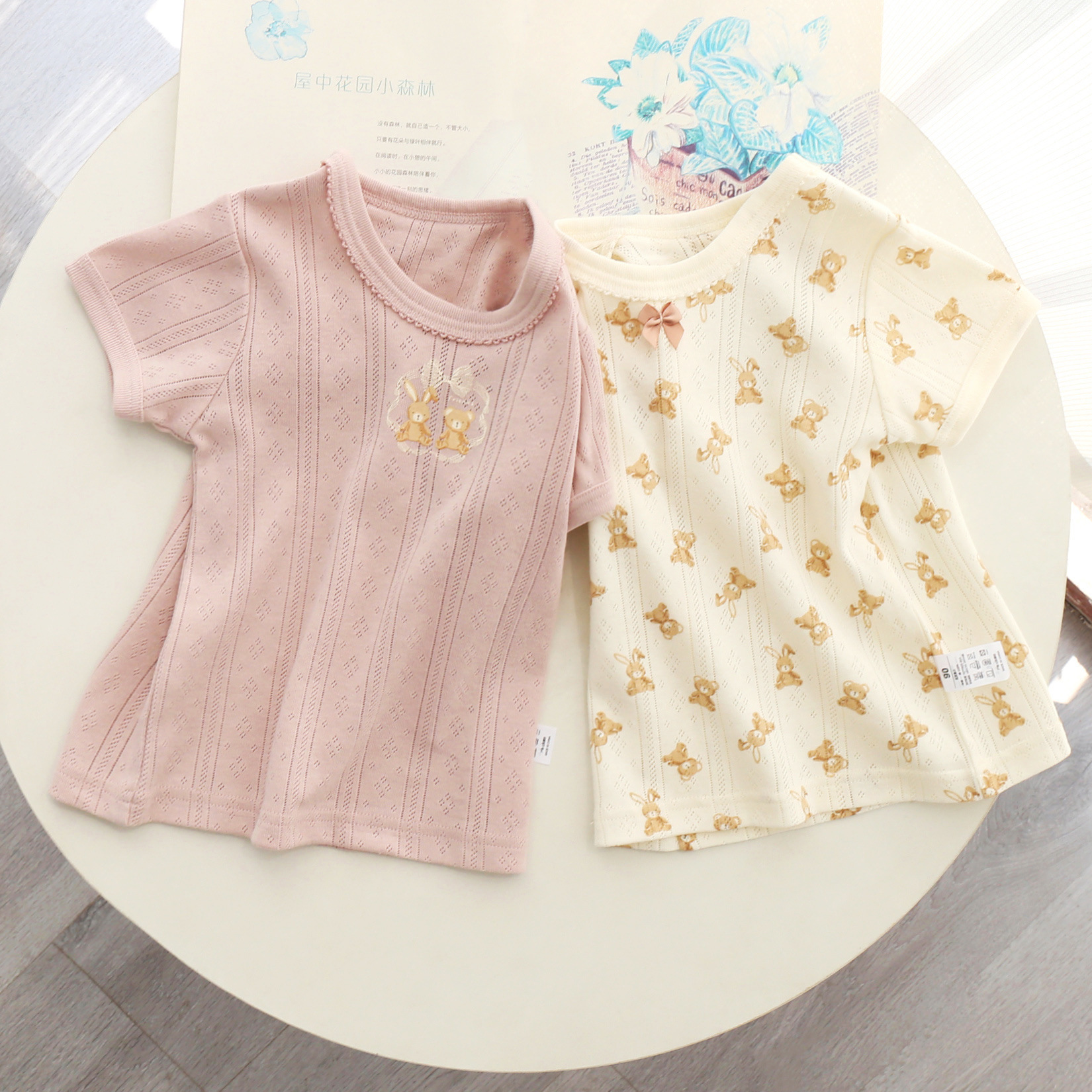 여름 일본식 소녀 반소매 최고 순면 클래스 어린이 아기 메쉬 반팔 티셔츠 가정 착용스토어 가기