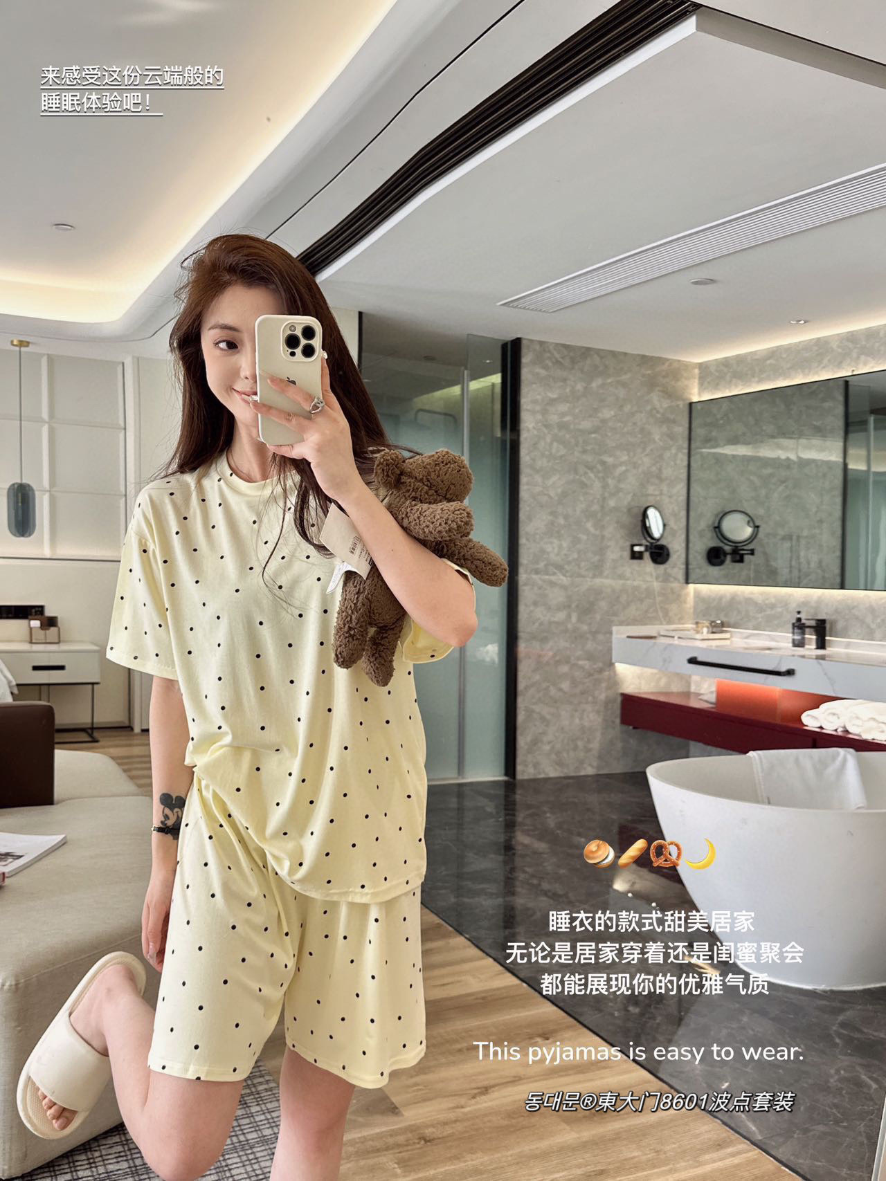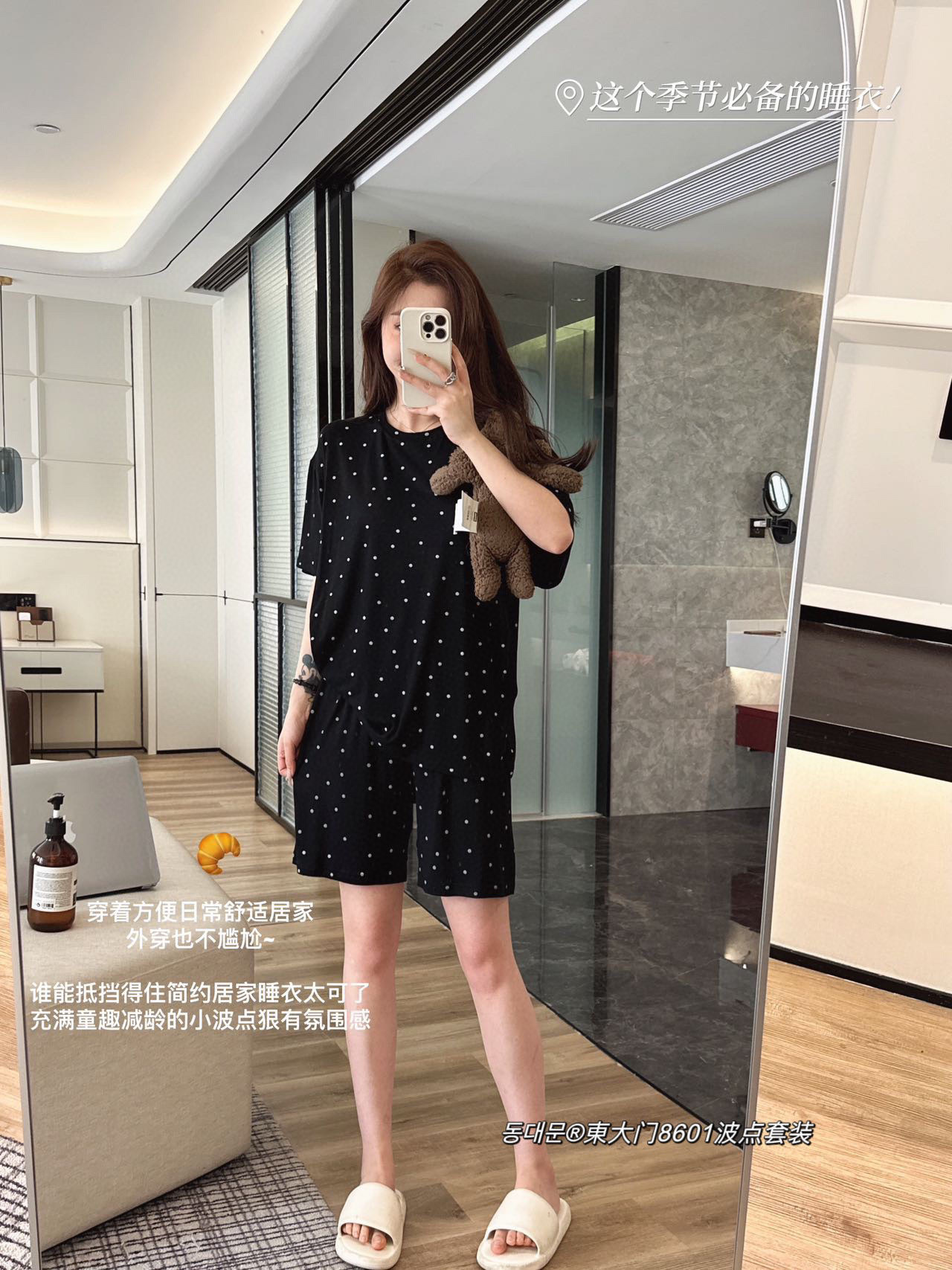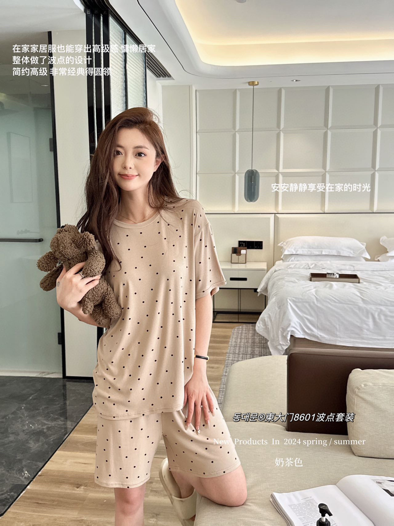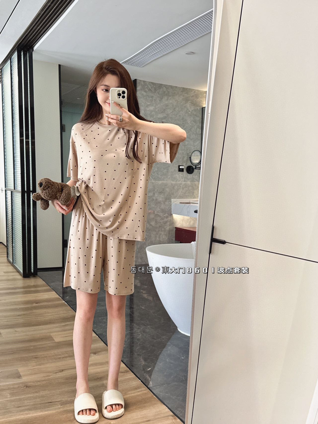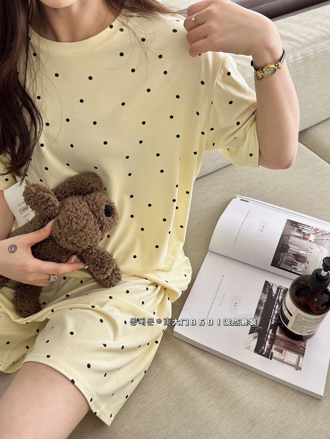 동대문 8601 도트무늬 세트 인스타 스타일 한국풍 여성 잠옷 여름 얇은 반팔 반바지 투피스 홈웨어-스토어 가기