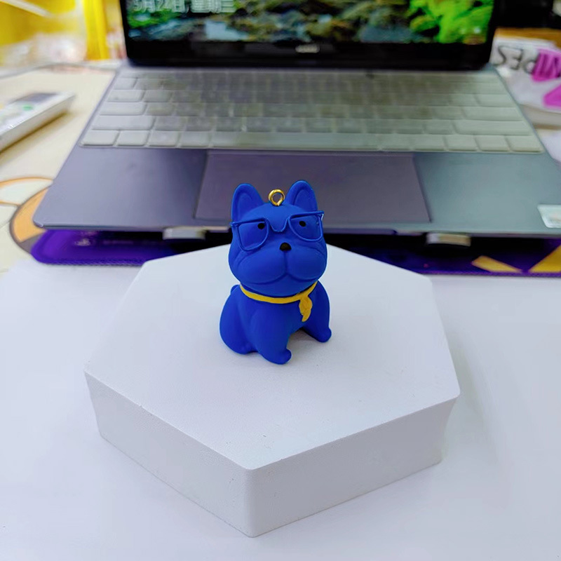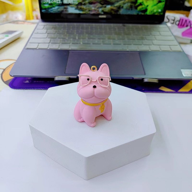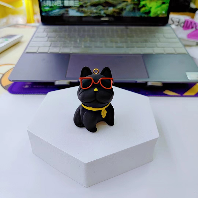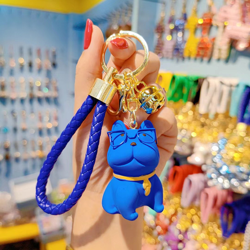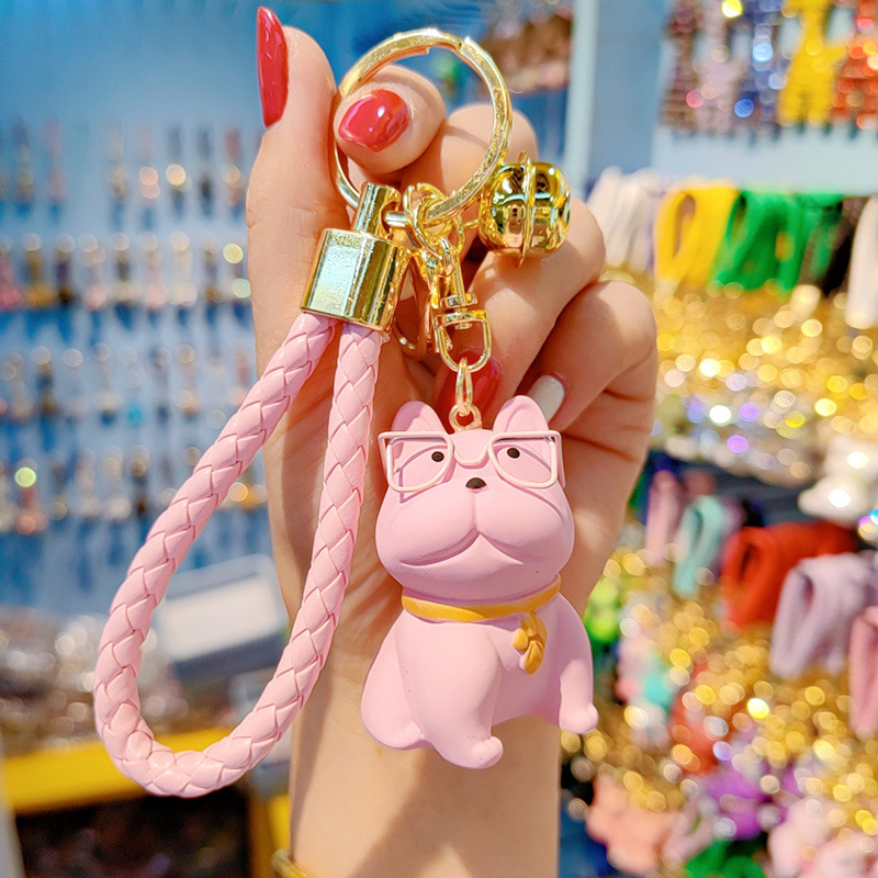만화 수지 안경 싸우는 개 키 체인 여성의 귀여운 창조적 인 개 절묘한 자동차 키 체인 가방 펜던트