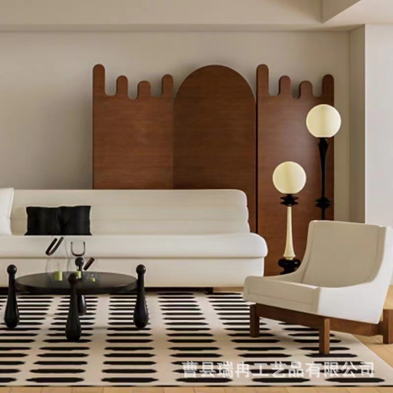 레트로 특수 모양의 나무 스크린 스튜디오 작은 아파트 접이식 파티션 스크린 이동식 단단한 나무 장식 배경 벽
