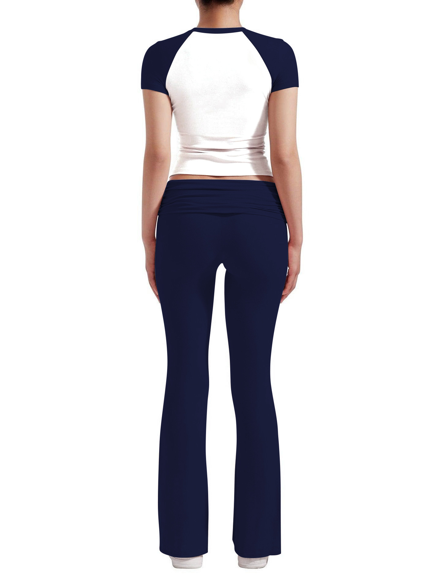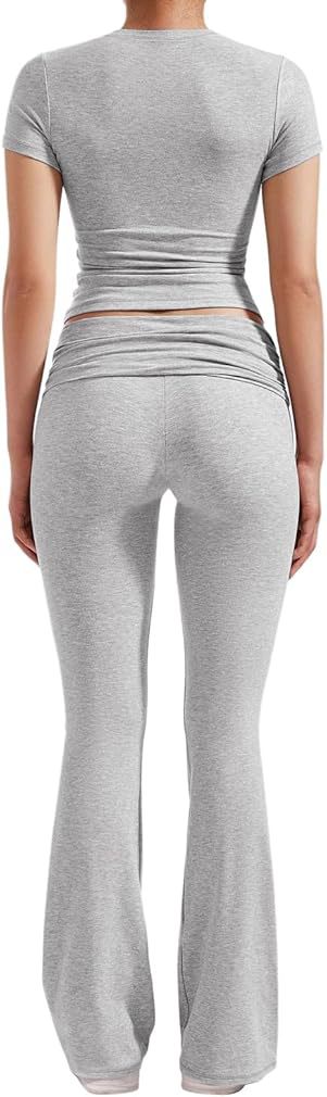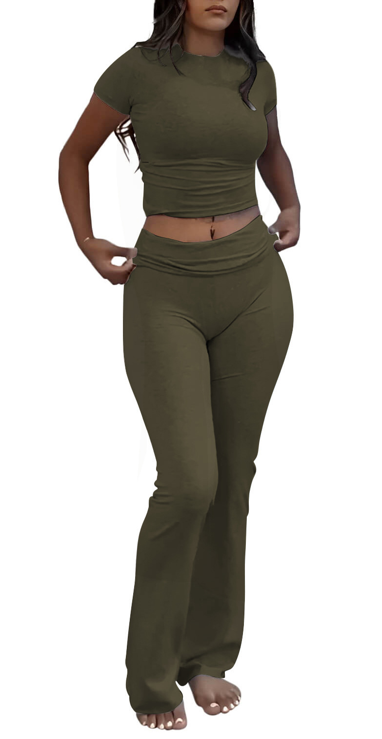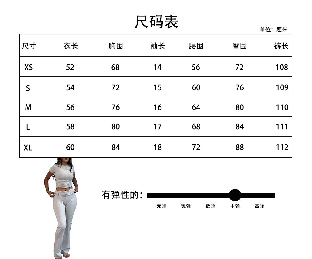 유럽과 미국 국경 간 핫셀러 레저 운동 여성 투피스 크루 넥 티셔츠 로우 웨이스트 플레어 팬츠 스포츠웨어 세트스토어 가기