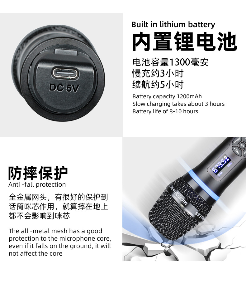 Langsheng N27 무선 마이크 홈 K-노래 성능 호스트 오디오 마이크 블루투스 반사 하이베이스 기능