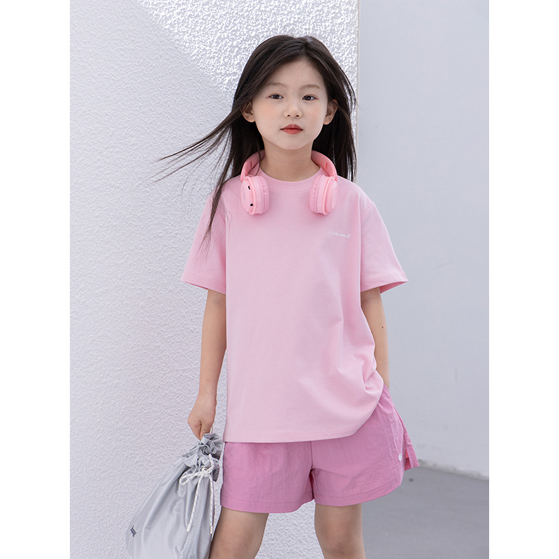 어린이 시원한 편지 반팔 2025 여름 스타일 소녀 경량 속건성 캐주얼 티셔츠 중형 및 대형 아동용 라운드 넥 탑스토어 가기