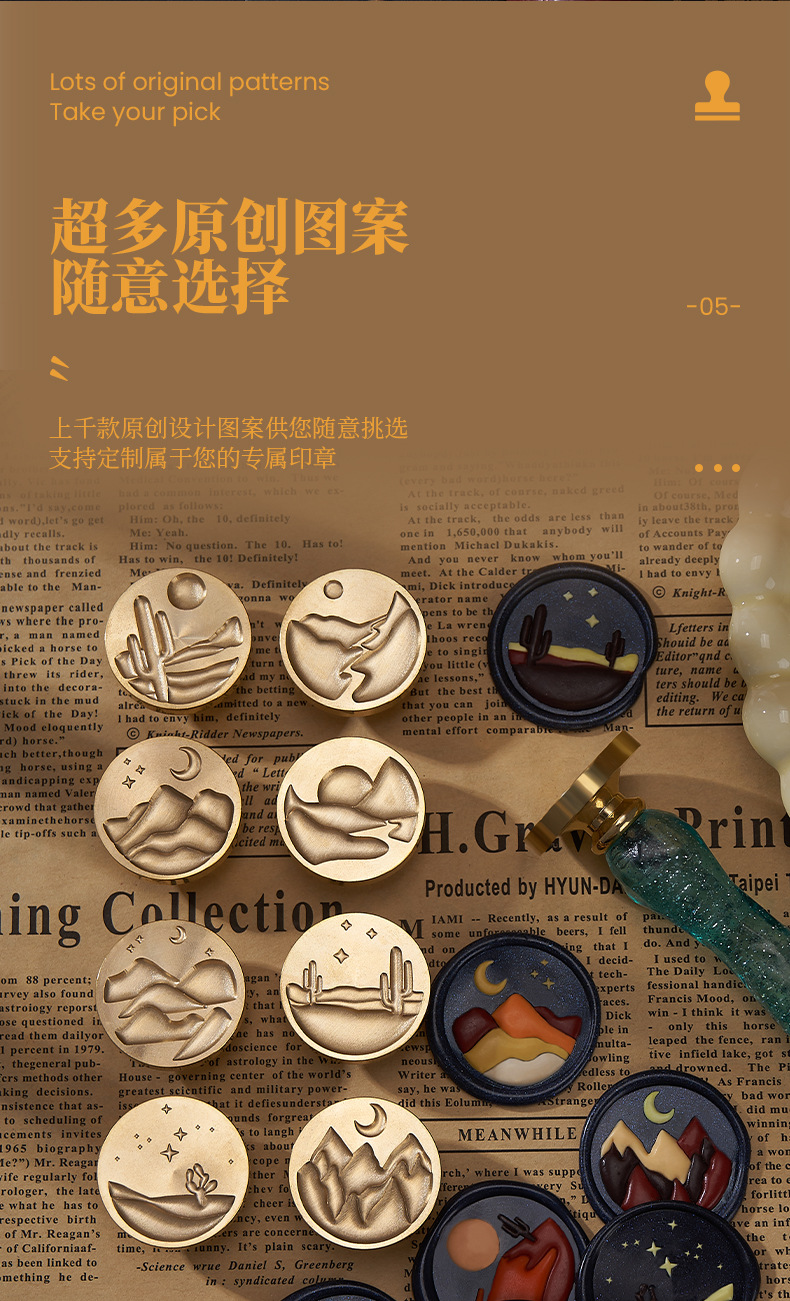 국경을 넘는 신제품 일월별빛 시리즈 엠보싱 시리즈 3D 엠보싱 파이어 페인트 인감 황동 인감 헤드 제조업체 도매