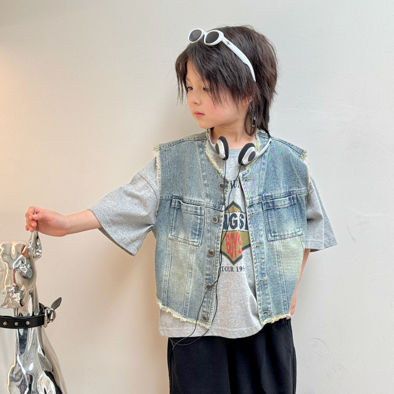 맞춤형 아동복 데님 조끼 봄과 가을 새로운 스타일 아동 한국 스타일 소년 봄 코트 복고풍 오래된 아동상의