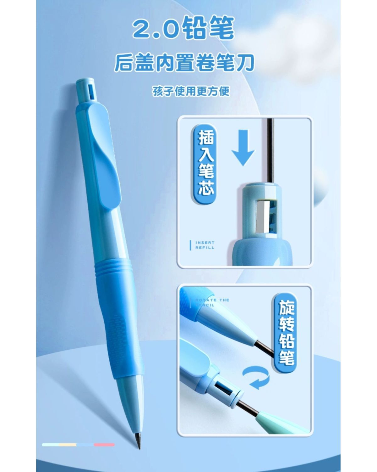 돌고래 긍정적 인 자세 연필 2.0 초등학생을위한 지속적인 핵심 기계 연필 어린이를위한 연필 깎기 자동 연필스토어 가기