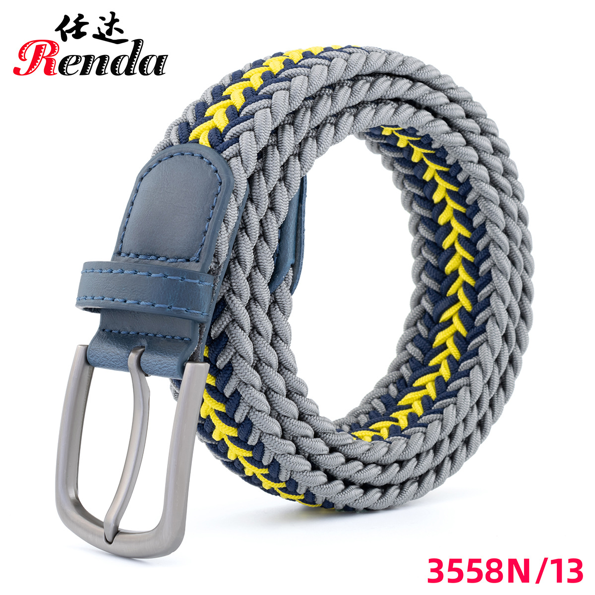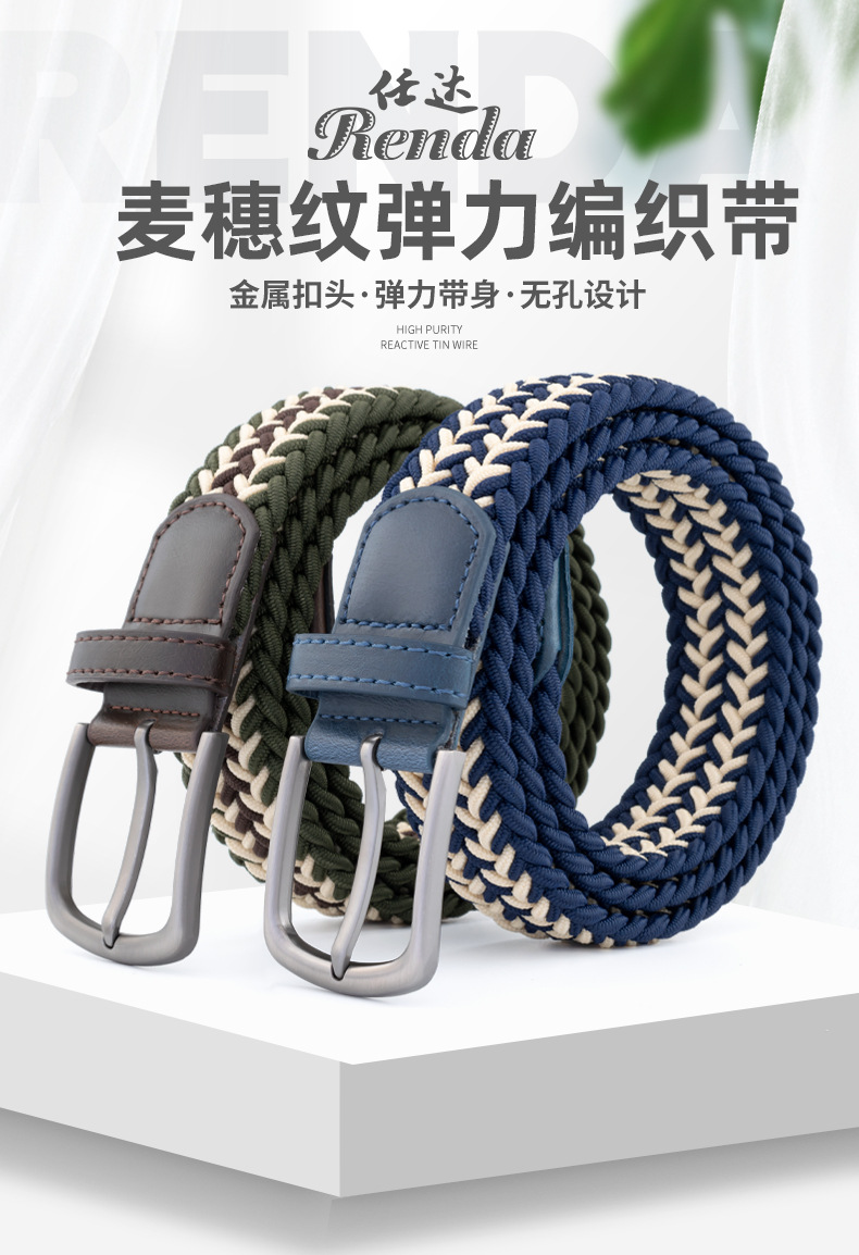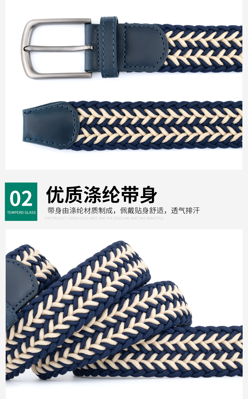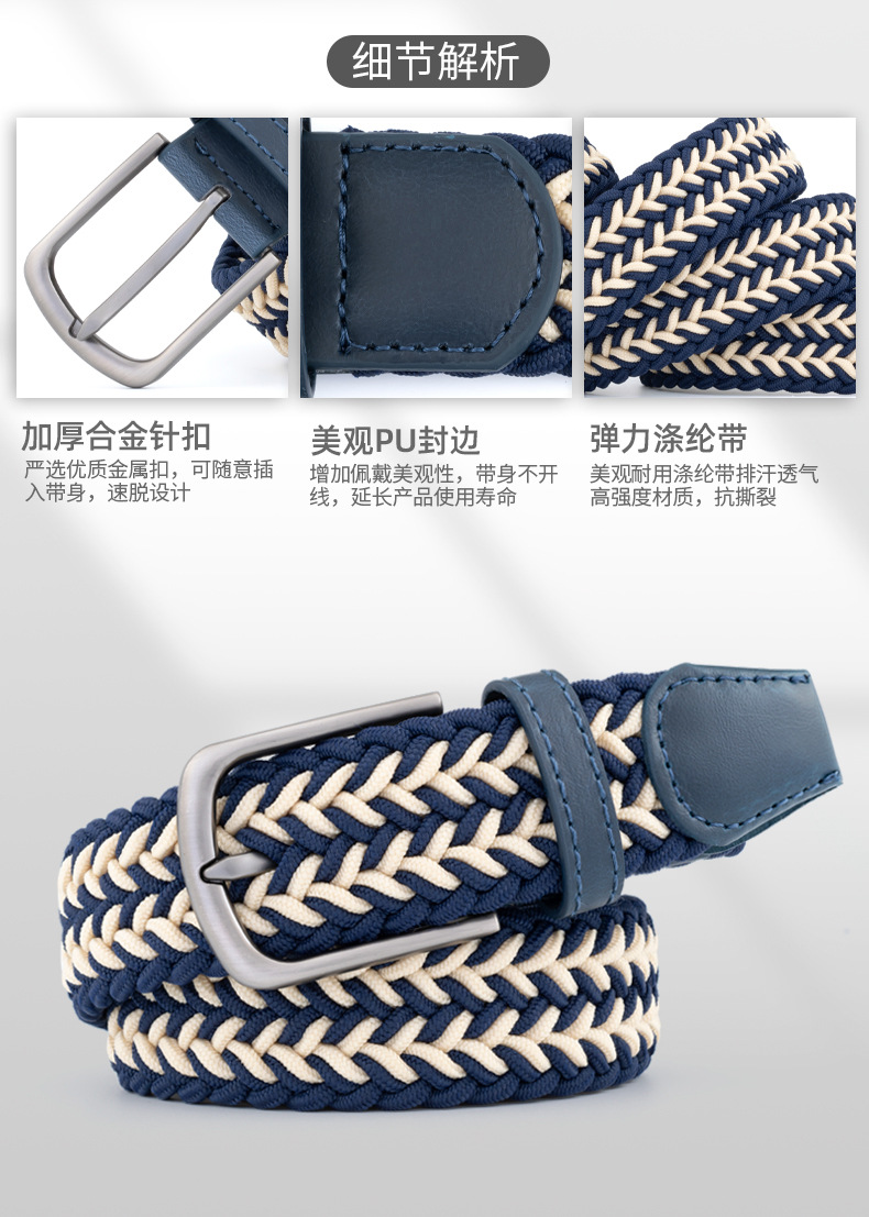 새로운 밀짚 무늬 합금 버클 탄성 폴리에스터 면 벨트 남녀 공용 심플 캐주얼 골프 벨트