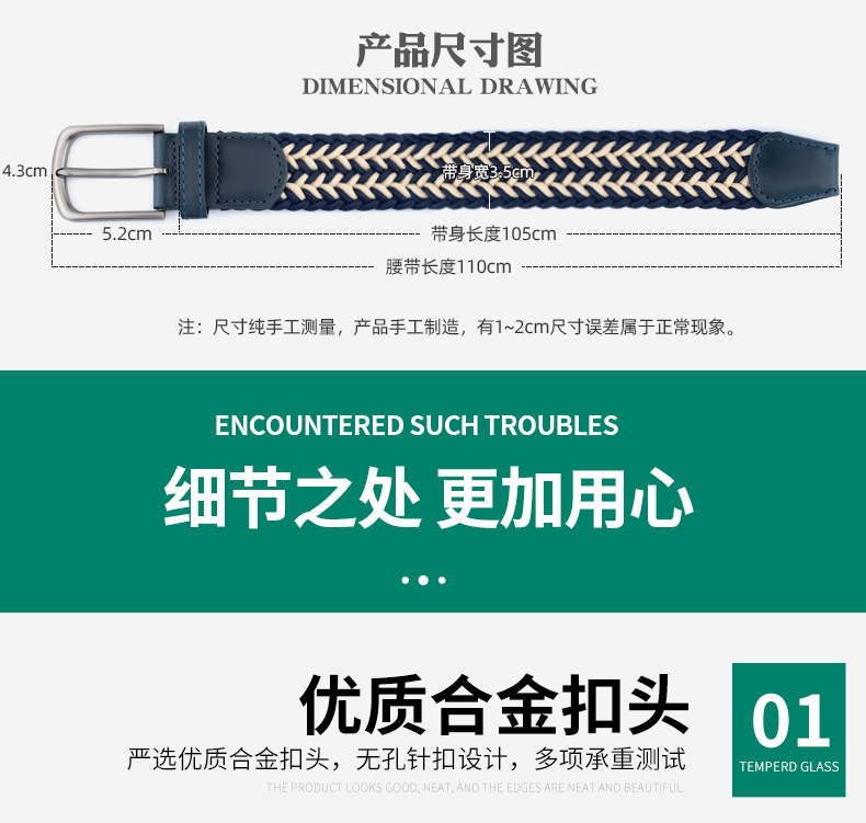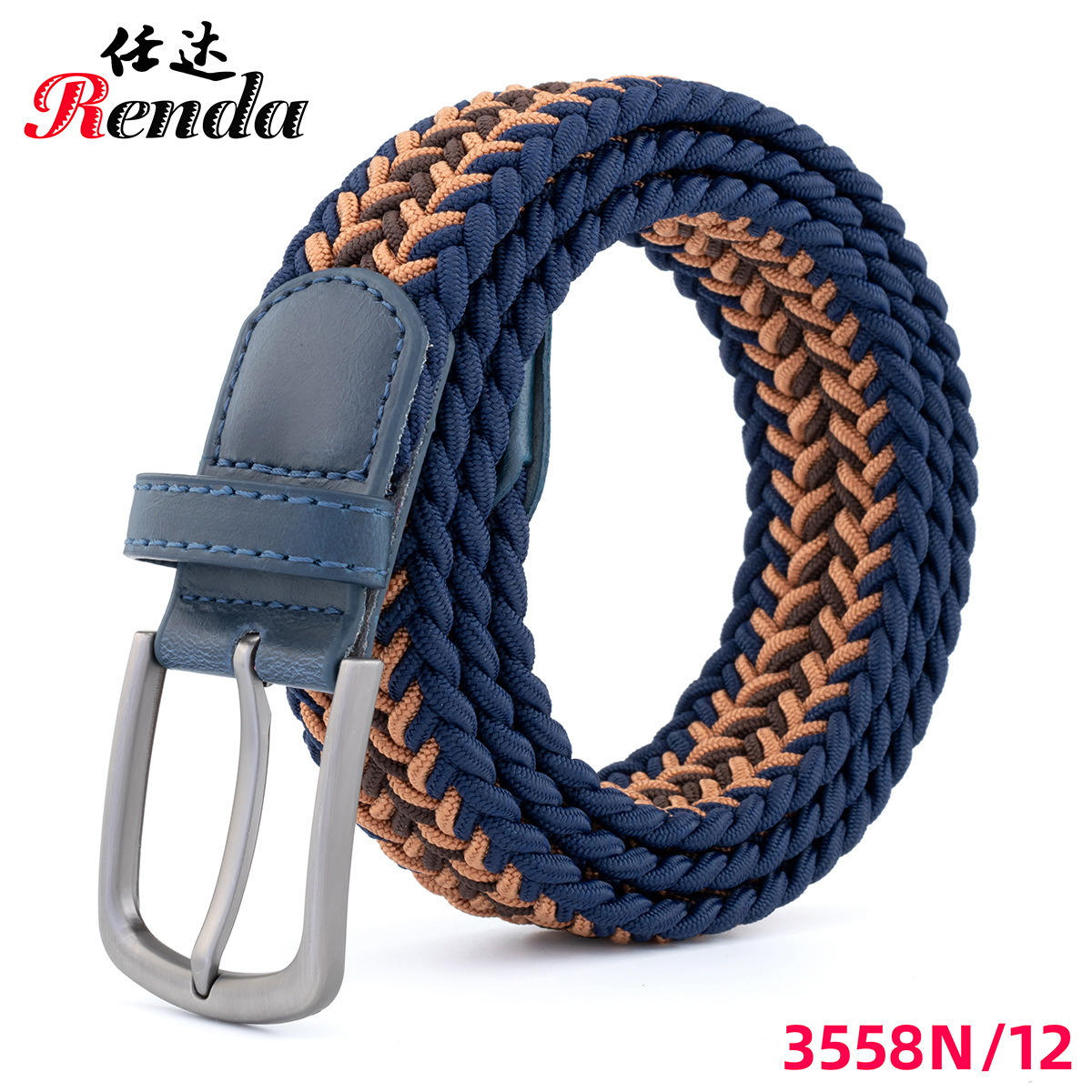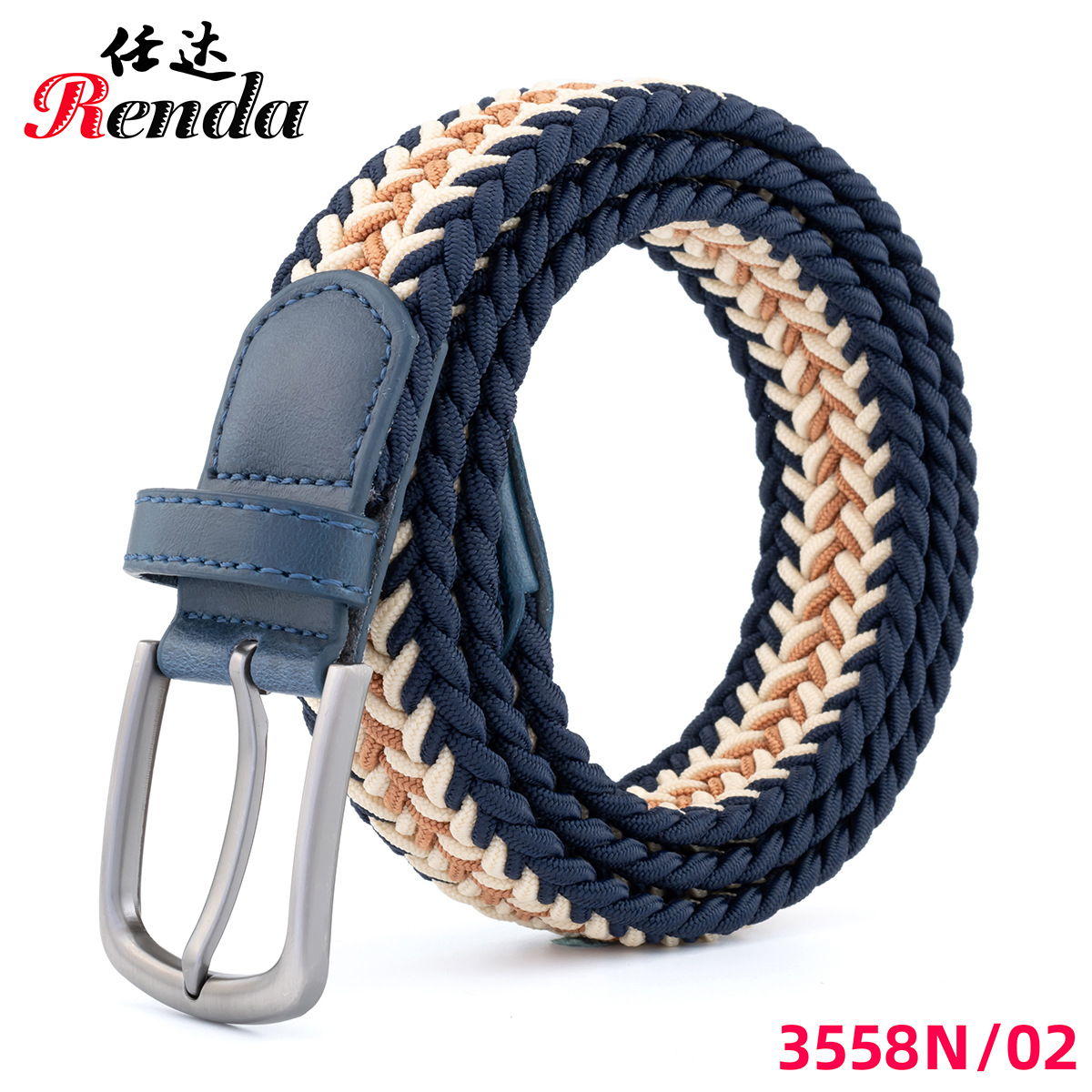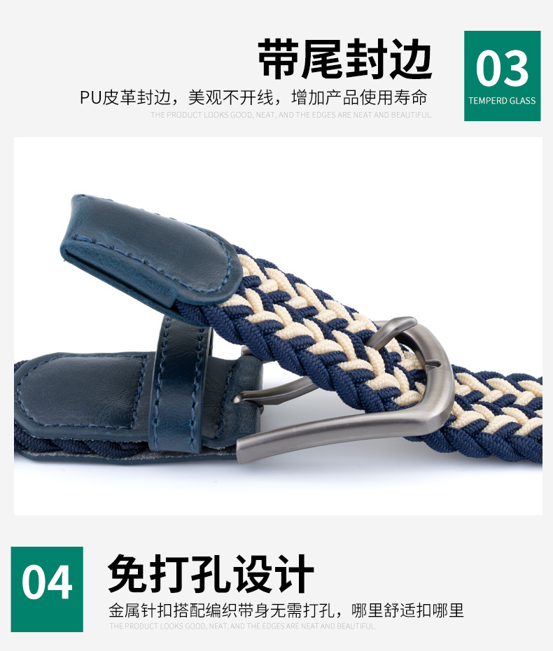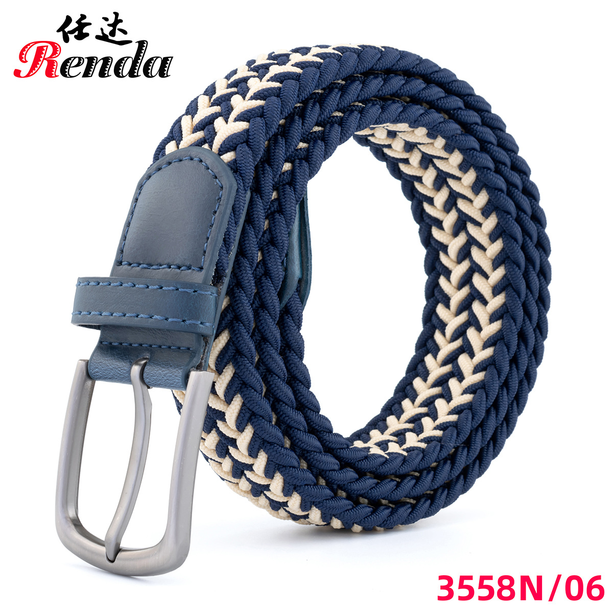 새로운 밀짚 무늬 합금 버클 탄성 폴리에스터 면 벨트 남녀 공용 심플 캐주얼 골프 벨트