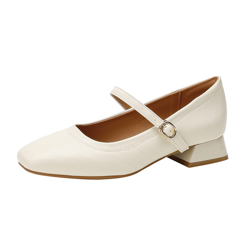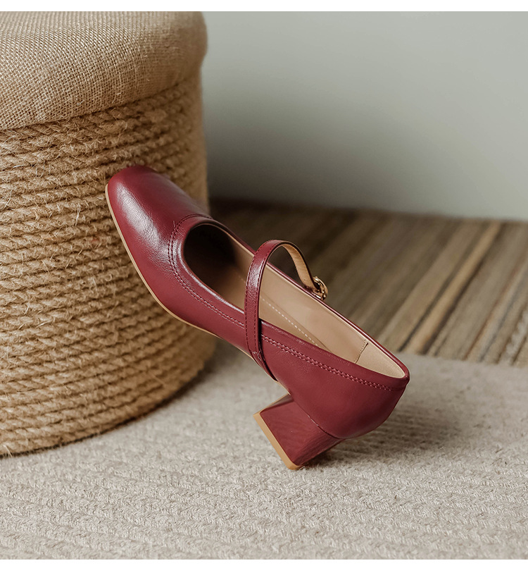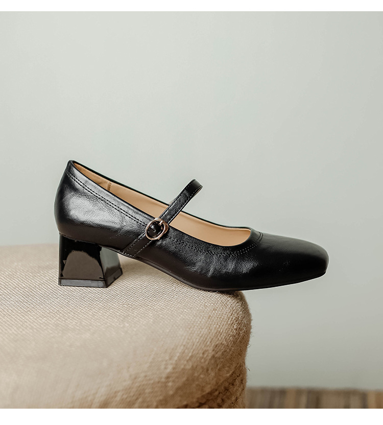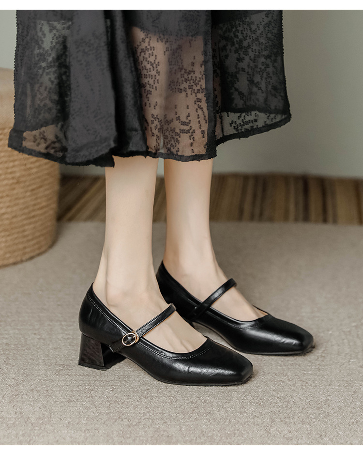 진짜 가죽 싱글 레이어 신발 여성 2024 새로운 봄과 가을 프랑스 미니멀리스트 레트로 스타일 로우 힐 신발 메리 제인 신발 어머니 신발스토어 가기