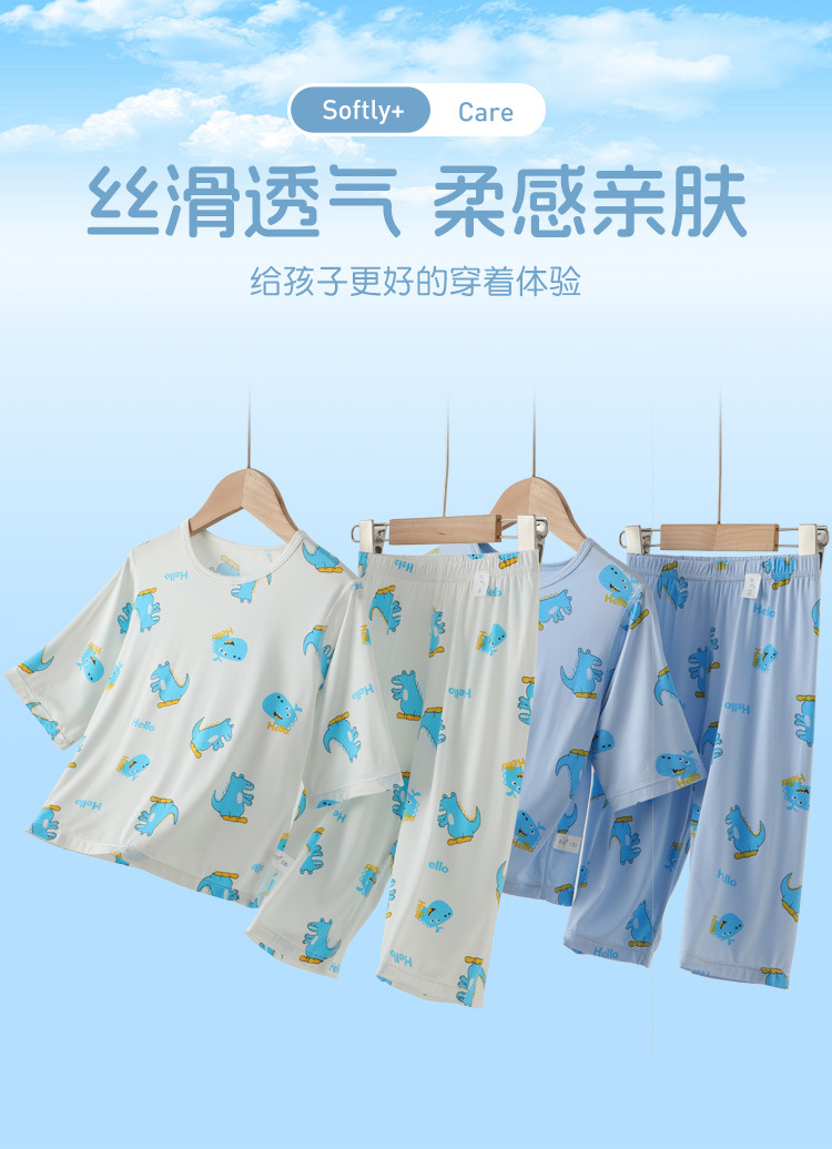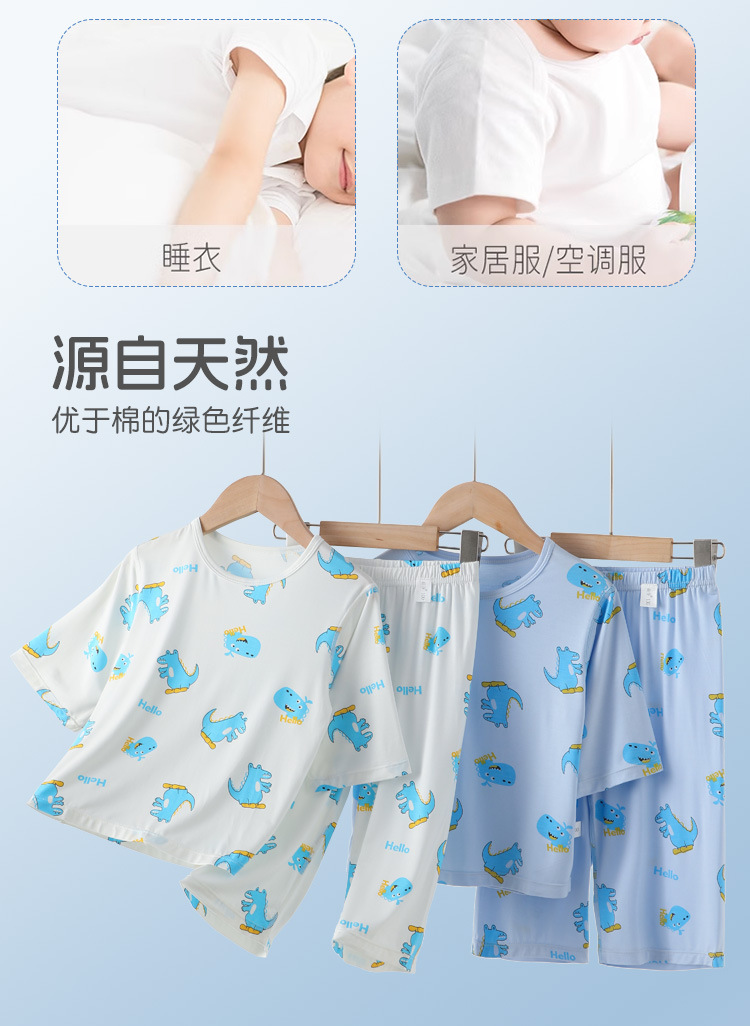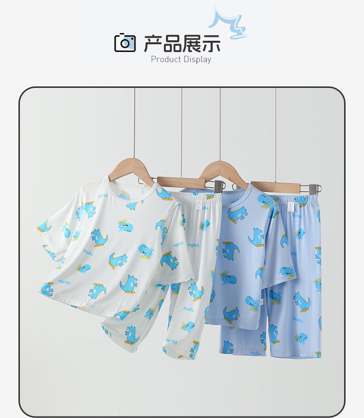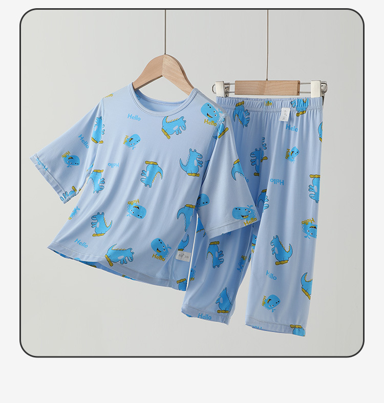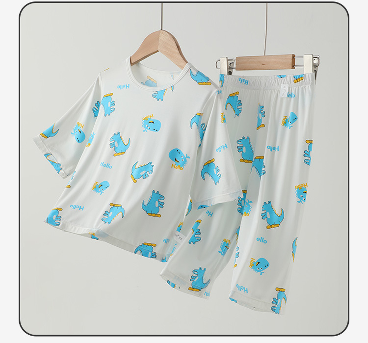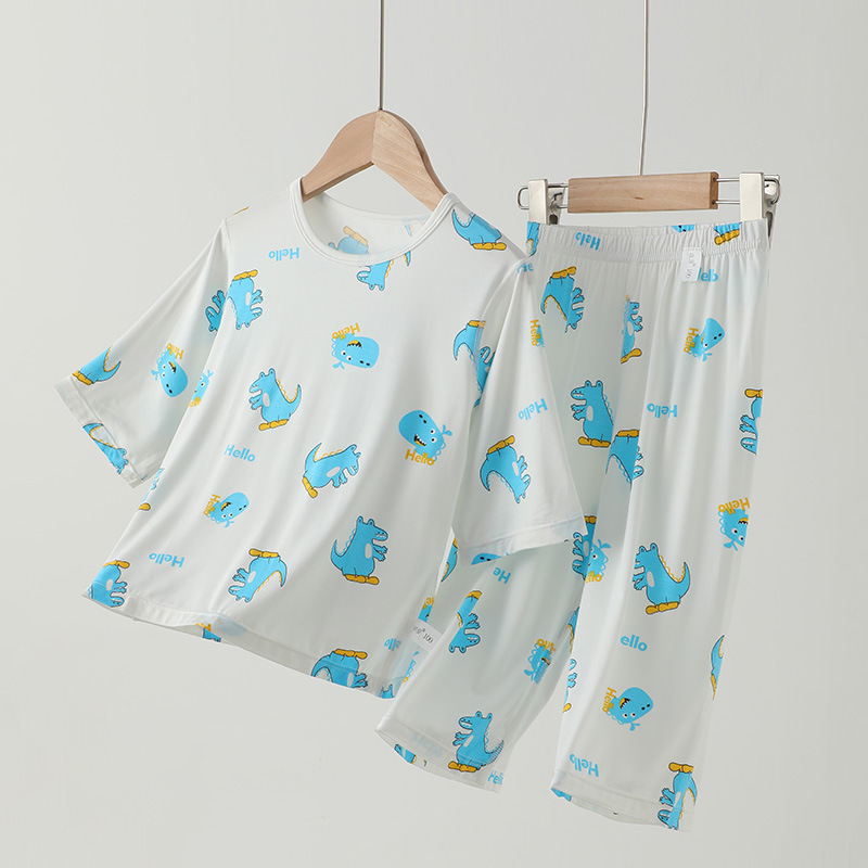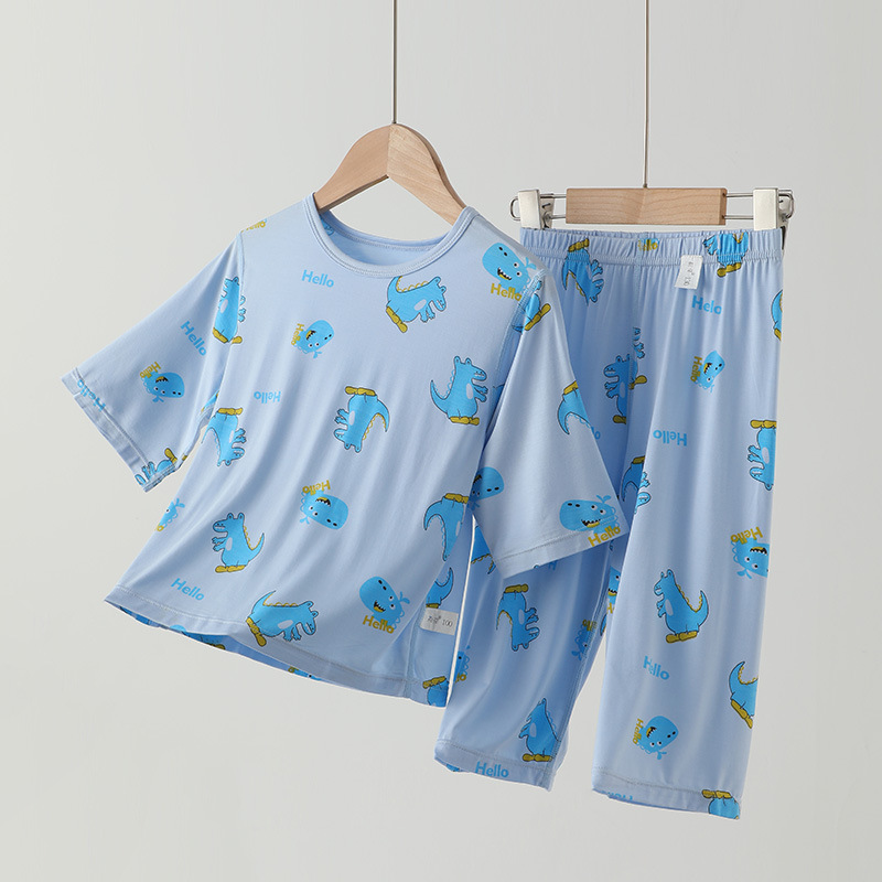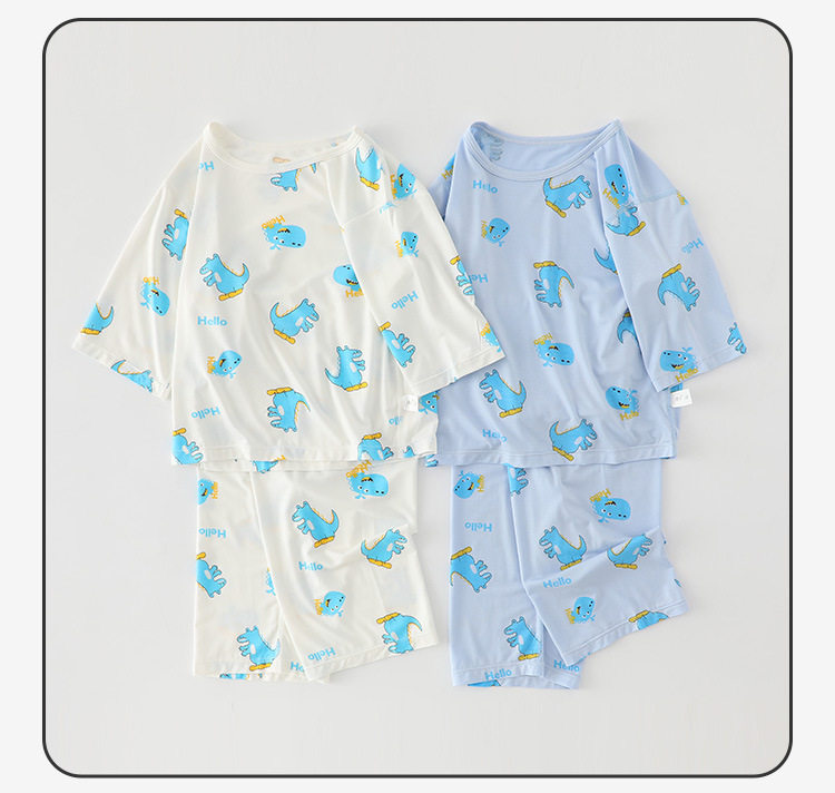 남학생 홈 의류 어린이 공룡 만화 파자마 세븐 슬리브 에어컨 의류 남녀 홈 2 피스 세트