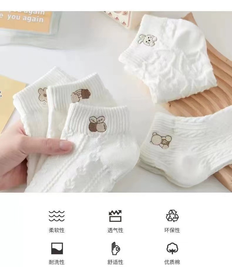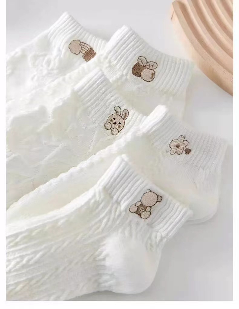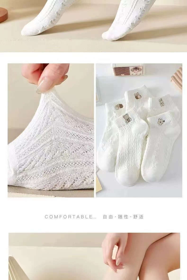 【신상품】여성용 흰색 얇은 여름 양말, 귀여운 일본풍 학생용 짧은 양말