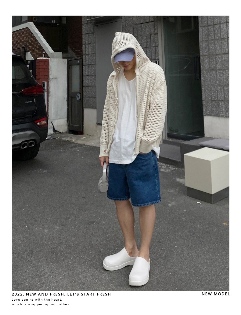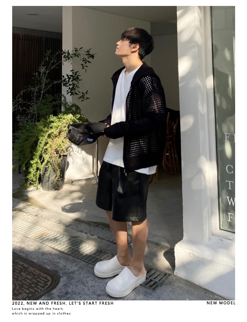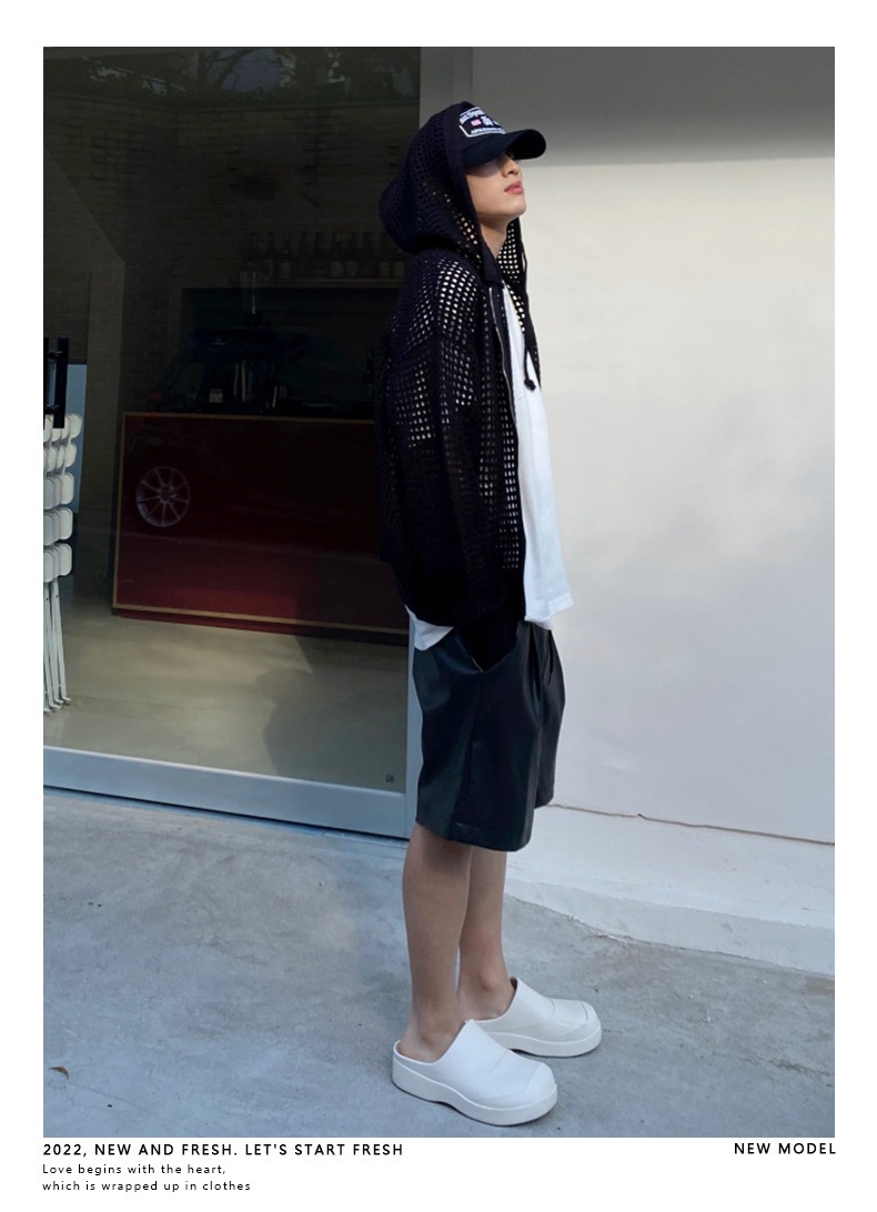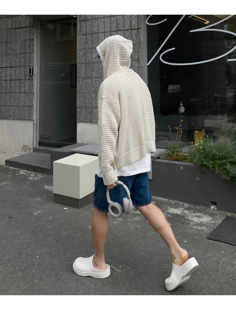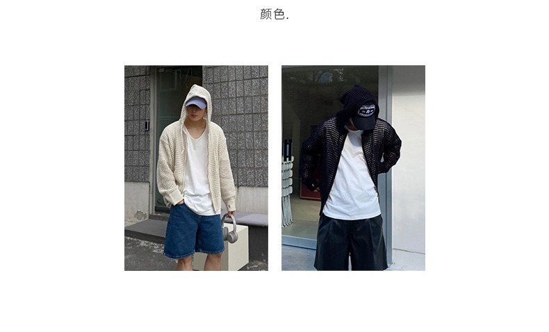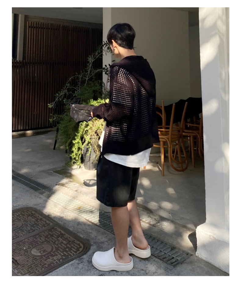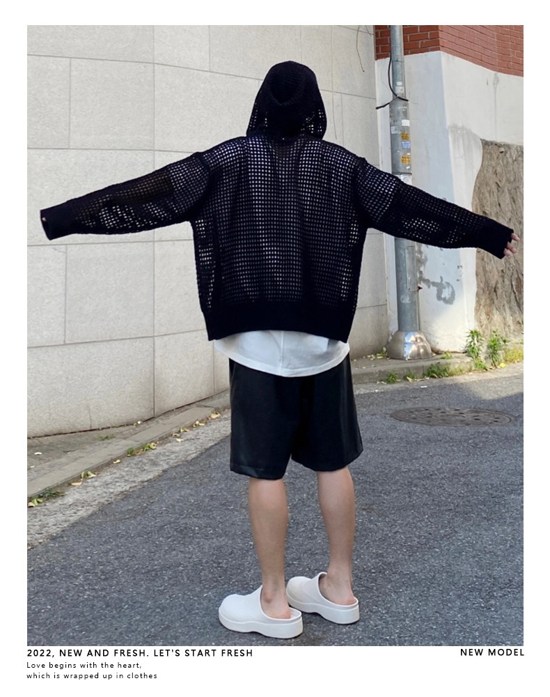 하이 엔드 카디건 스웨터 남자 Ins 하이 스트리트 후드 할로우 니트 스웨터 여름 얇은 선 스크린 커플 코트스토어 가기