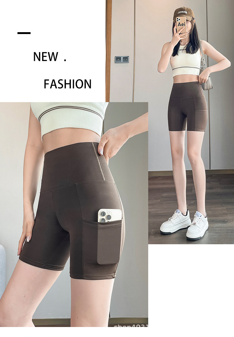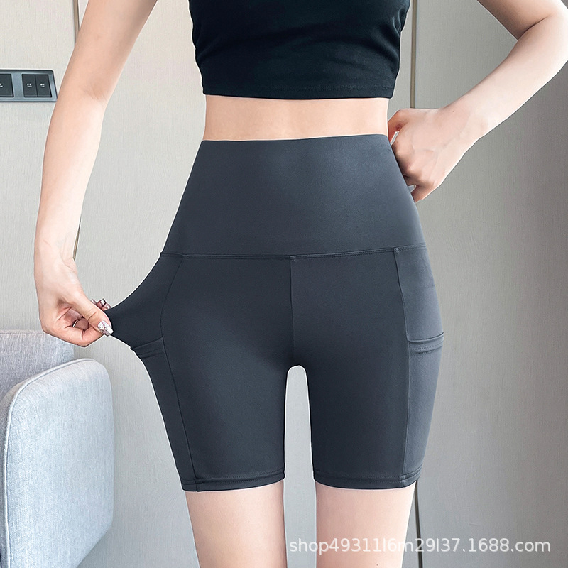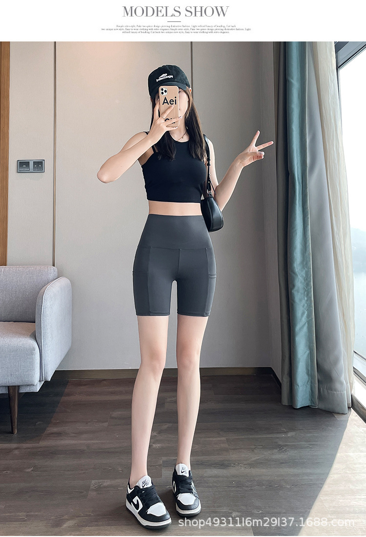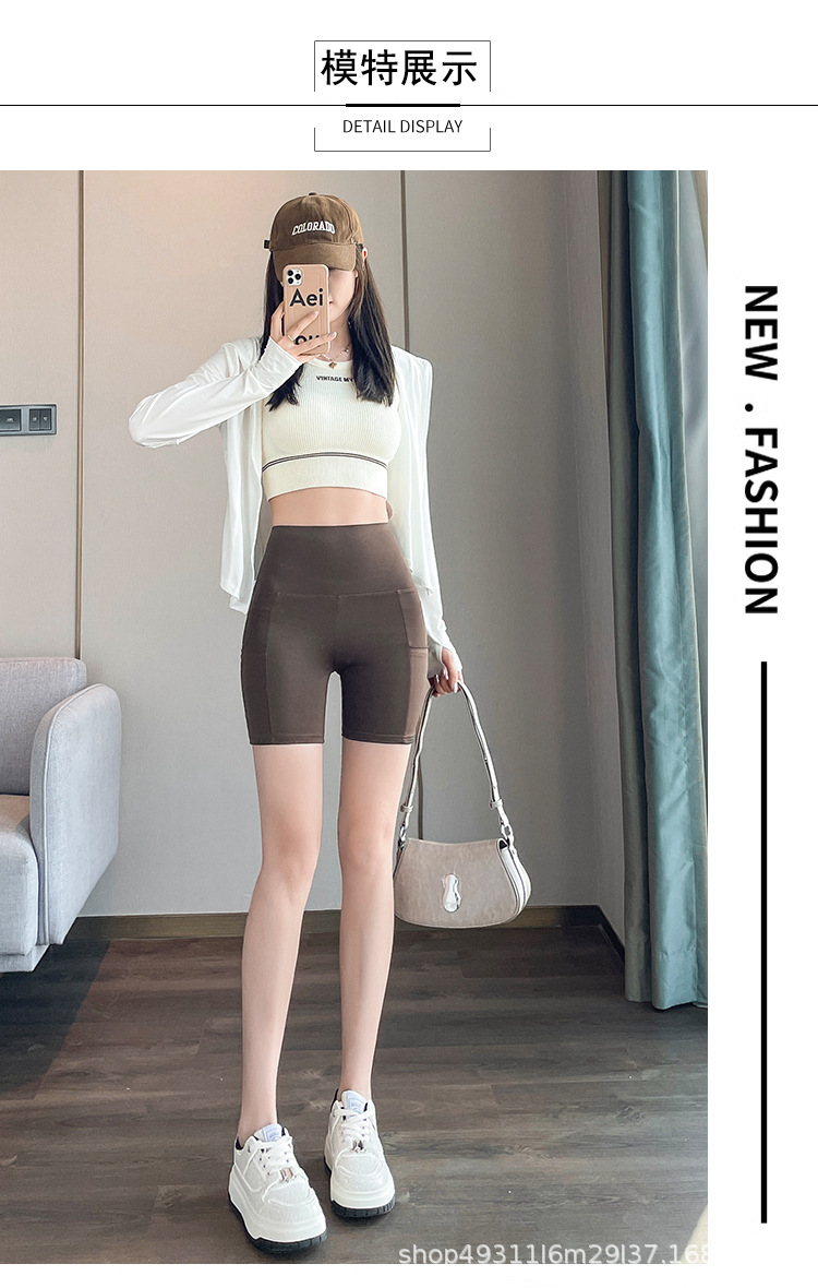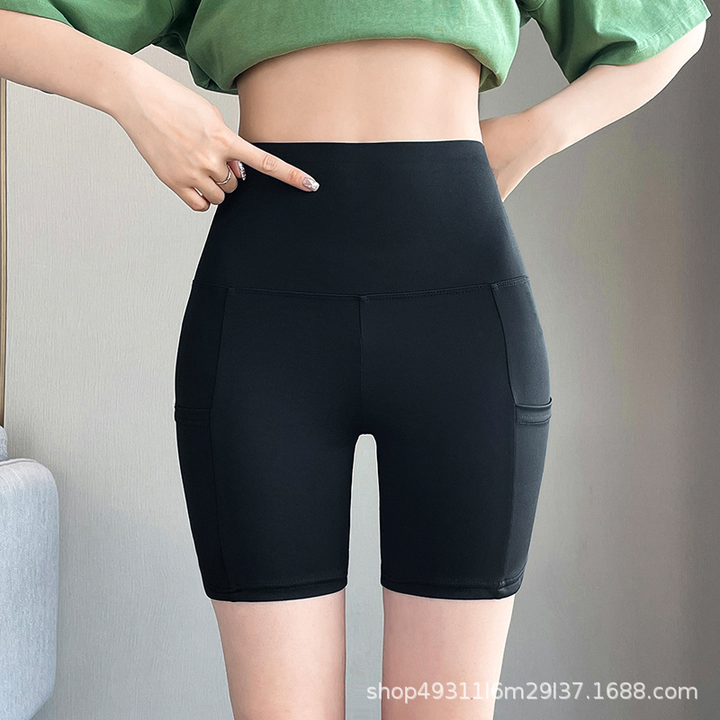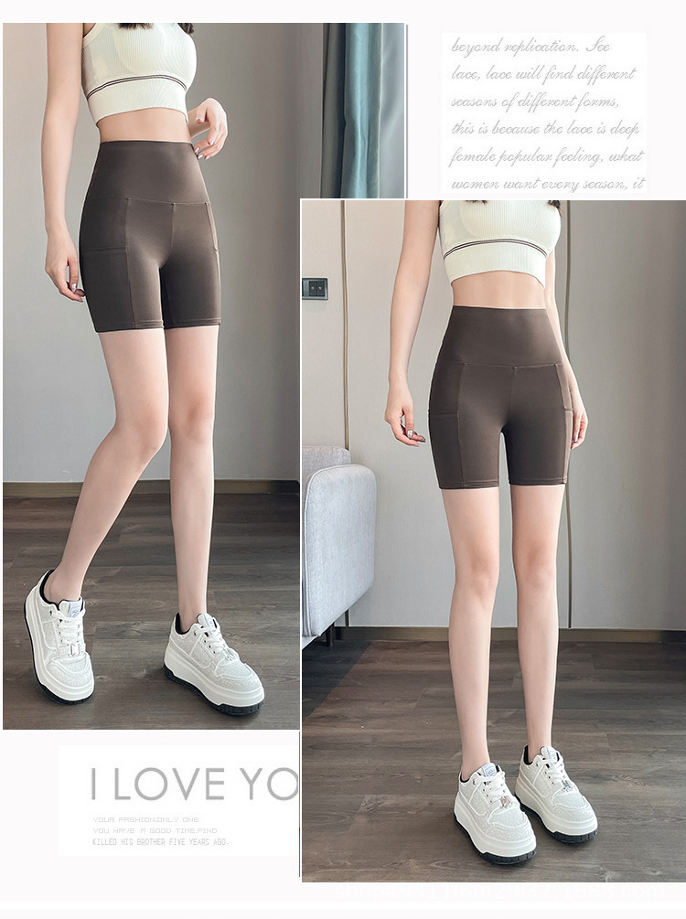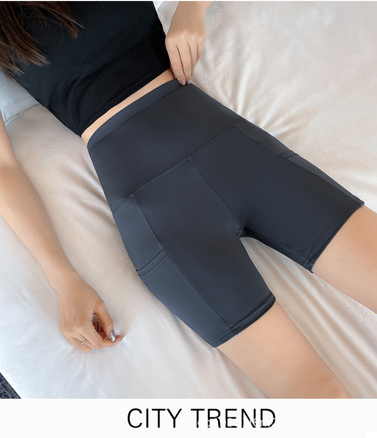 여성용 외부 착용 용 포켓이있는 3 점 상어 바지 여름 얇은 안티 라이트 안전 바지 여성용 슬림 핏 요가베이스 반바지