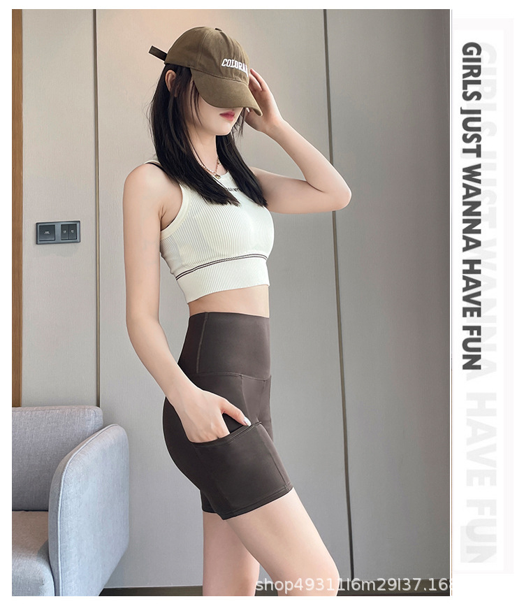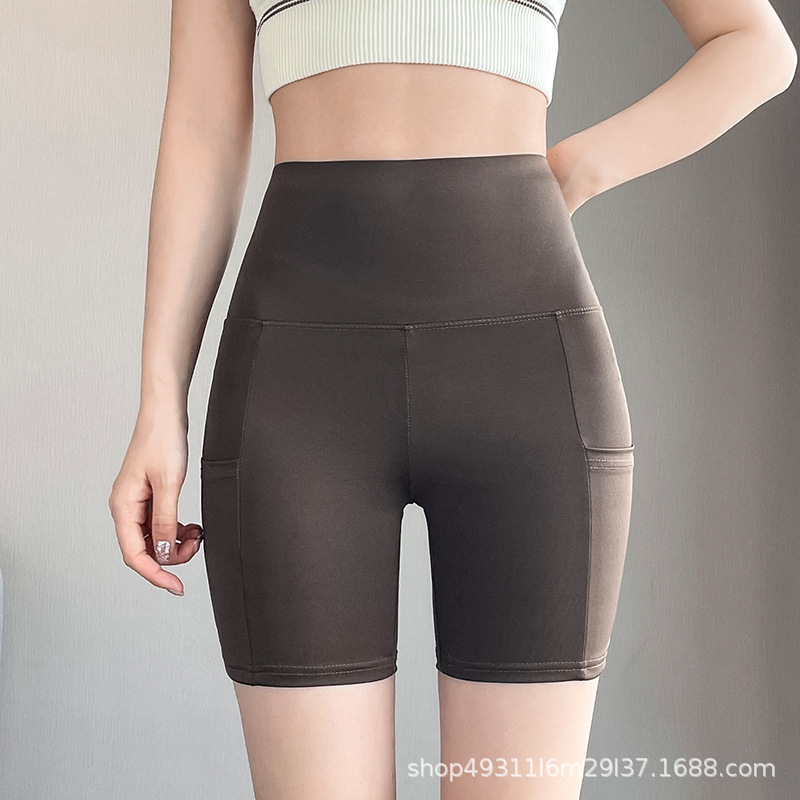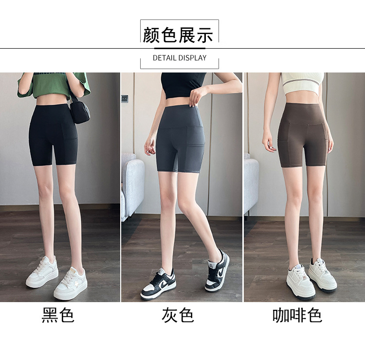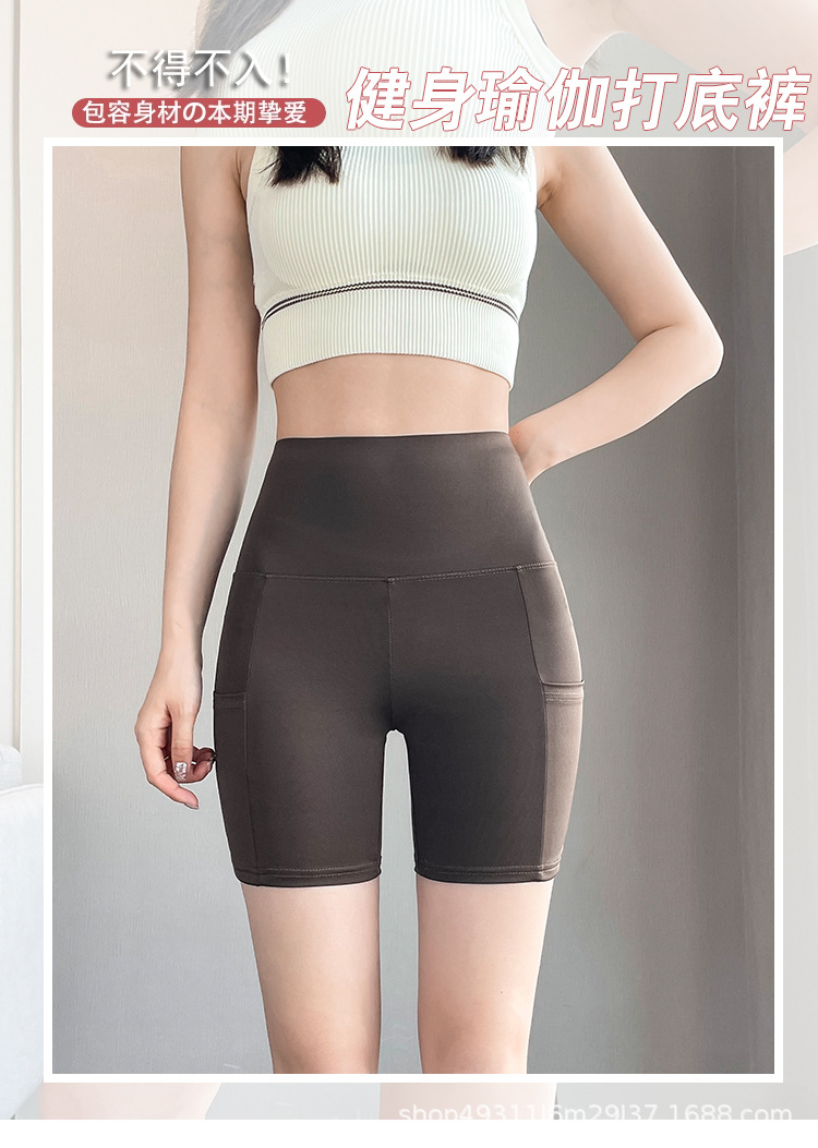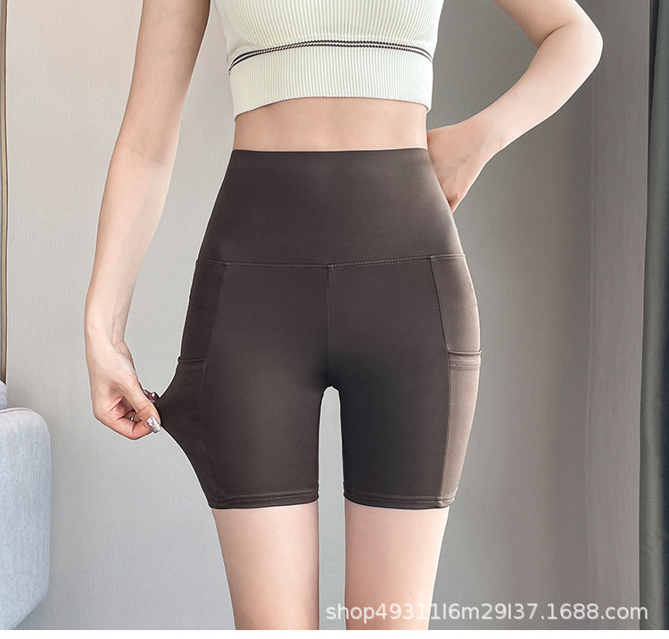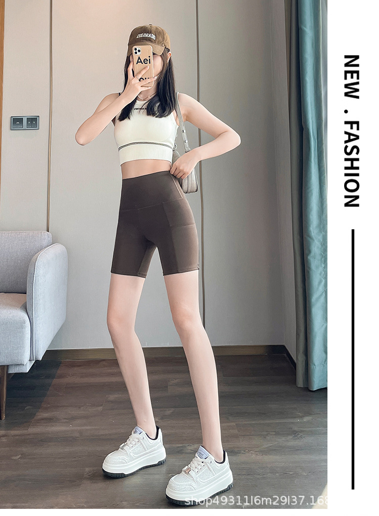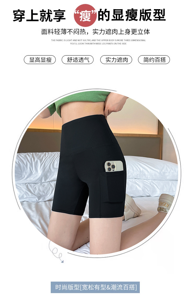 여성용 외부 착용 용 포켓이있는 3 점 상어 바지 여름 얇은 안티 라이트 안전 바지 여성용 슬림 핏 요가베이스 반바지