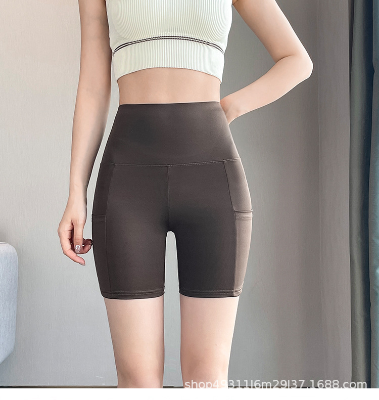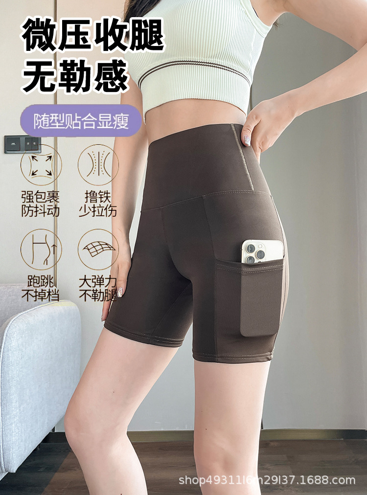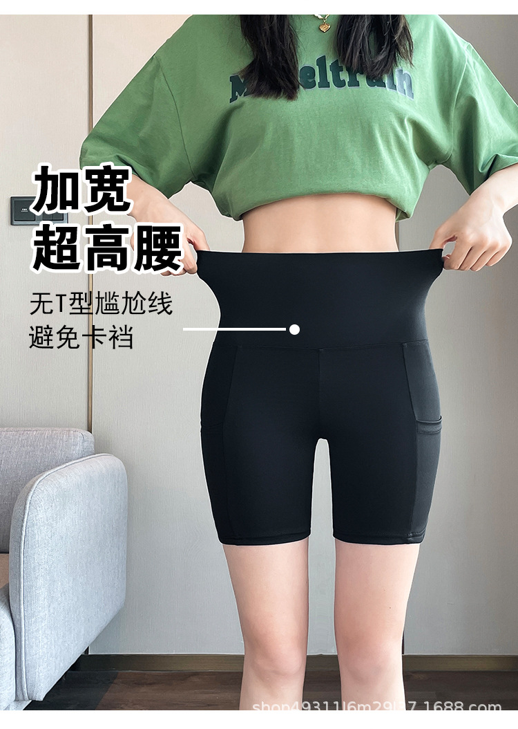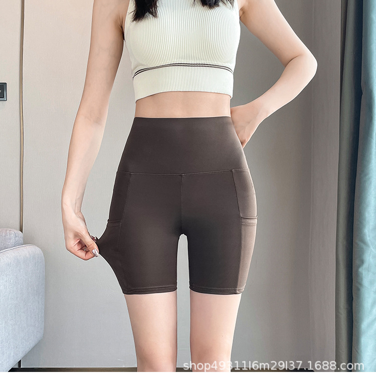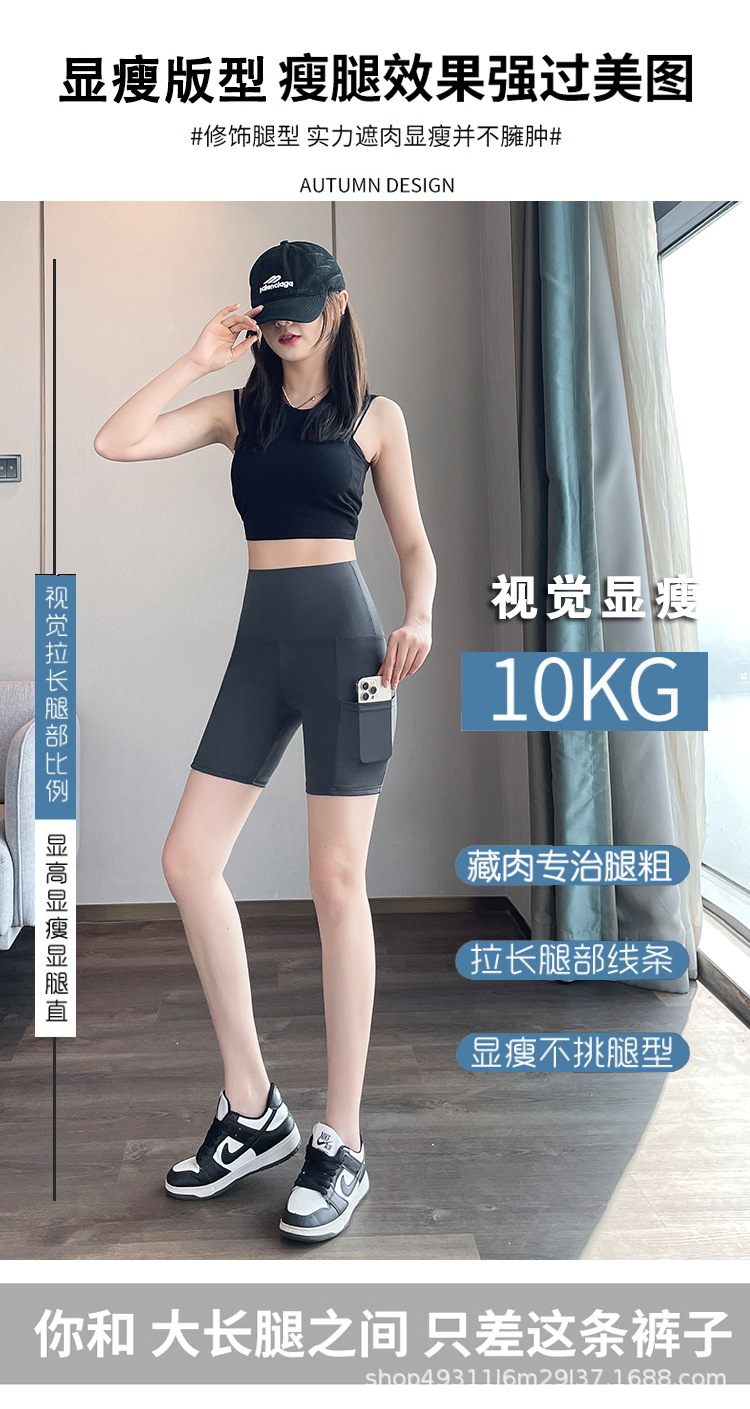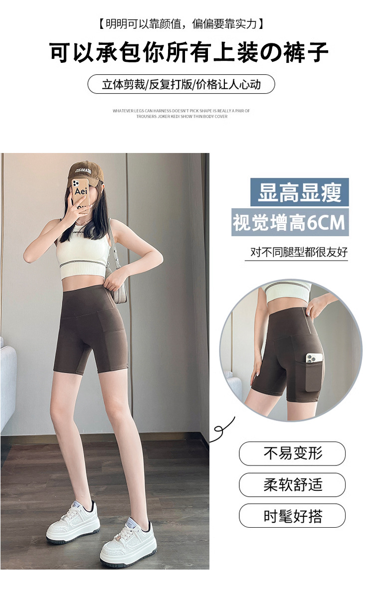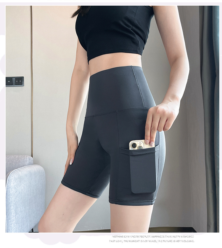 여성용 외부 착용 용 포켓이있는 3 점 상어 바지 여름 얇은 안티 라이트 안전 바지 여성용 슬림 핏 요가베이스 반바지