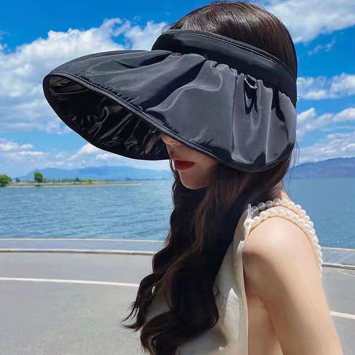 UPF50 차양 모자 야외 큰 Eave 선 스크린 모자 얼굴 덮음 빈 최고 UV 자외선 차양 태양 모자 증가 태양 보호