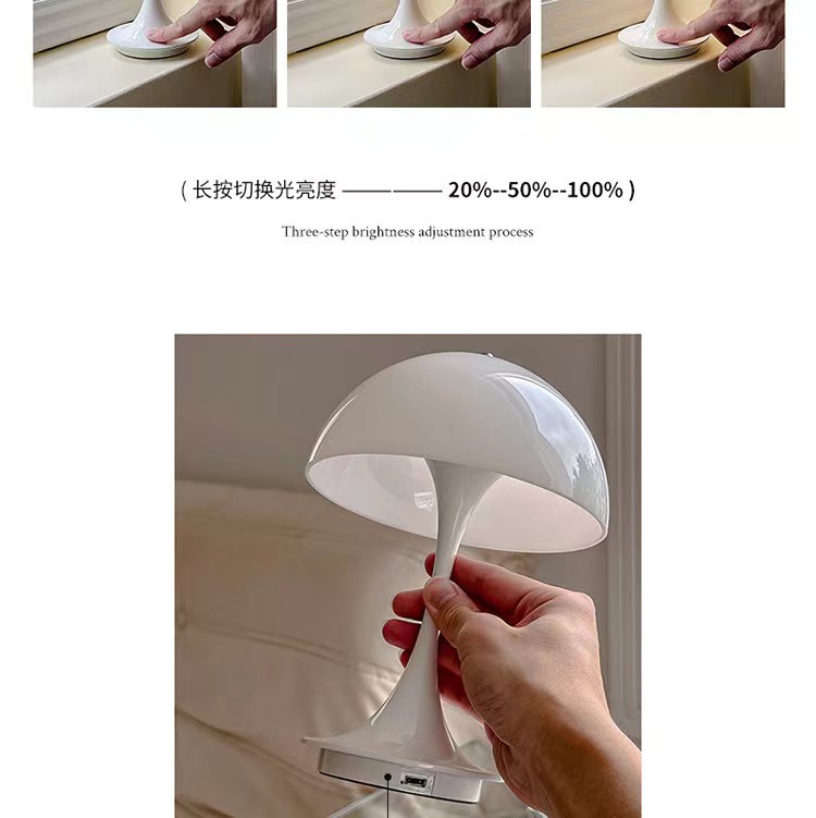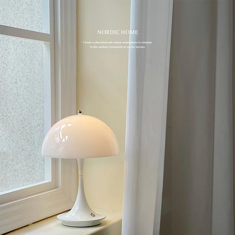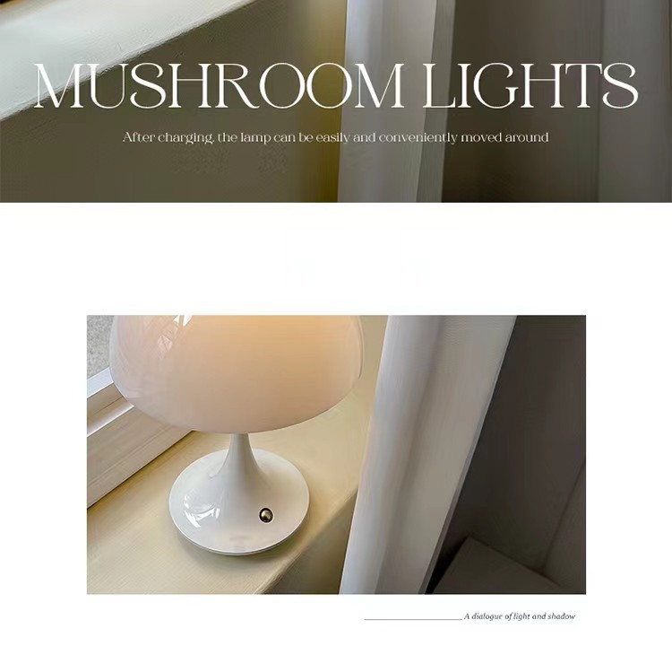 丹麦蘑菇台灯北欧现代高级感氛围灯网红ins充电卧室床头小花苞灯