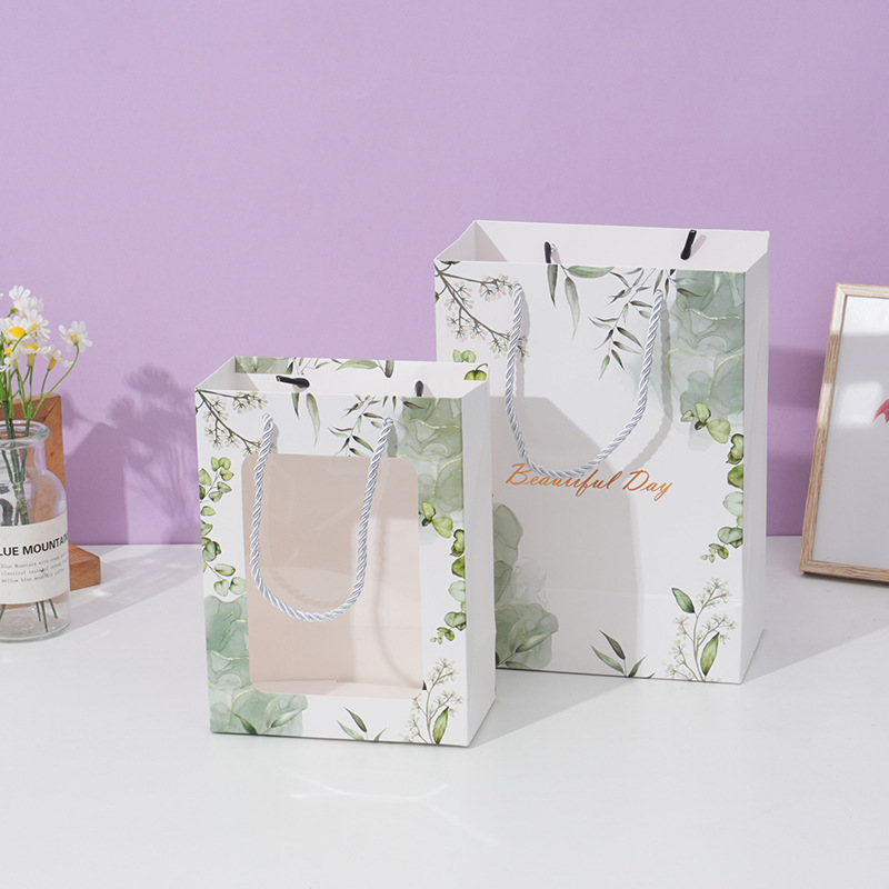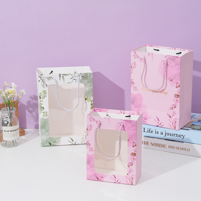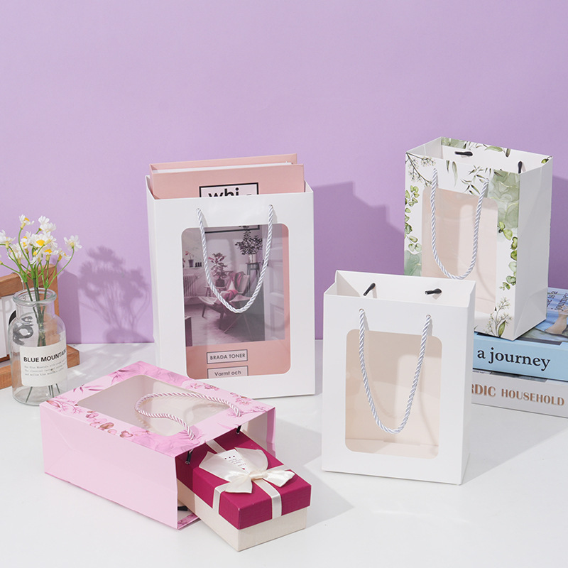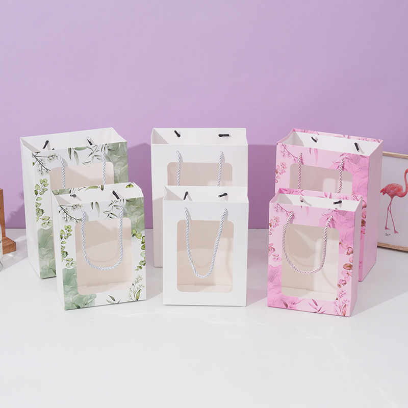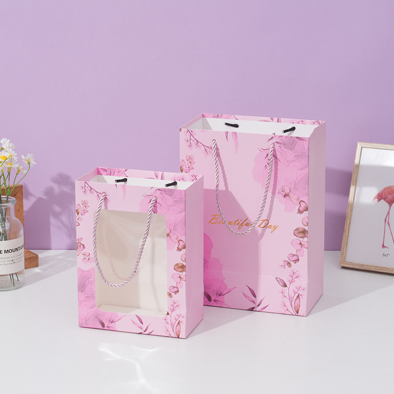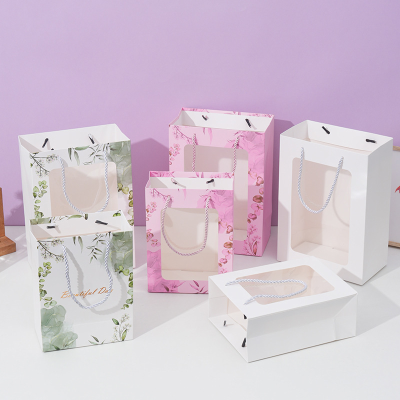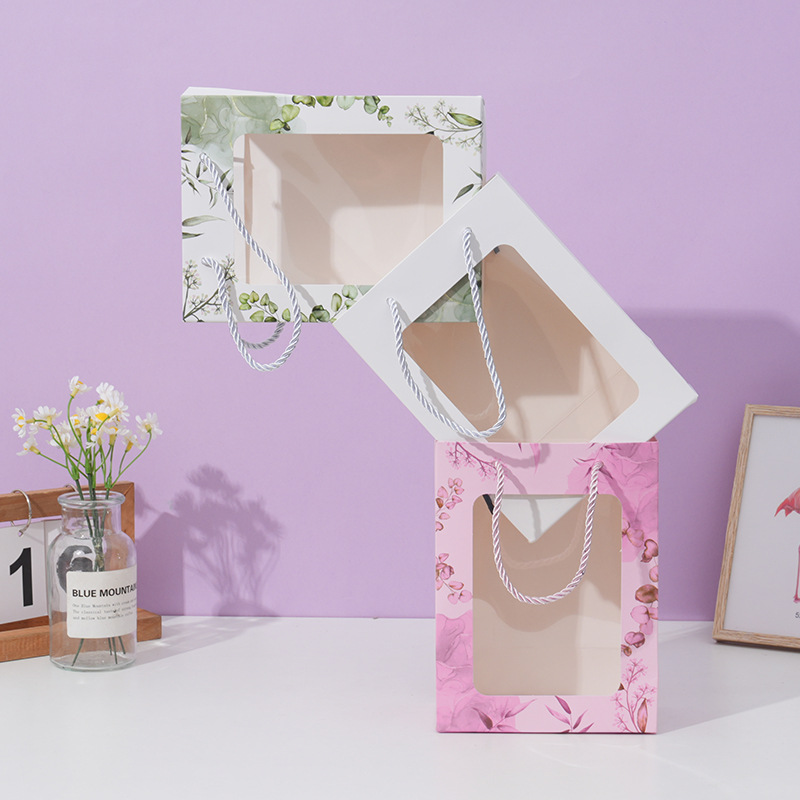 투명 쇼윈도우 가방 꽃 인형 핸드백 고급 발렌타인데이 선물 가방 웨딩 기념품 가방 작은 종이 가방스토어 가기