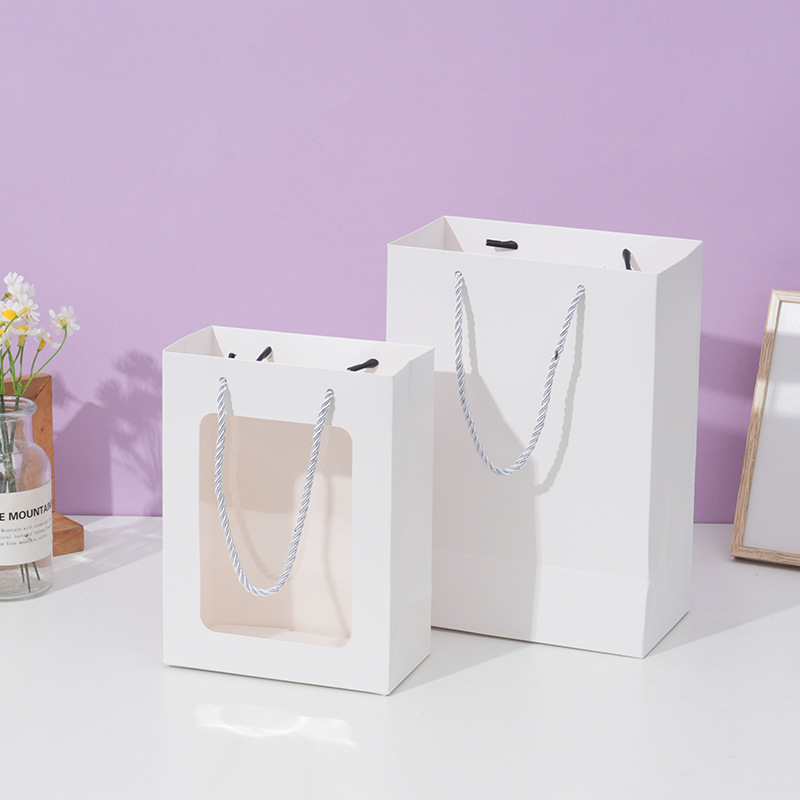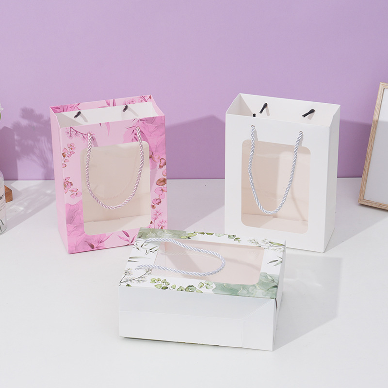 투명 쇼윈도우 가방 꽃 인형 핸드백 고급 발렌타인데이 선물 가방 웨딩 기념품 가방 작은 종이 가방