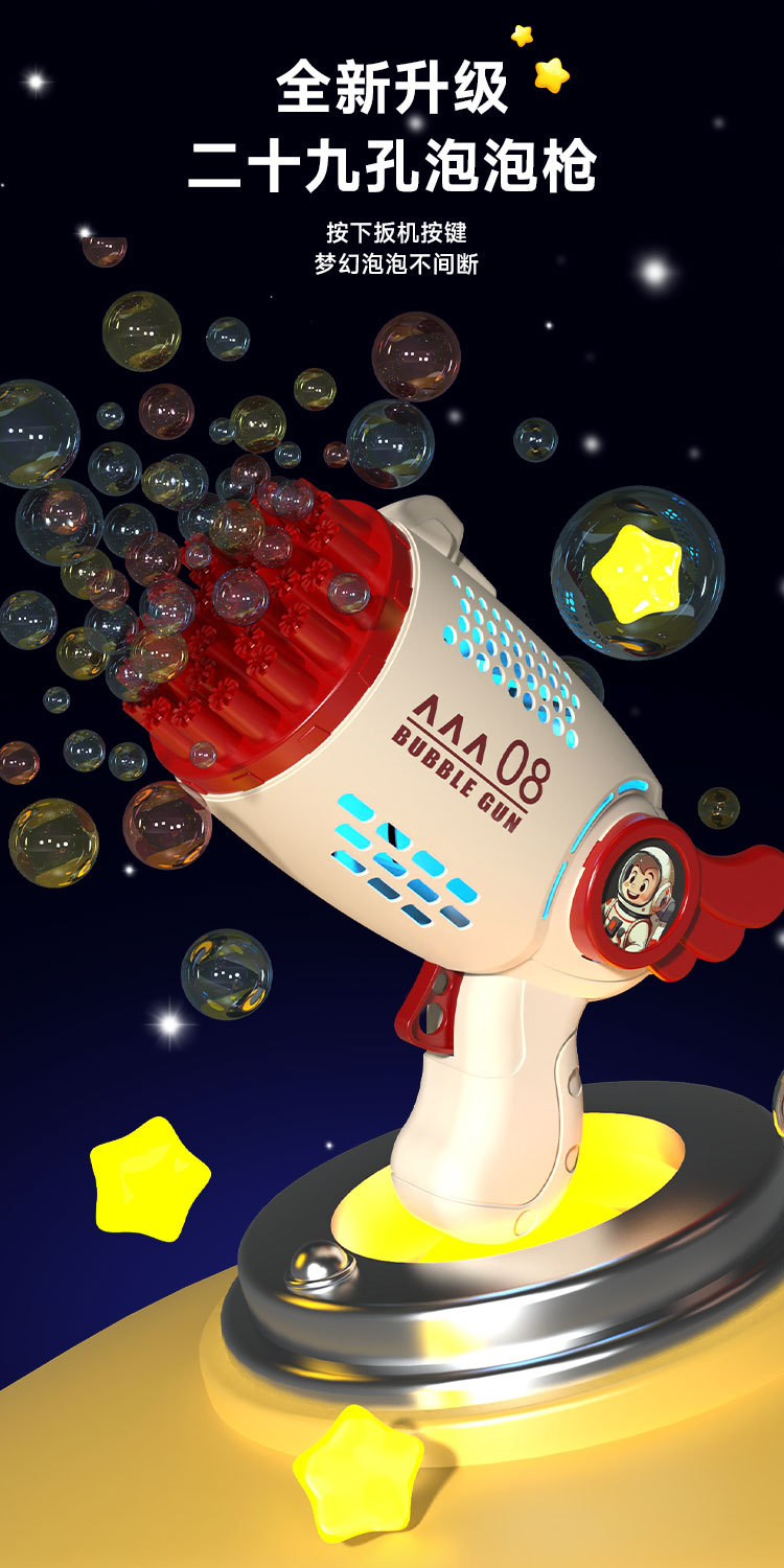 29 홀 그물 빨간 우주 비행사 거품 총 휴대용 게이트 링 버블 기계 전기 어린이 장난감 스톨 도매스토어 가기