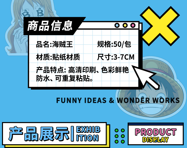 국경 50 비 반복 원피스 스티커 개인화 된 창조적 인 장식 노트북 문구 손 계정 DIY 스티커