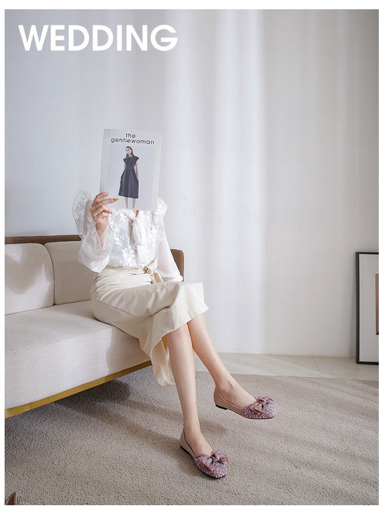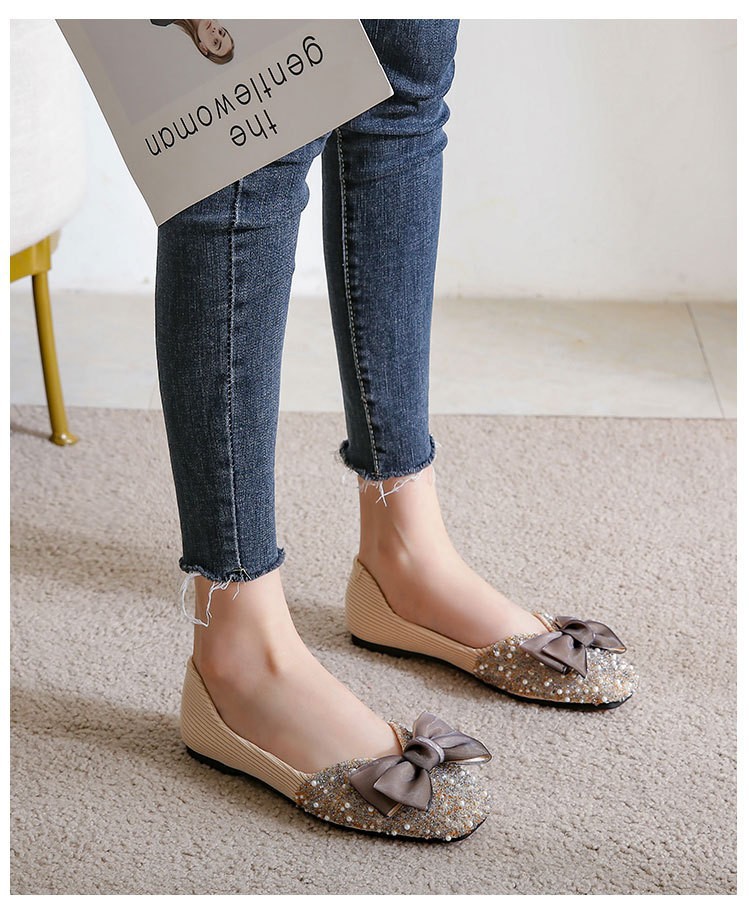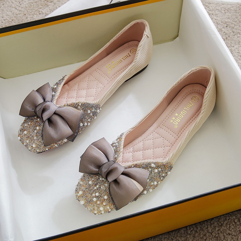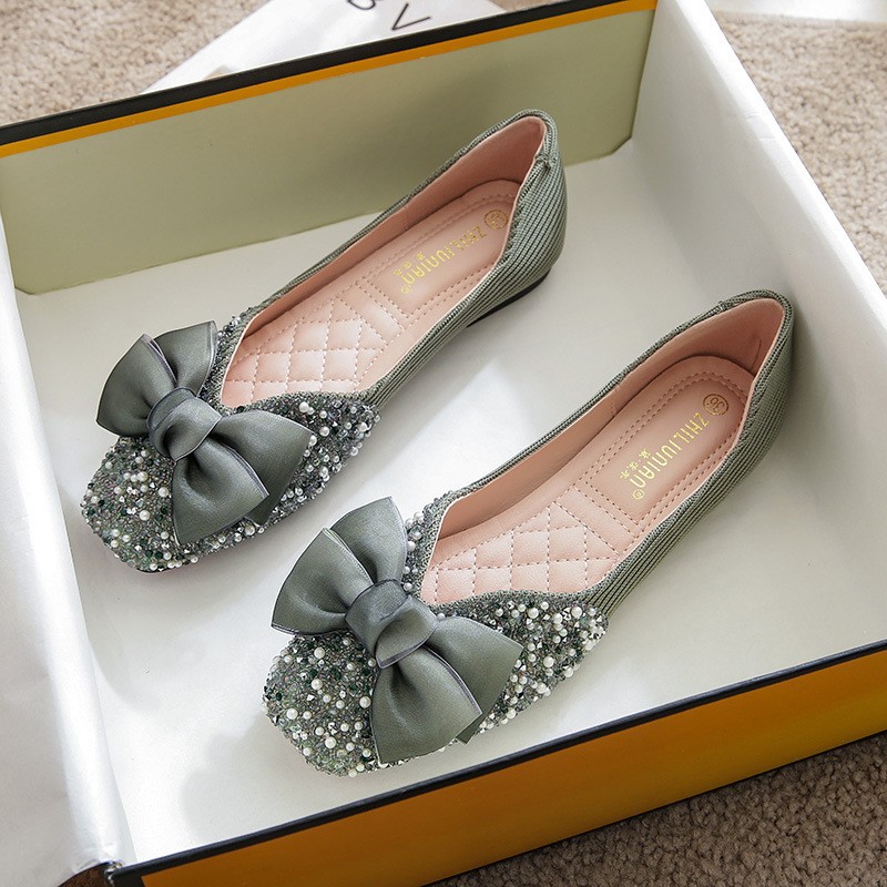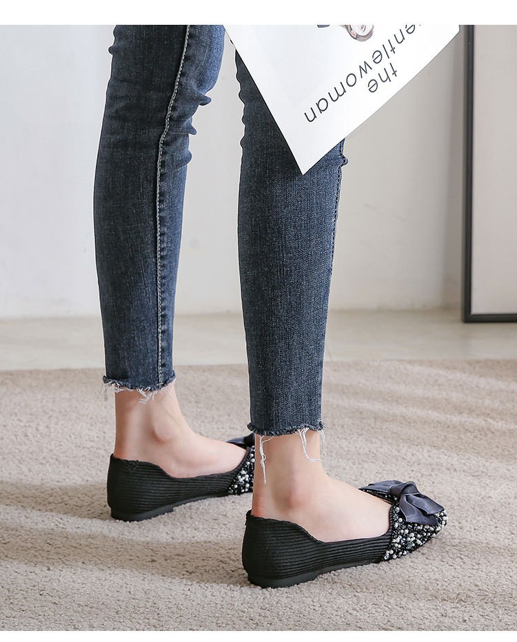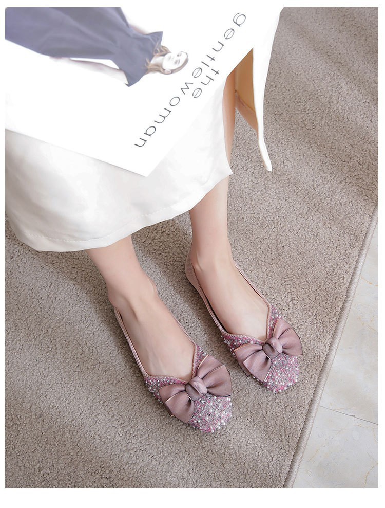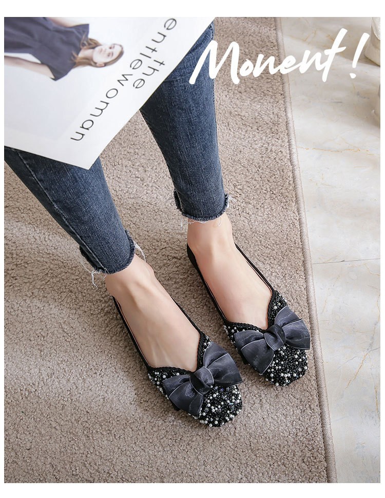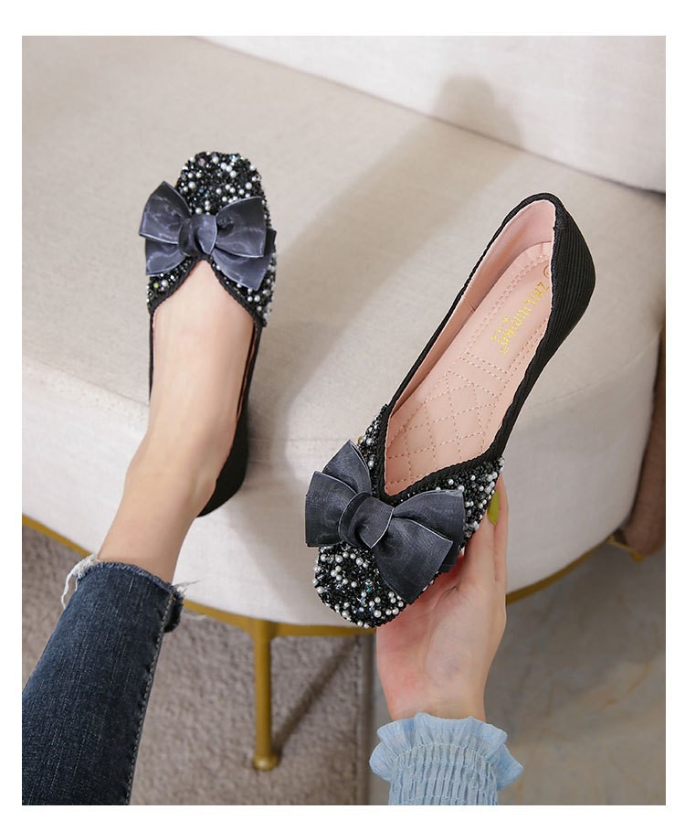여성용 싱글 슈즈 2026년 봄/가을 신상 플랫 펄과 라인스톤 장식 샤넬 스타일 얕은 입구 사각 앞코 임산부용 소프트 솔 빈티지 스타일 슈즈스토어 가기