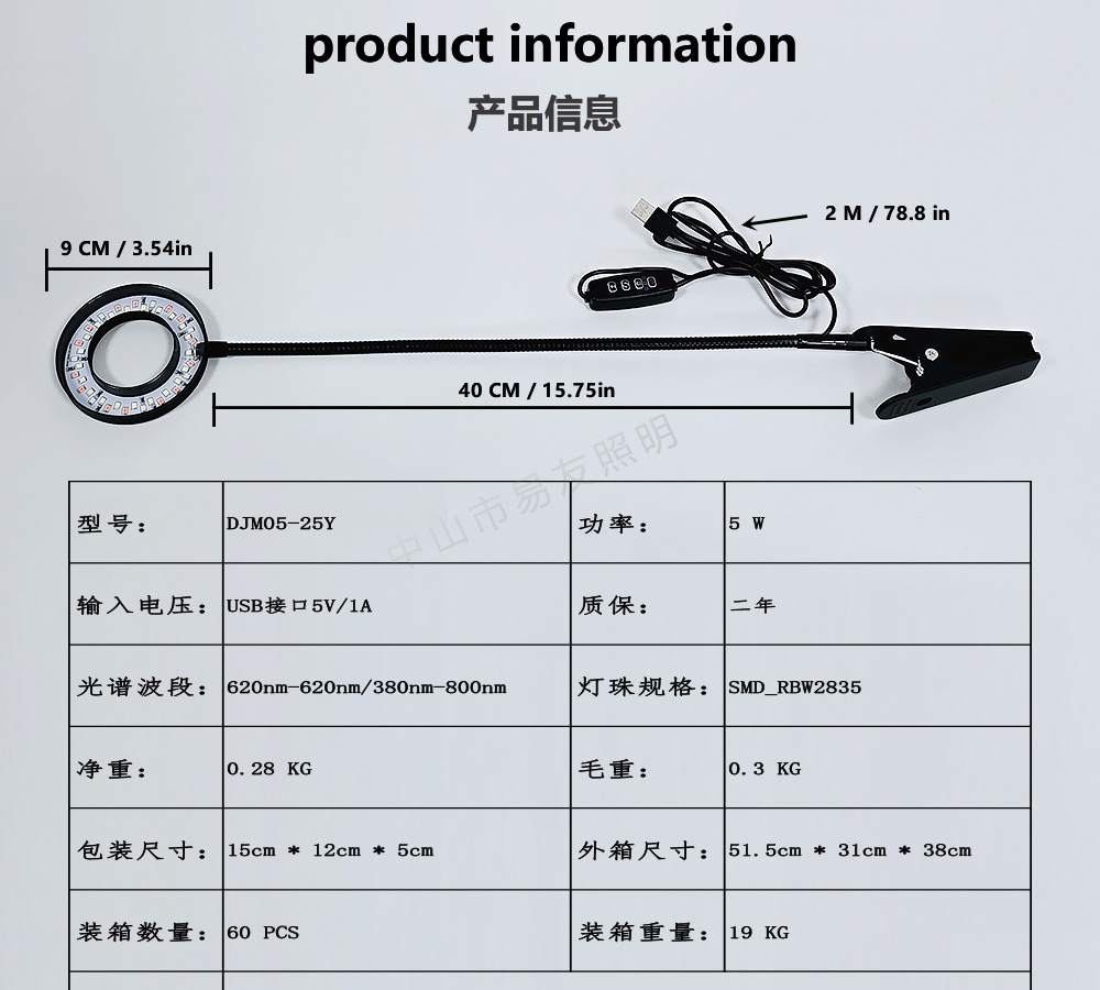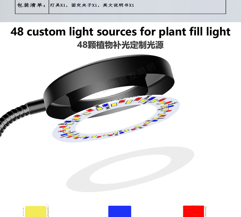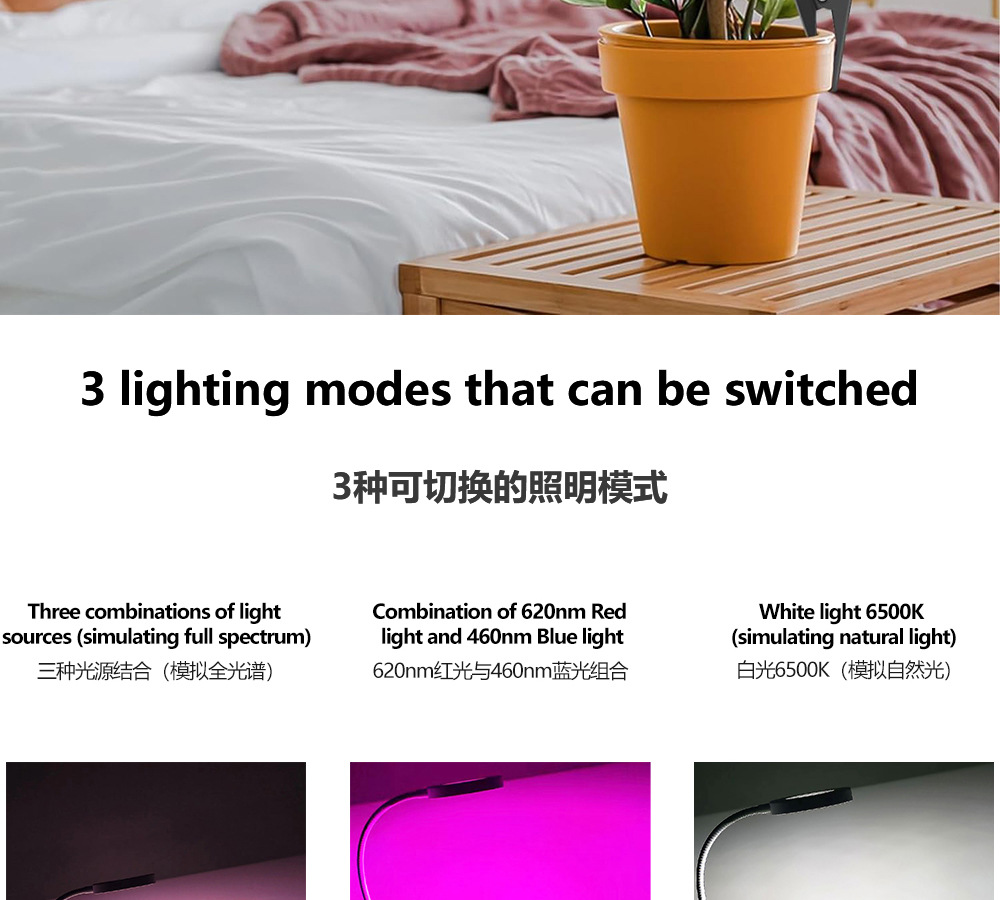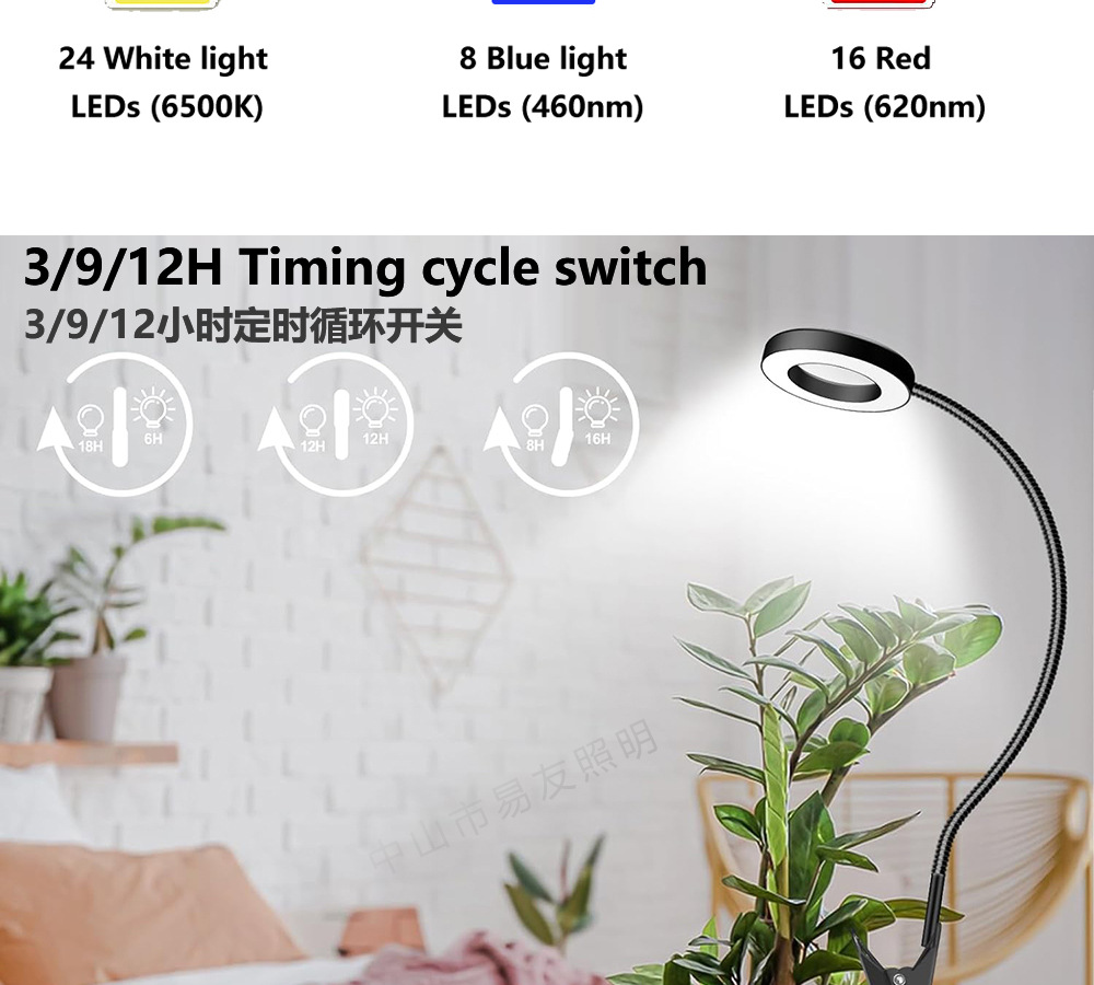 Ledgrowlight 식물 램프 전체 스펙트럼 채우기 빛 꽃병 클립 램프 녹색 식물 다육 질 채우기 빛 실내